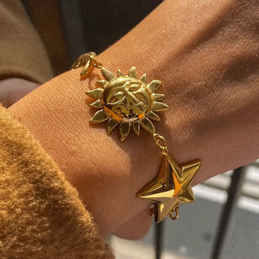304 Stainless Steel Bracelet Light Luxury High-End Feel Non-Fading Accessories Female Star Moon Sun Combination New Jewelry