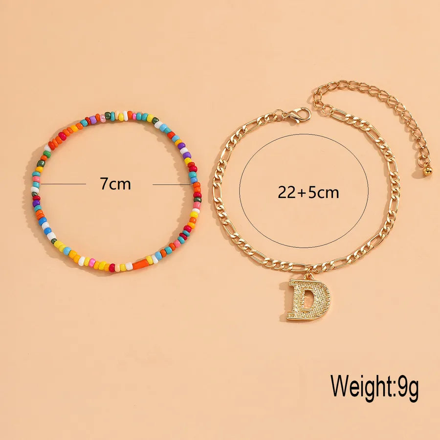 Fashionable Mixed Color Beaded Letter Pendant Ankle Bracelet Beach Sandal Foot Jewelry Style Women's Accessory