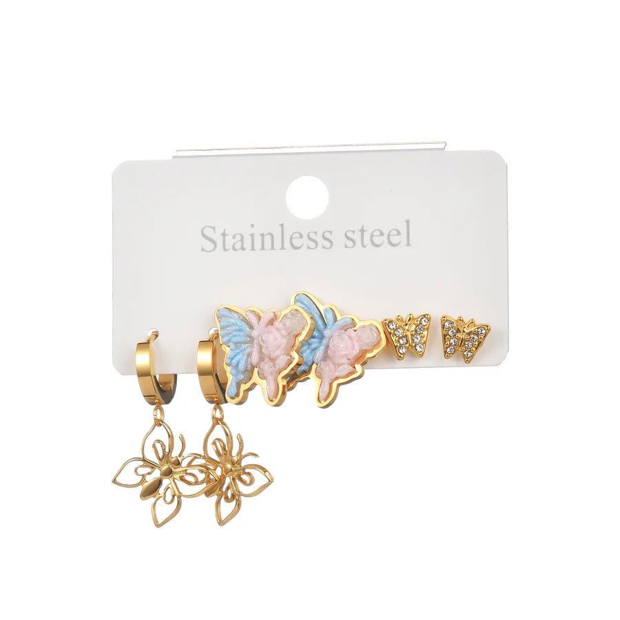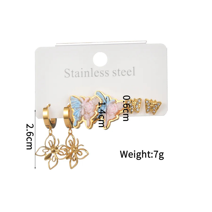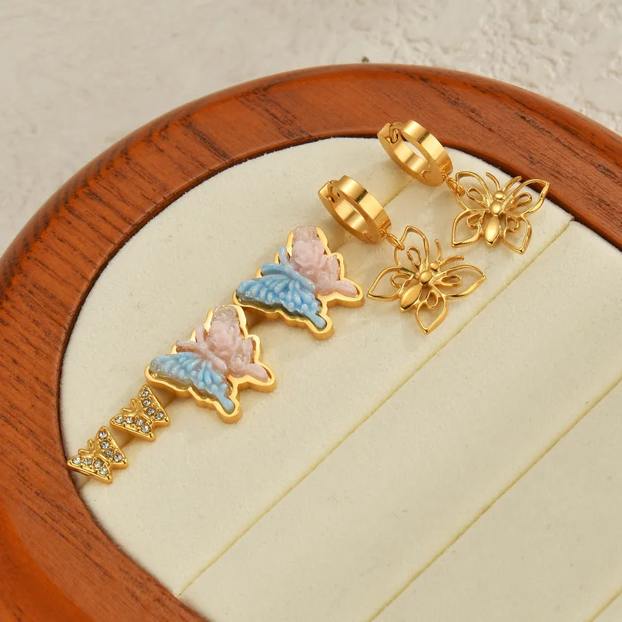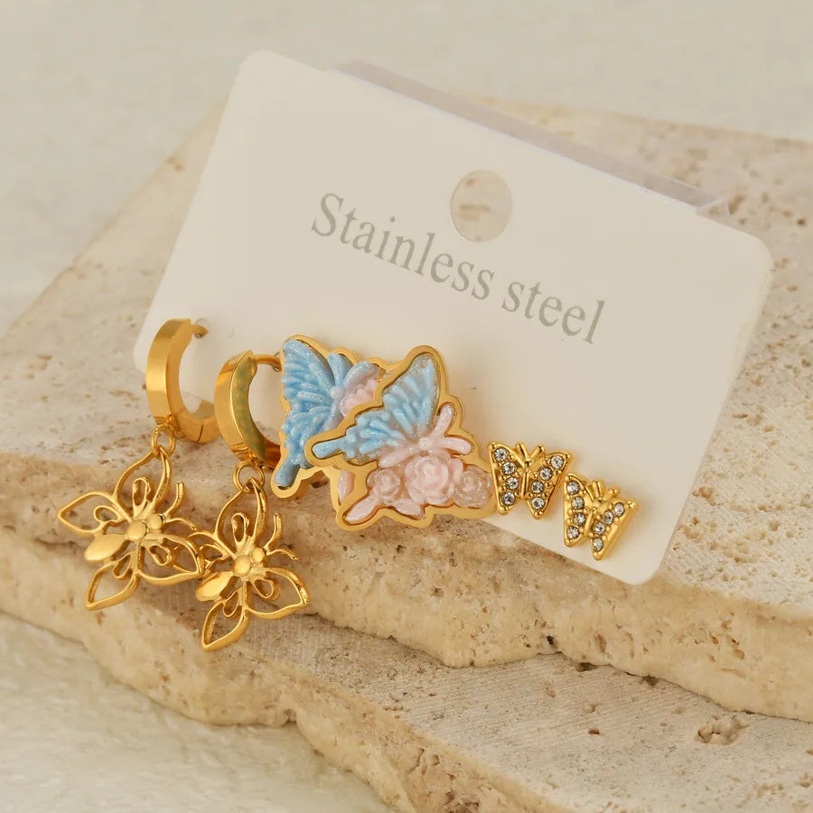 Butterfly Stud Earrings Set Gold Plated Stainless Steel Women Rainbow Effect Insect Jewelry Earrings