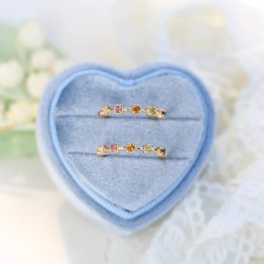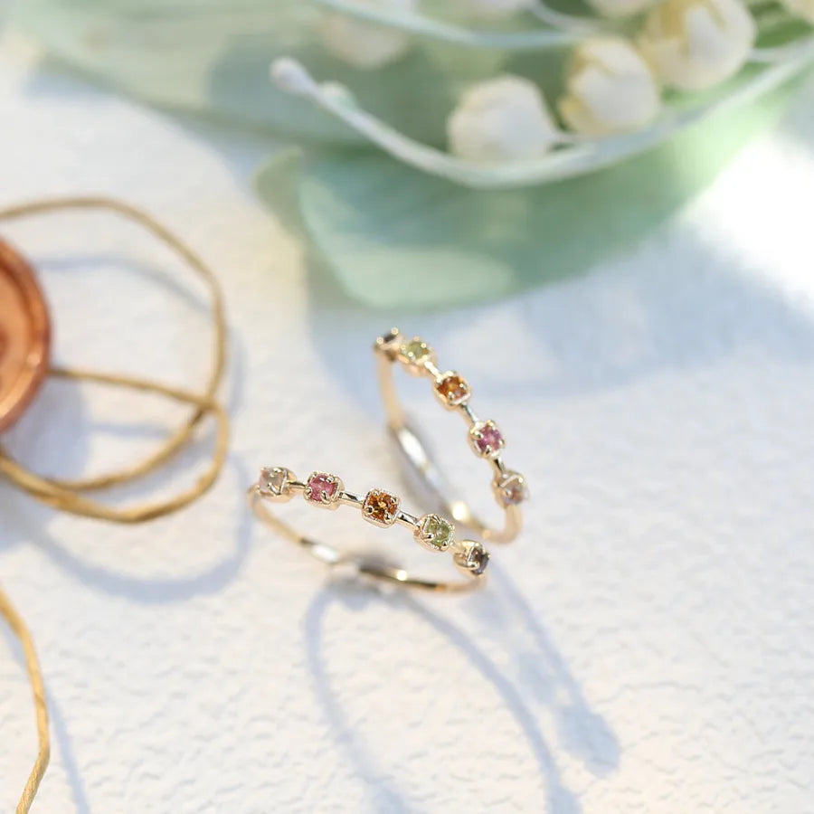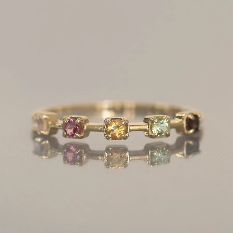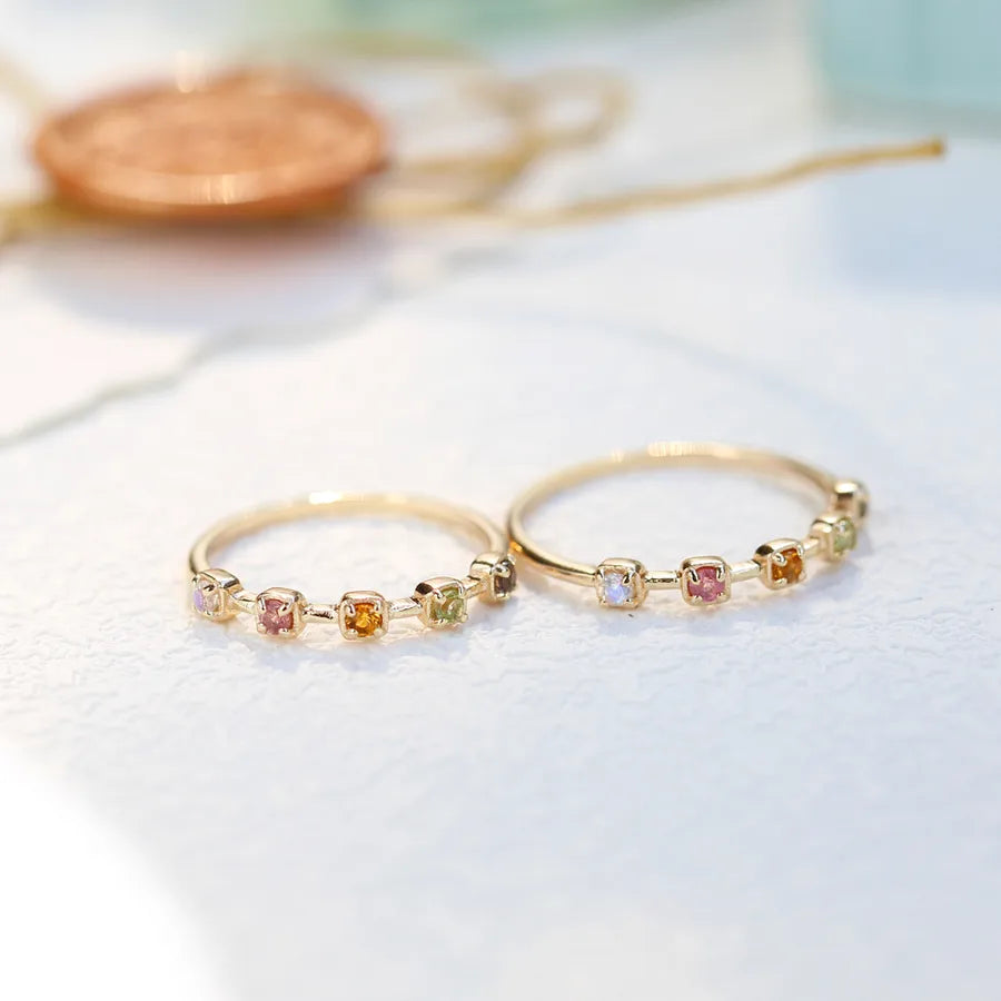 Natural Crystal Rainbow Moonlight Five Gemstones 925 Silver Gold Plated 14K Gold Simple Ring Geometric