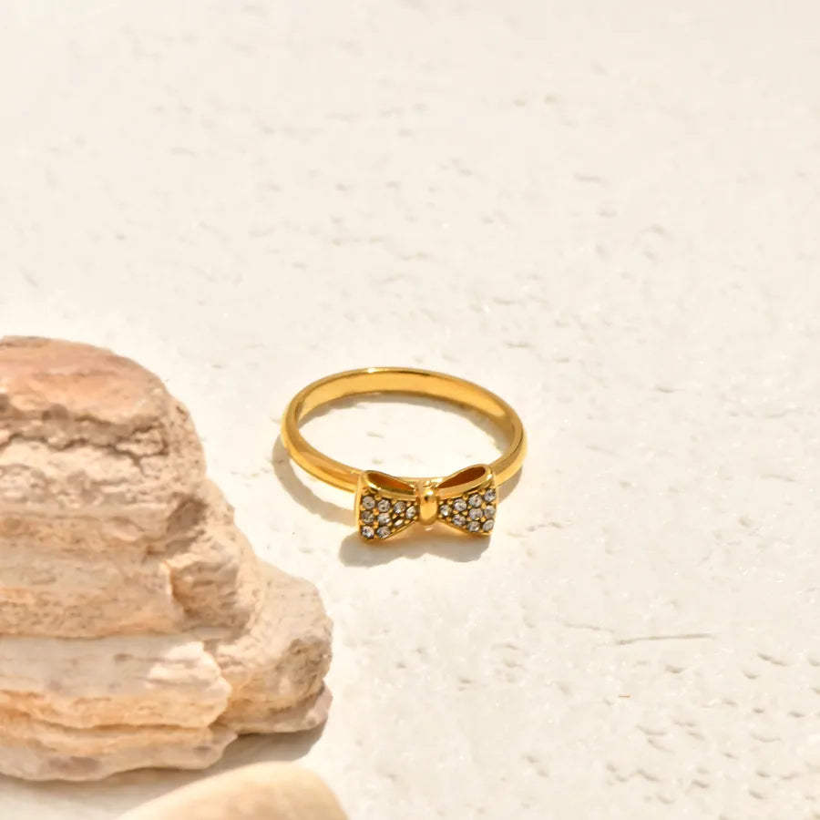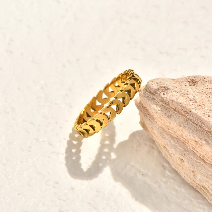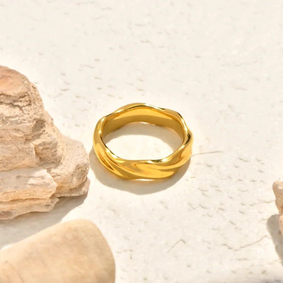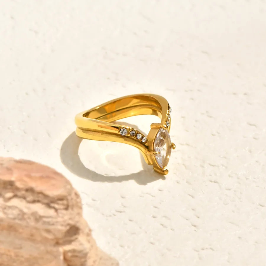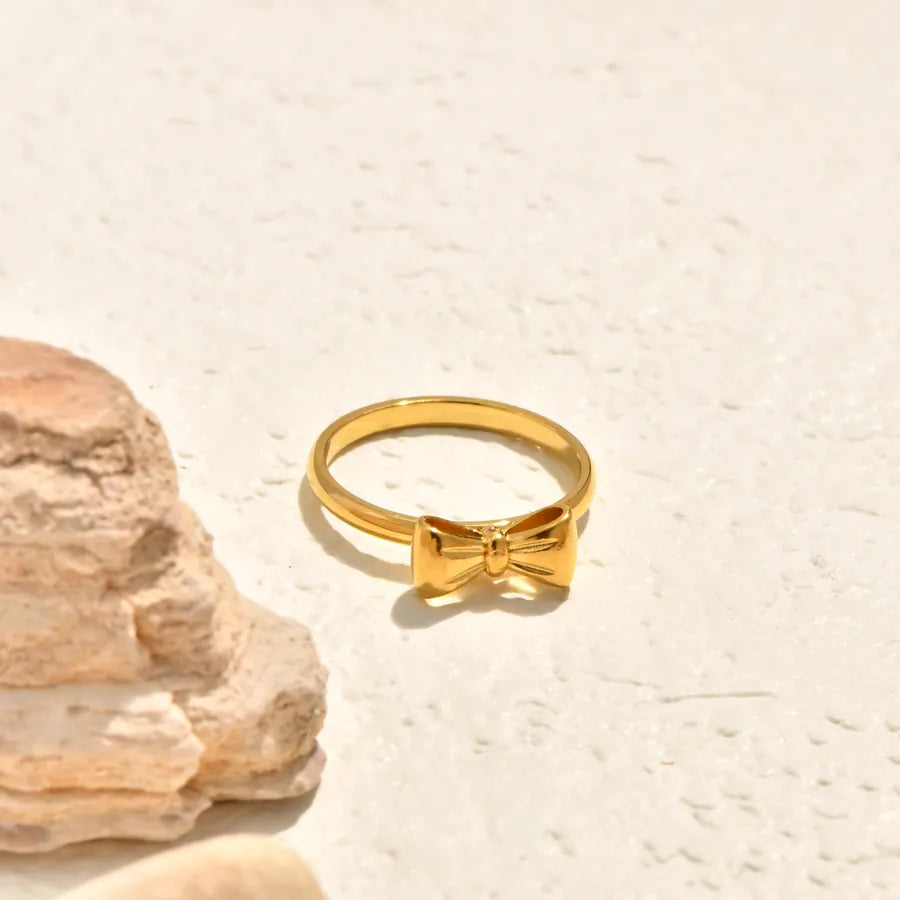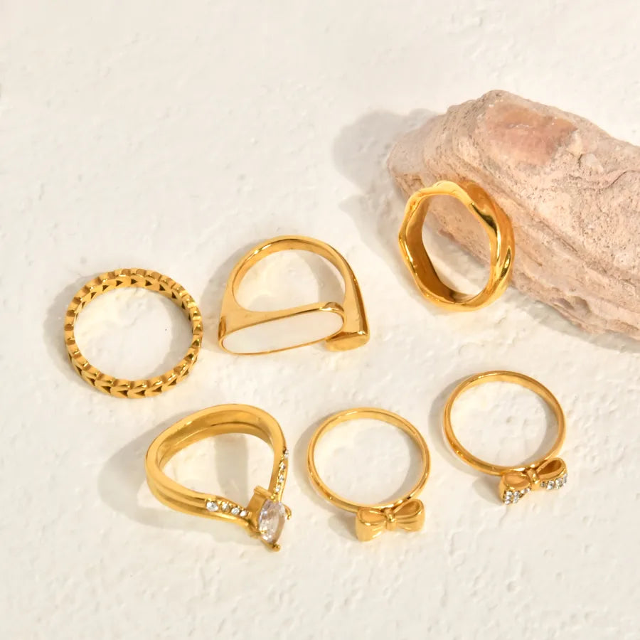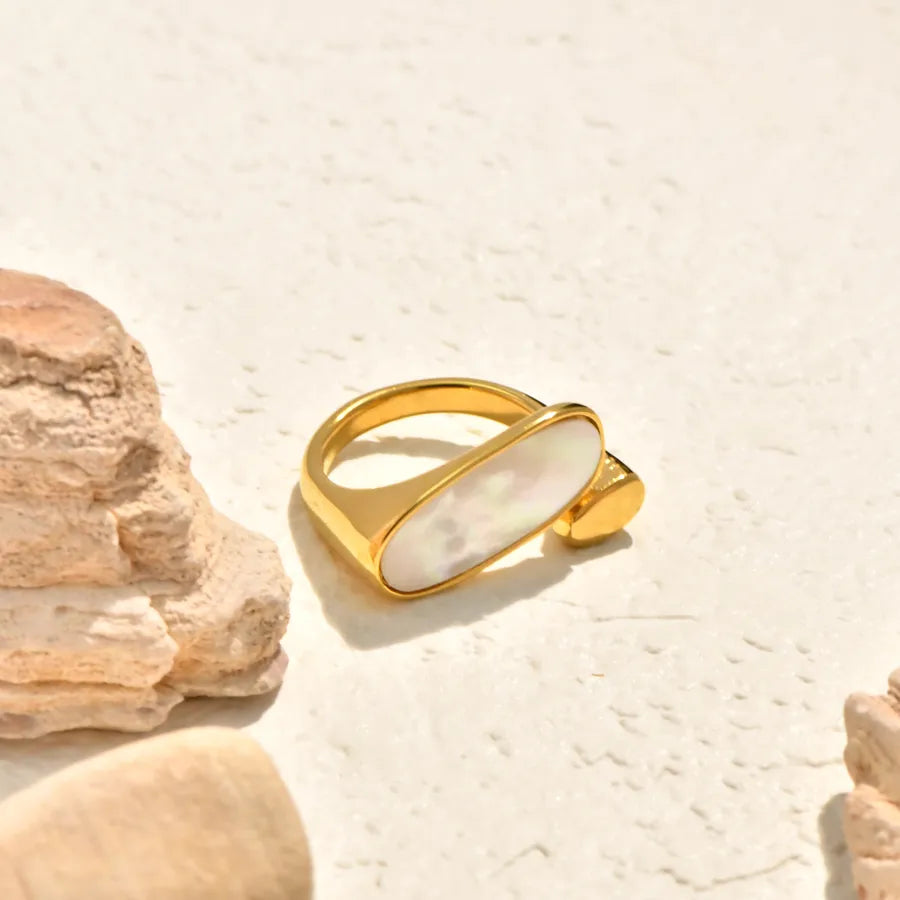 Vacuum Electroplating (In Furnace) Plated 18K Real Gold Horse Eye Shape Oval White Sea Shell Bowknot Twist Simple Leaf 304 Stainless Steel Ring