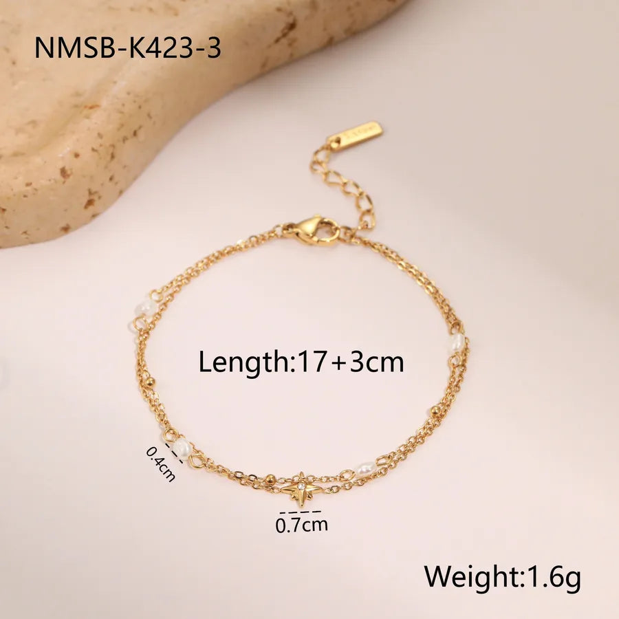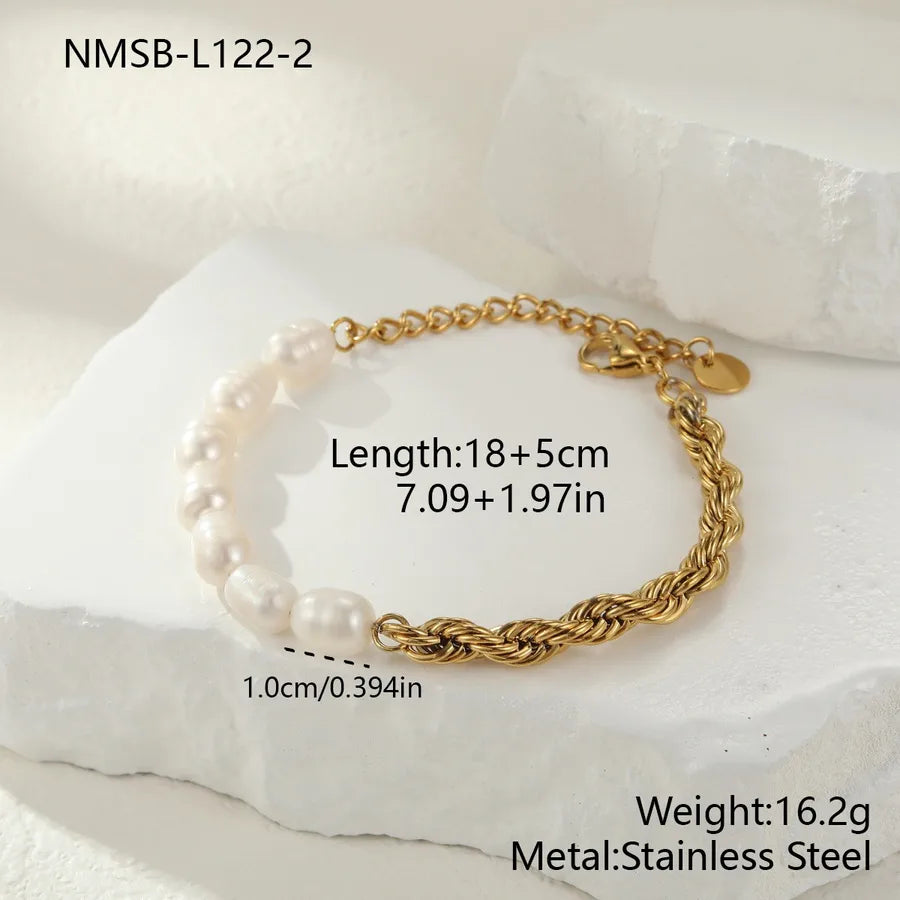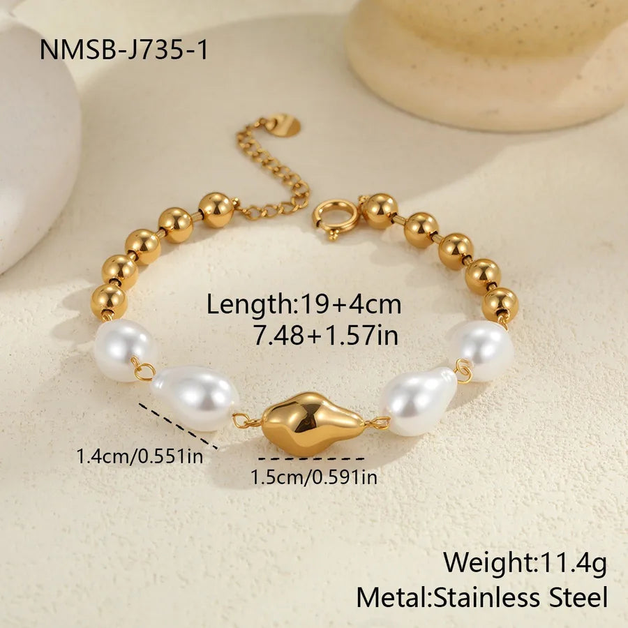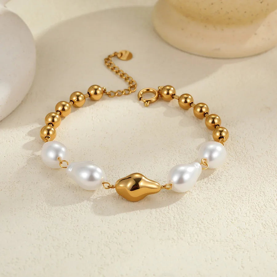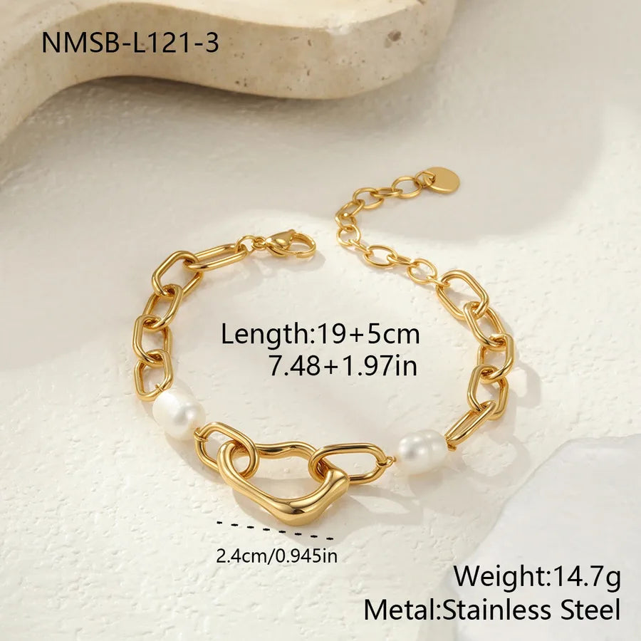 18K Gold Plated 304 Stainless Steel Vacuum Electroplating (In Furnace) Irregular Ocean Heart-Shaped Natural Freshwater Pearl Bracelet for Women Chain Link Lobster Clasp 0.03µm