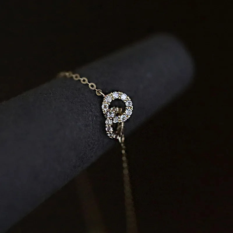 925 Sterling Silver Silver Double Ring Link Bracelet Women's Geometric Adjustable Buckle Zircon Inlaid Jewelry