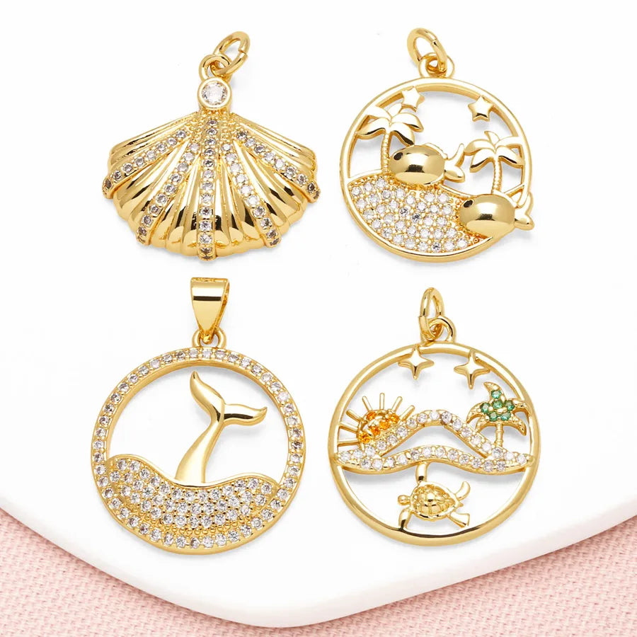 Summer Ocean Style Copper Plated 18k Real Gold Inlaid Zircon Shell Beach Bracelet Accessories Water Plated 0.03µm Pendant Pdta776