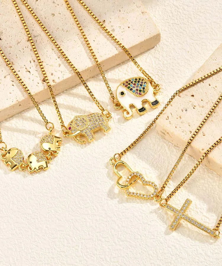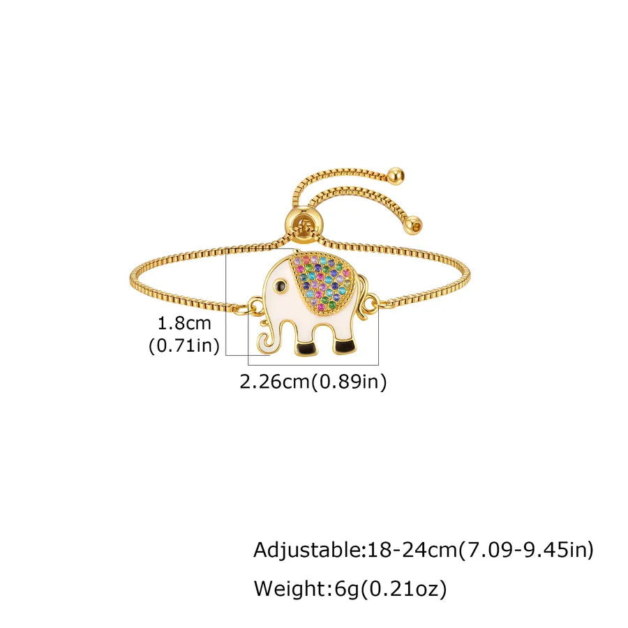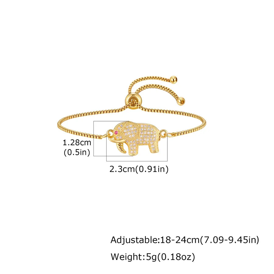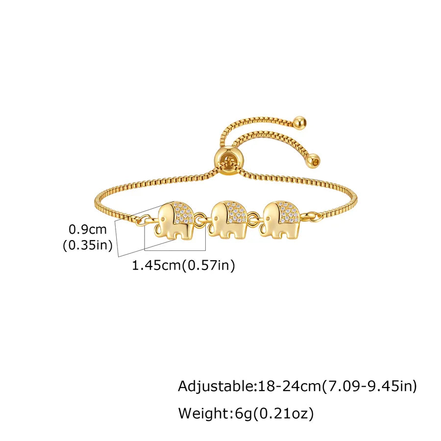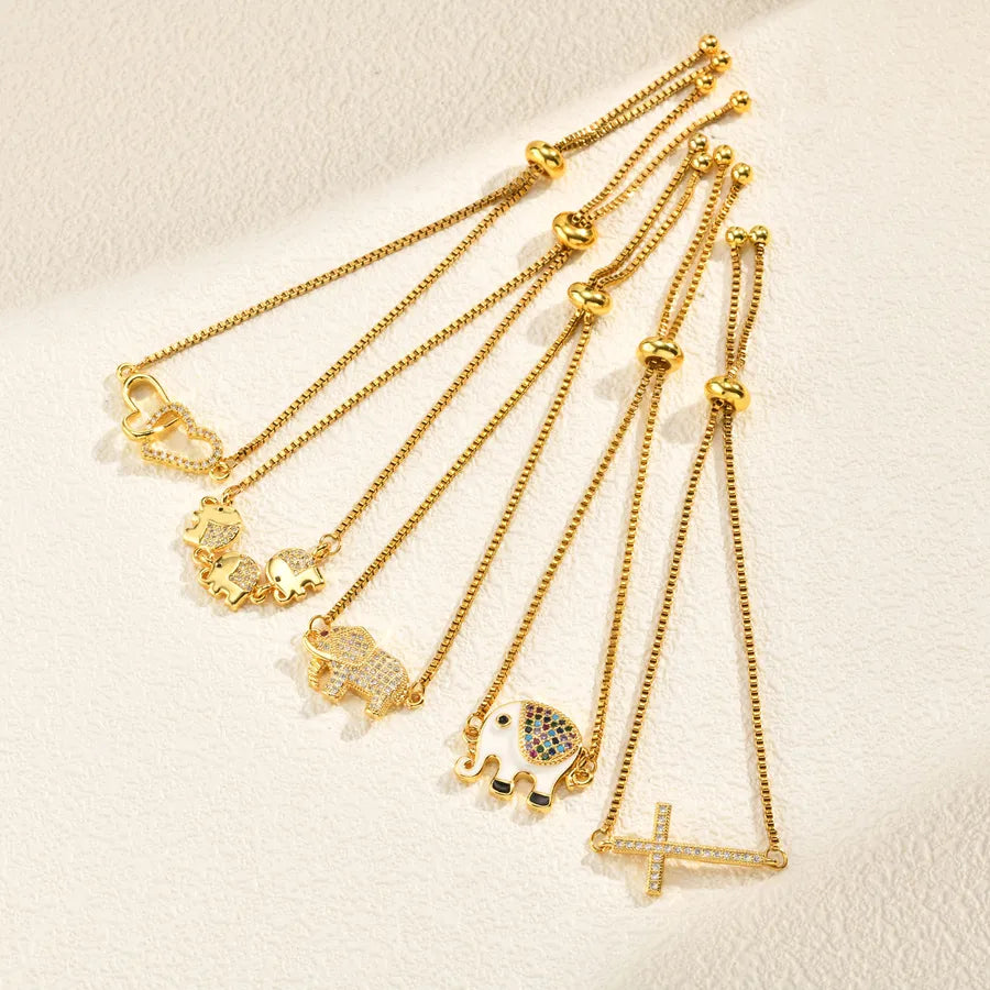 Women's Copper Material Zircon Elephant Electroplated Adjustable Bracelet Gold Heart Box Chain Square Pearl Chain Water Plated