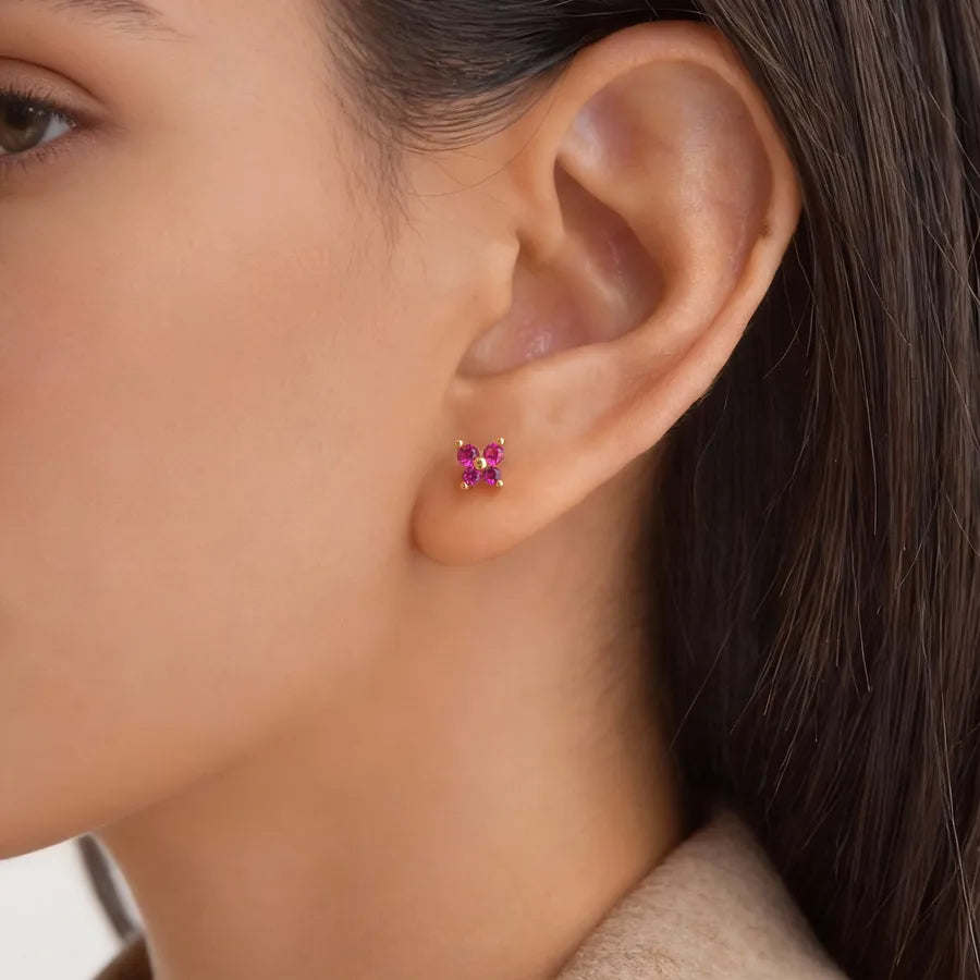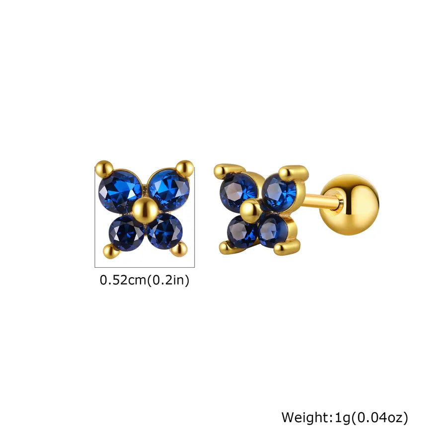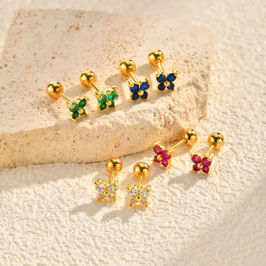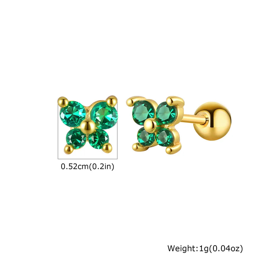 Women's 201 Stainless Steel Rose Red Zircon Green Zircon Electroplated Butterfly Earrings Gold