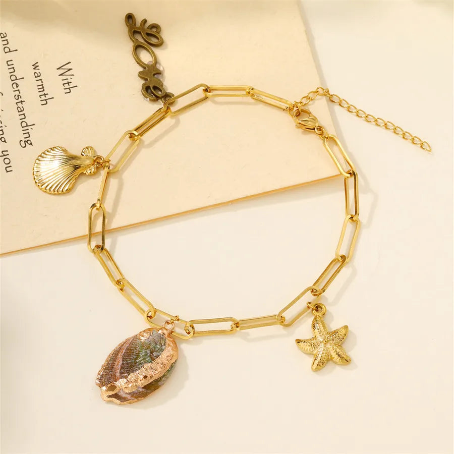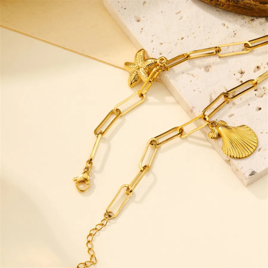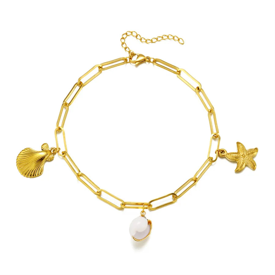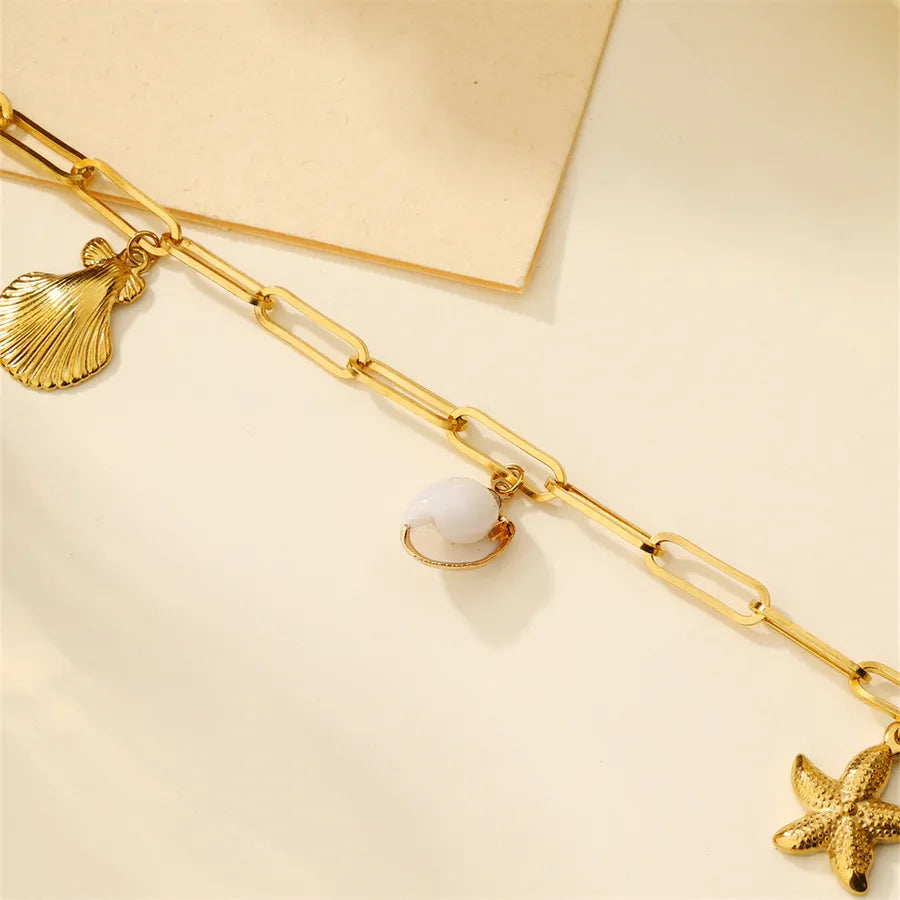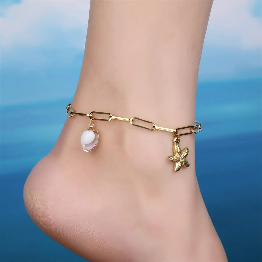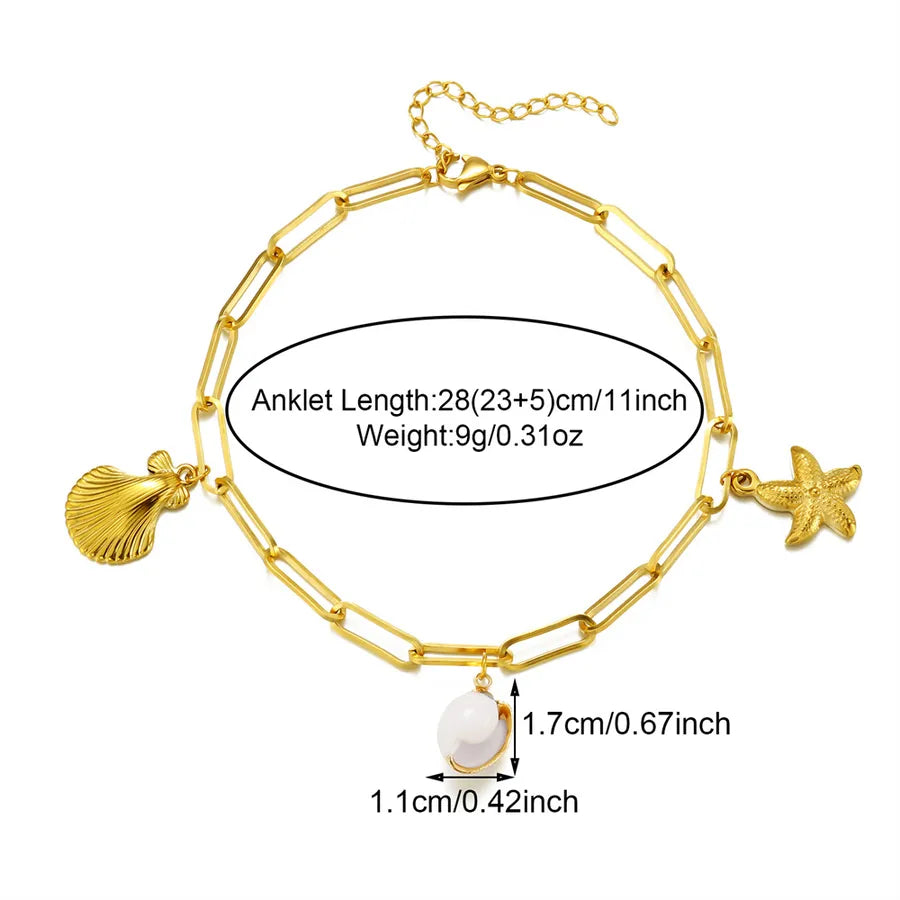 Stainless Steel Starfish Shell Anklet Beach Vacation Style Women's Ocean Element Jewelry Footwear Accessory Summer Fashion