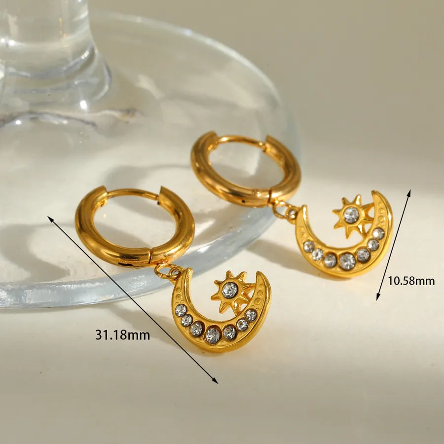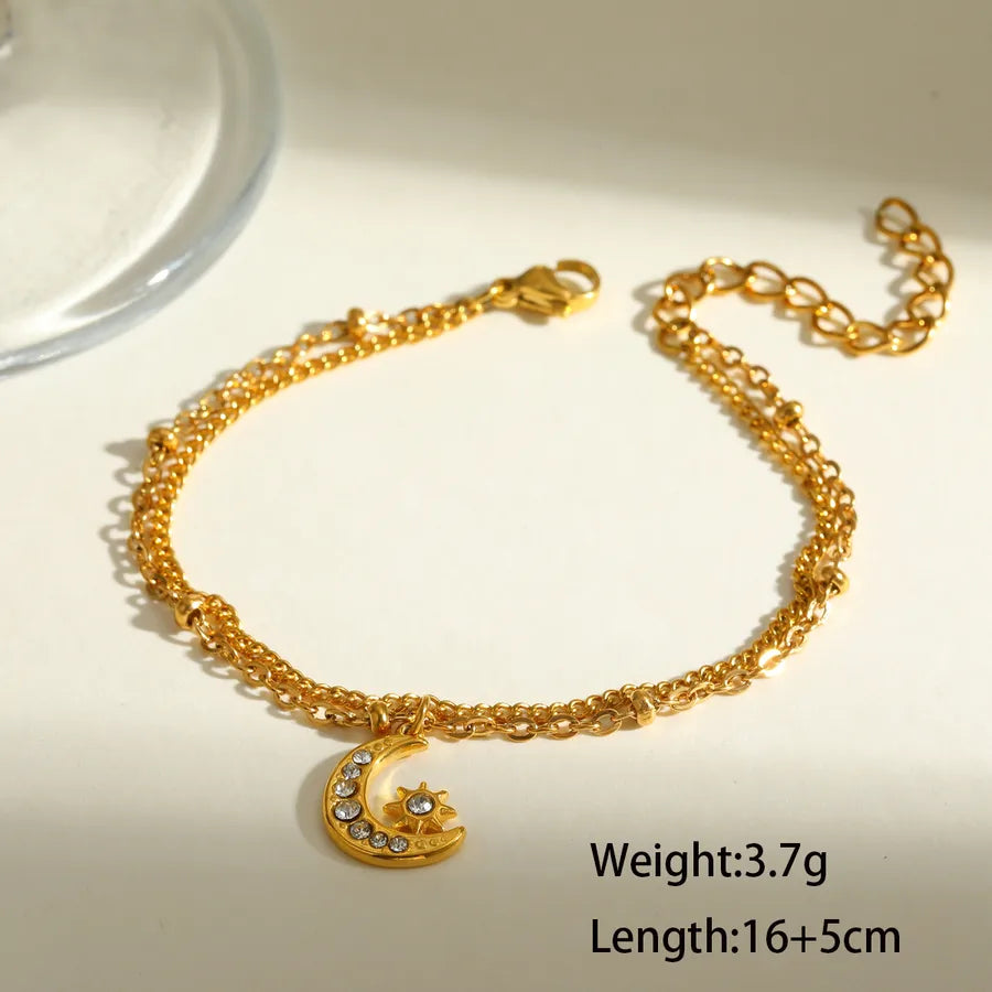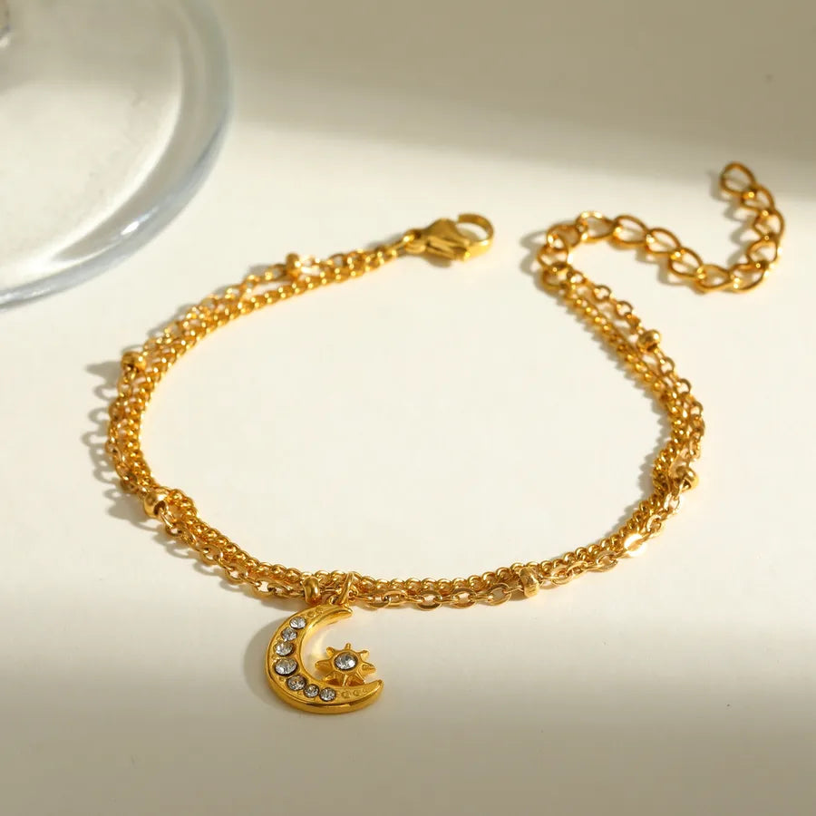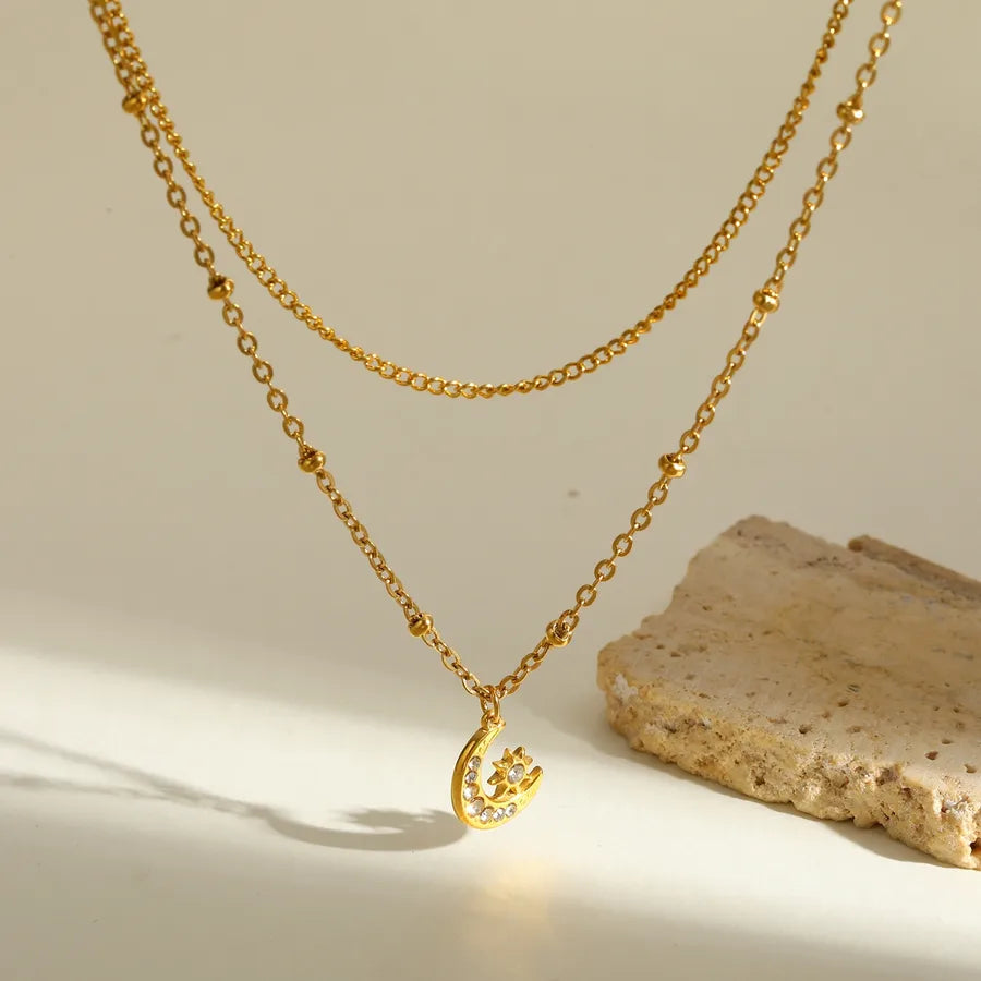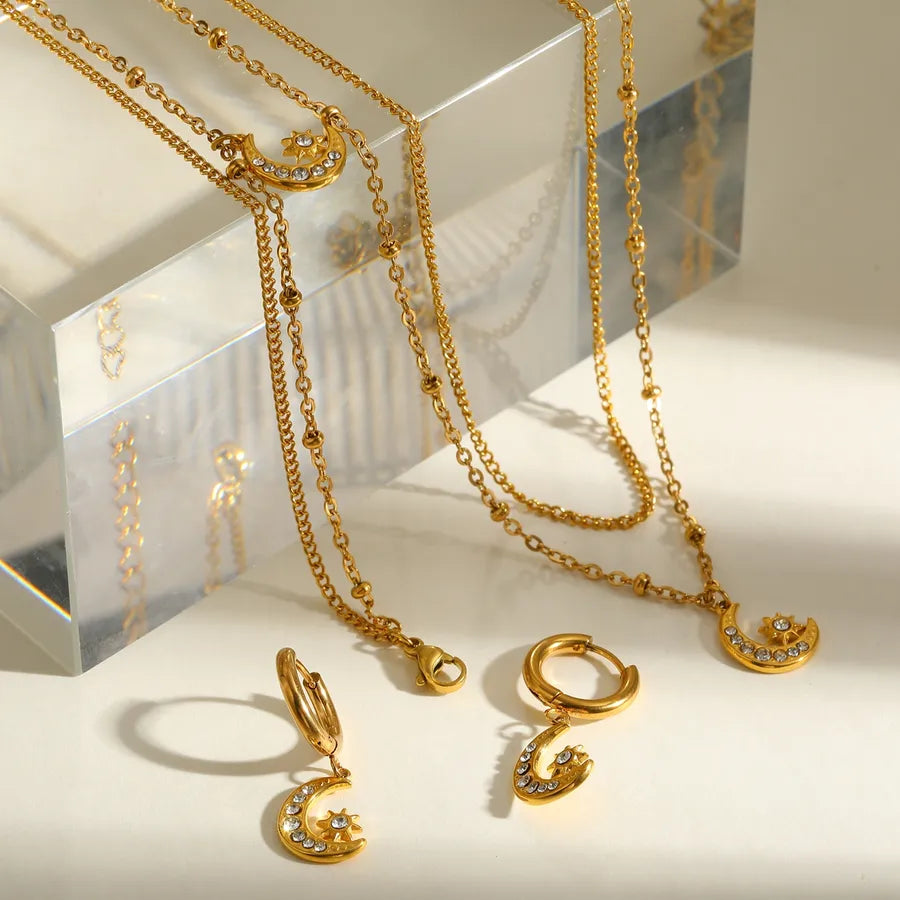 18K Gold Plated 201 Stainless Steel Vacuum Electroplating (In Furnace) Moon Cable Chain/Cross Chain/O Chain Jewelry Set for Women