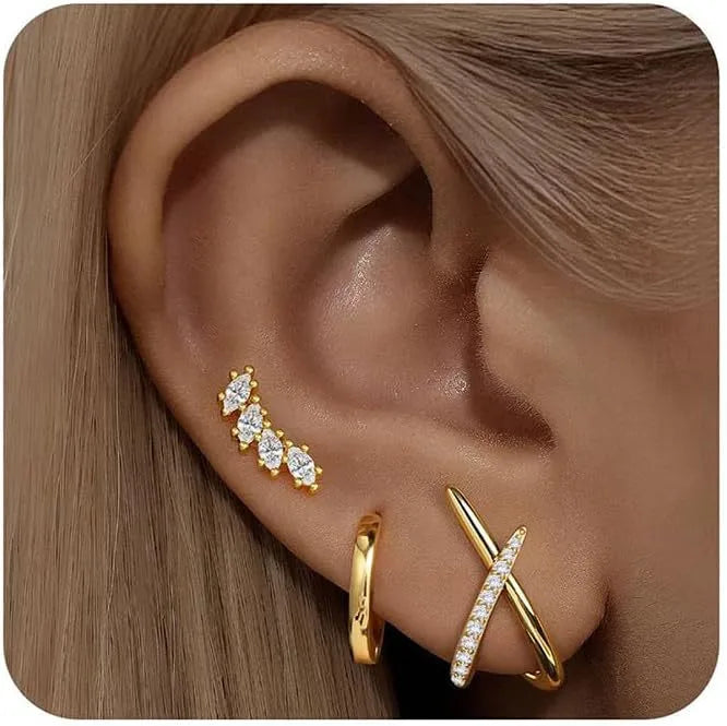 Fashionable Stone Gold Cross Earrings Women's Cube Set Earring Jewelry Lightweight Luxury