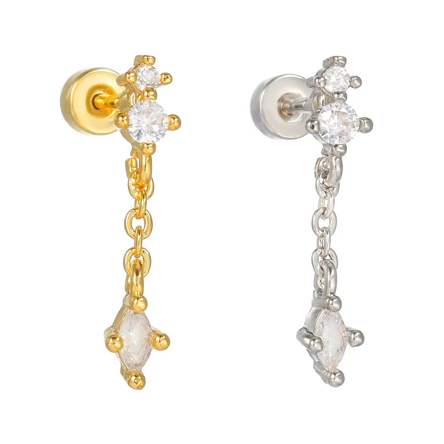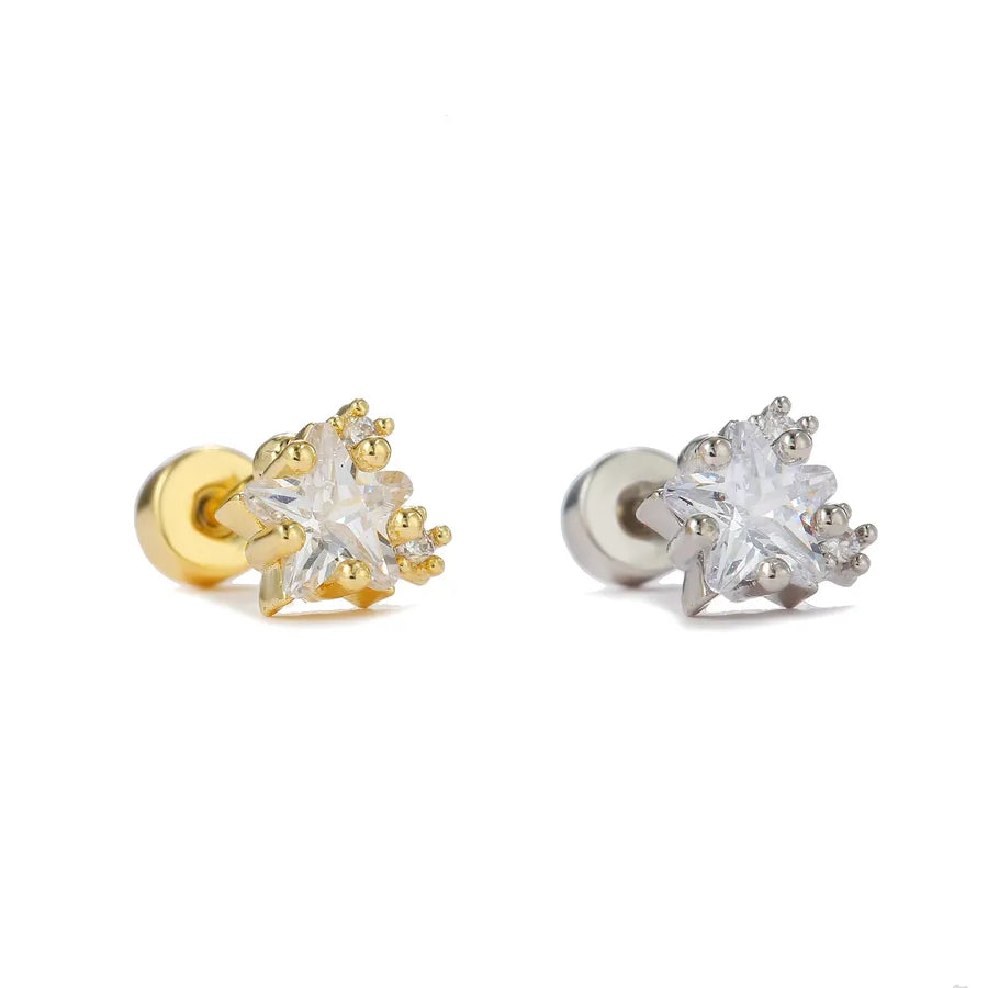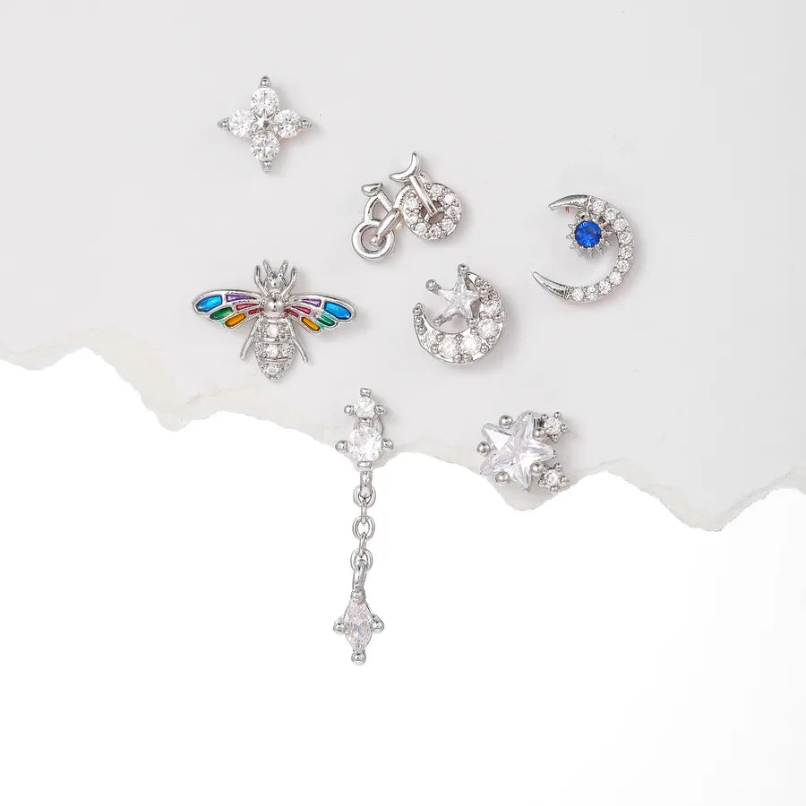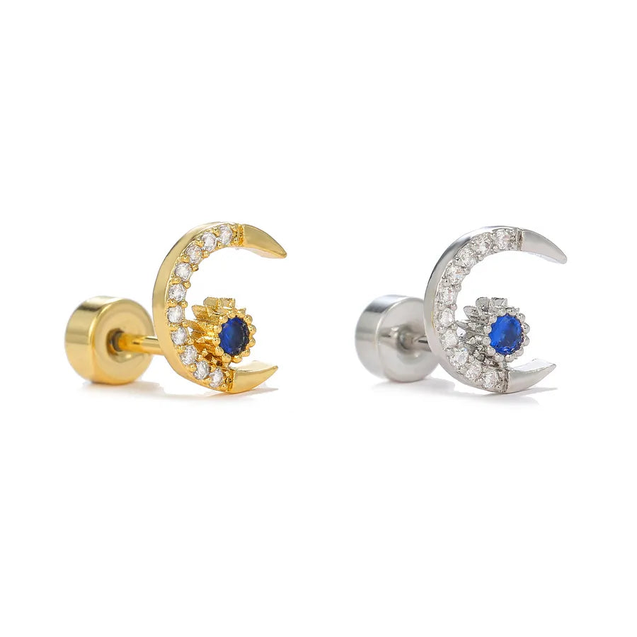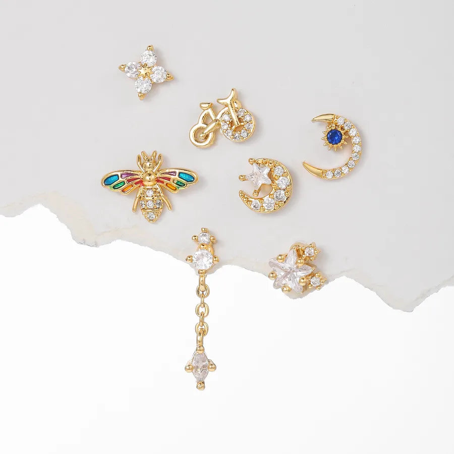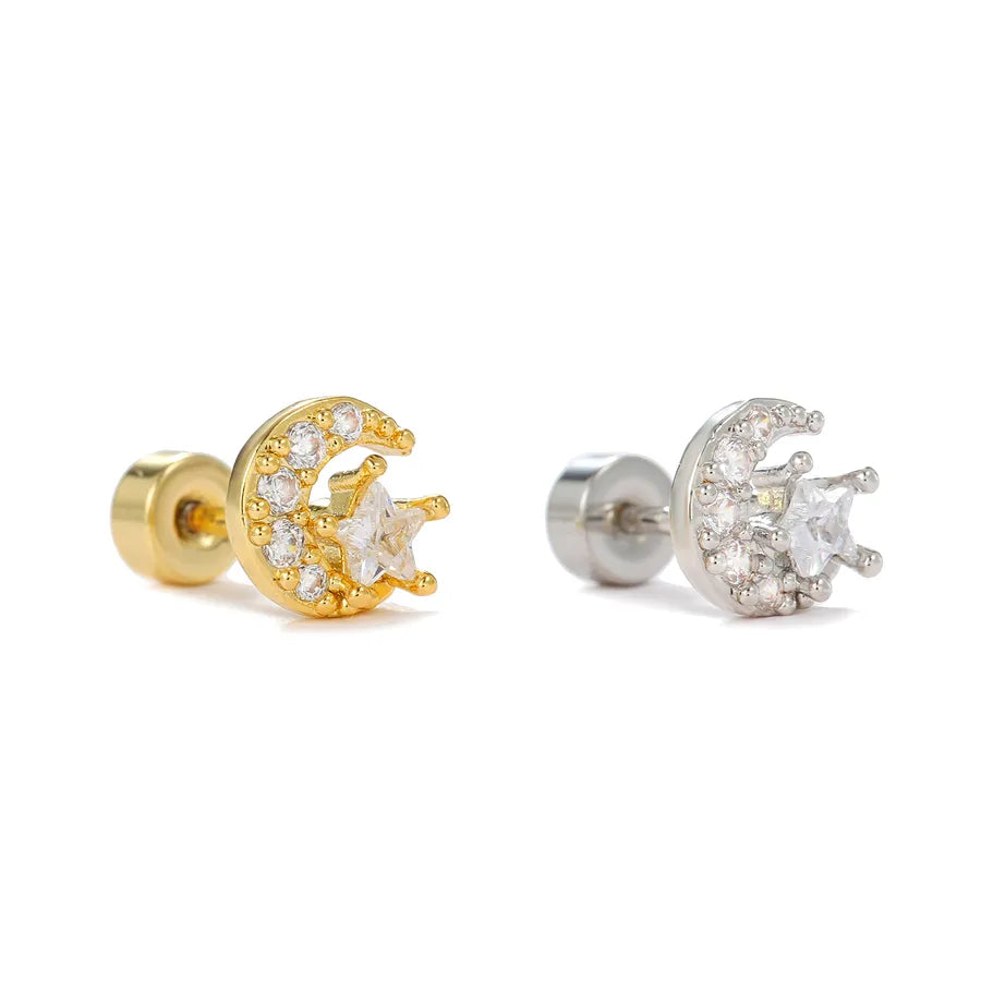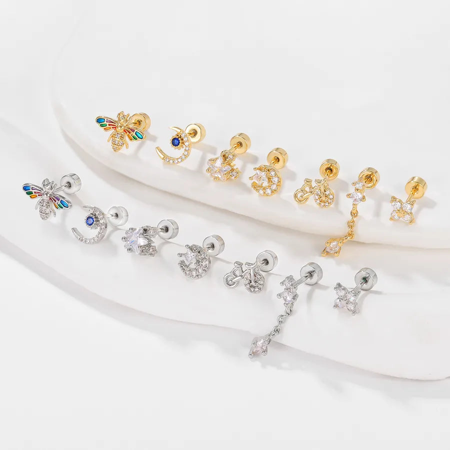 Cartoon Mini Earrings Light Luxury Tassel Moon Star Zircon Ear Bone Studs 18K Gold Plated Ear Jewelry Factory