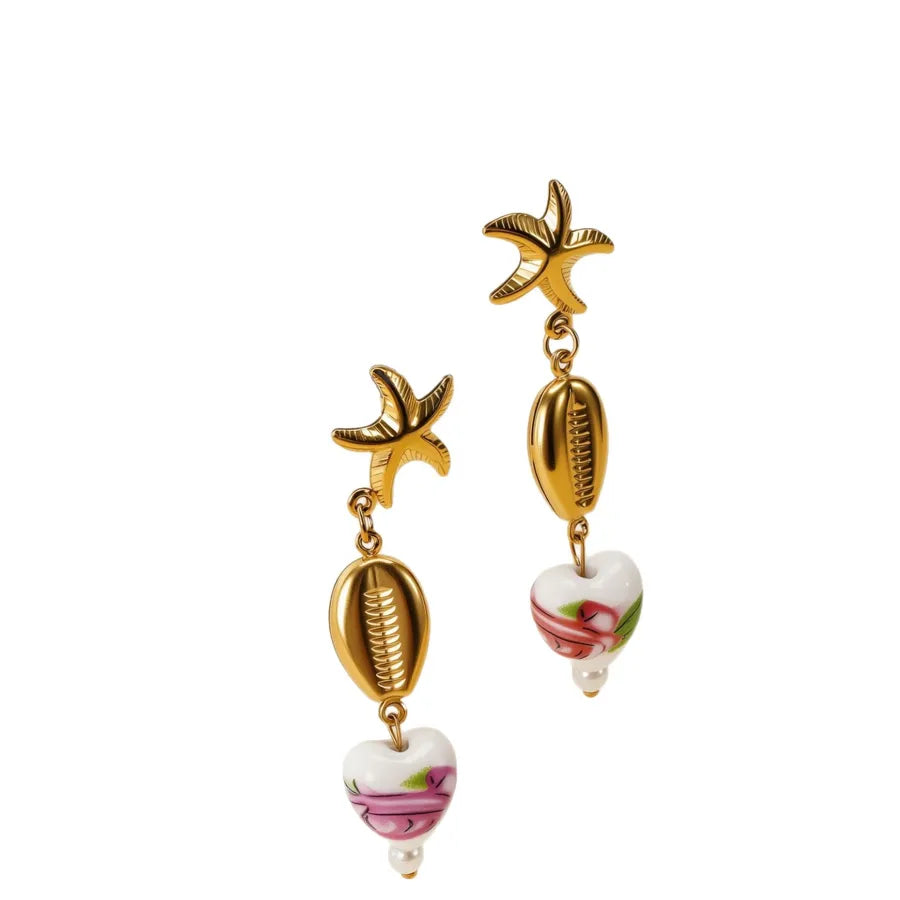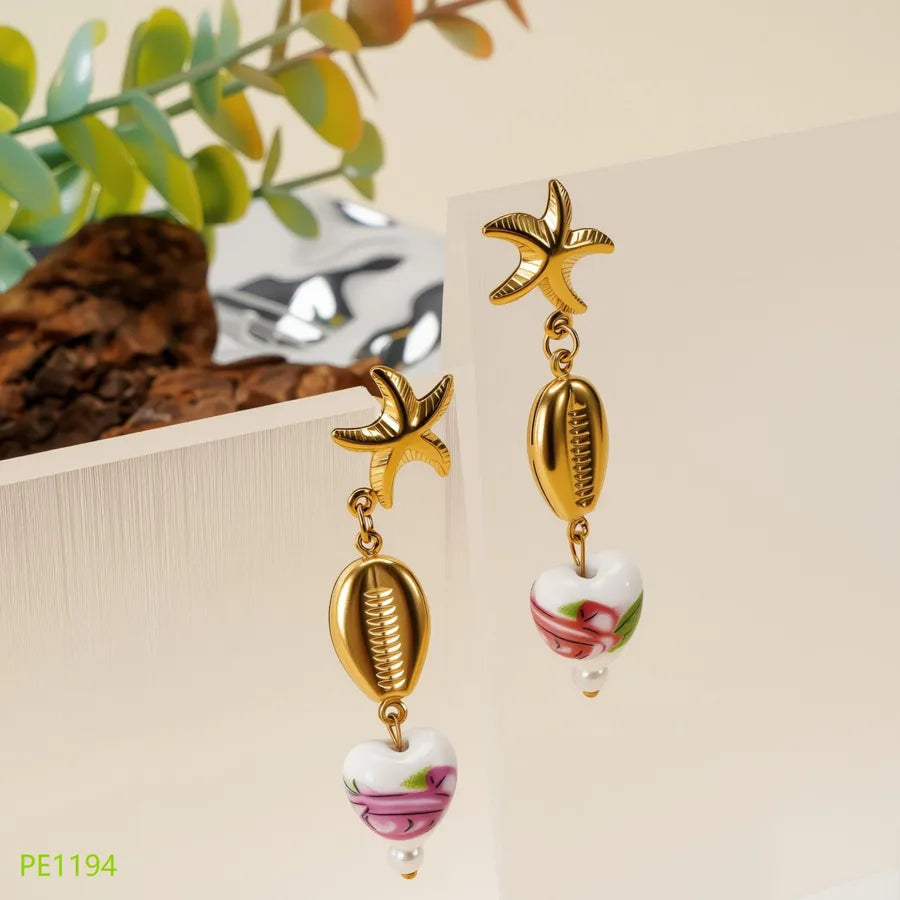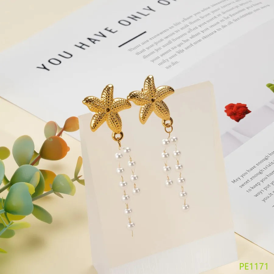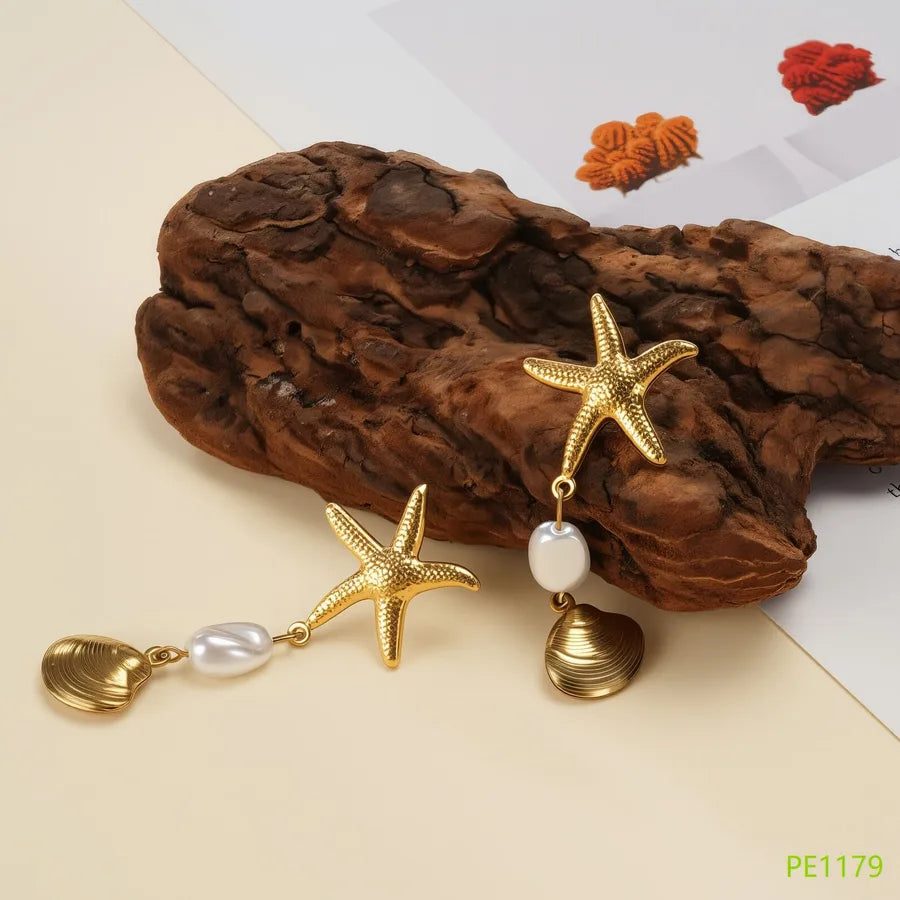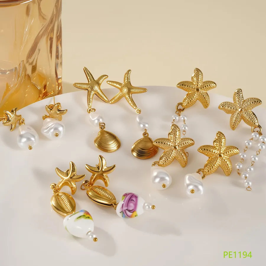Stainless Steel Earrings Non-Fading Ceramic Pearl Starfish Design Luxury Small Audience Earrings For Women Fairy Style Jewelry