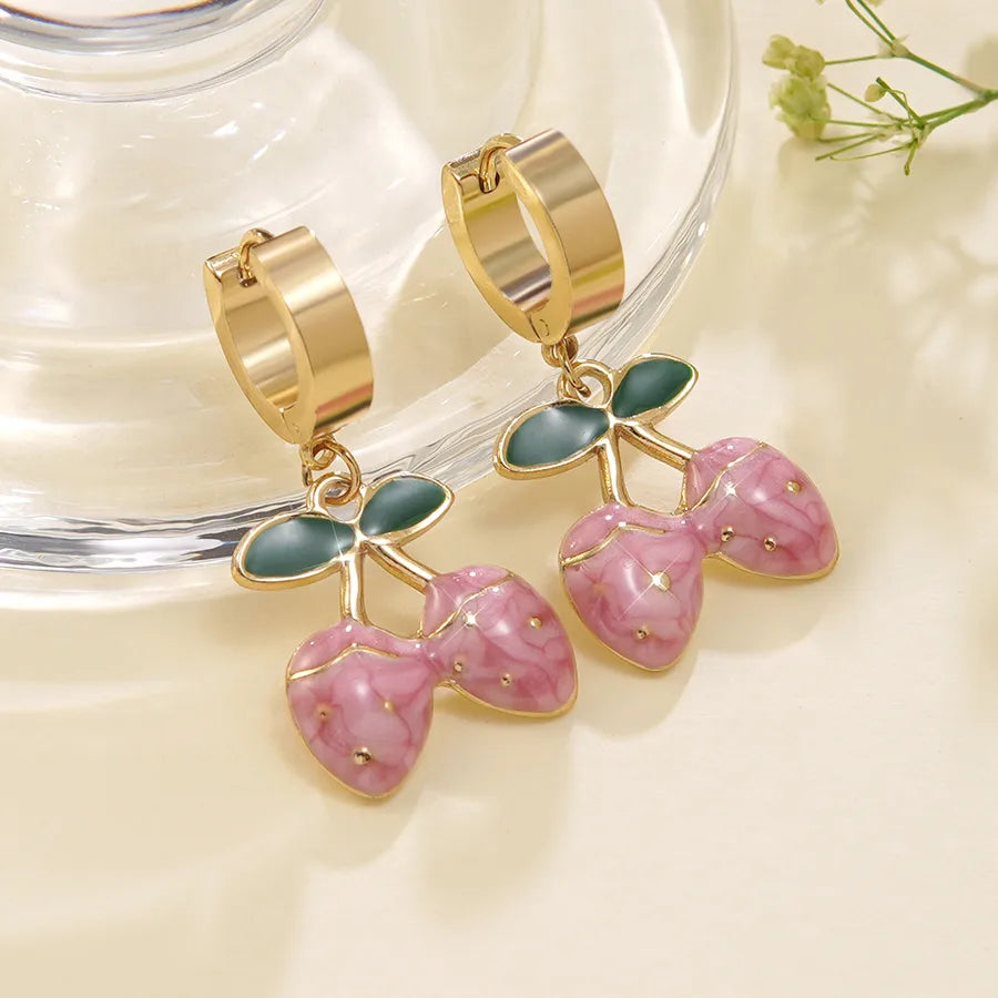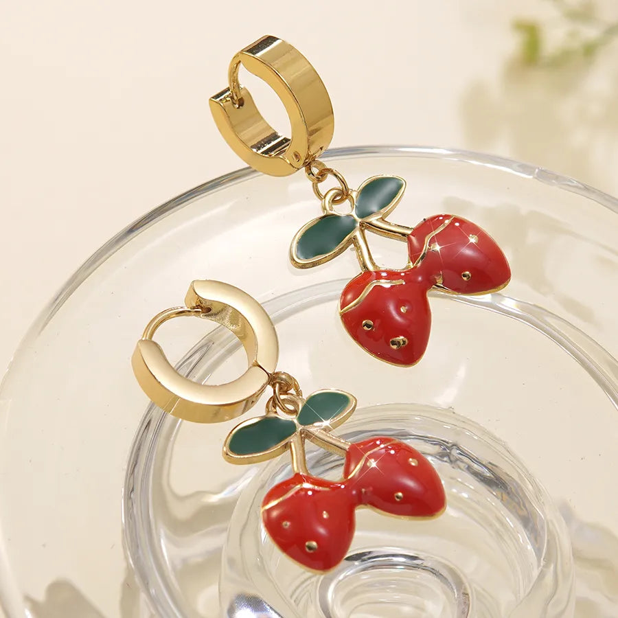 A Pair of Earrings with a Sweet and Simple Style in the Shape of Fruits, Made of 304 Stainless Steel, Suitable for Women to Wear at Family Gatherings