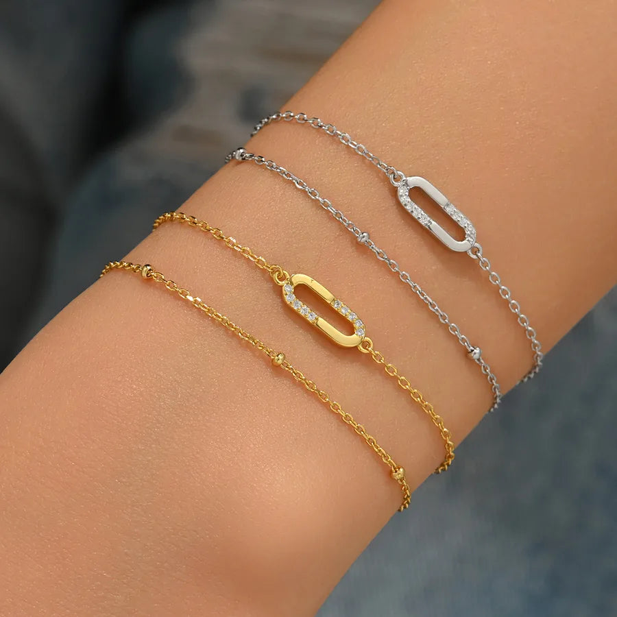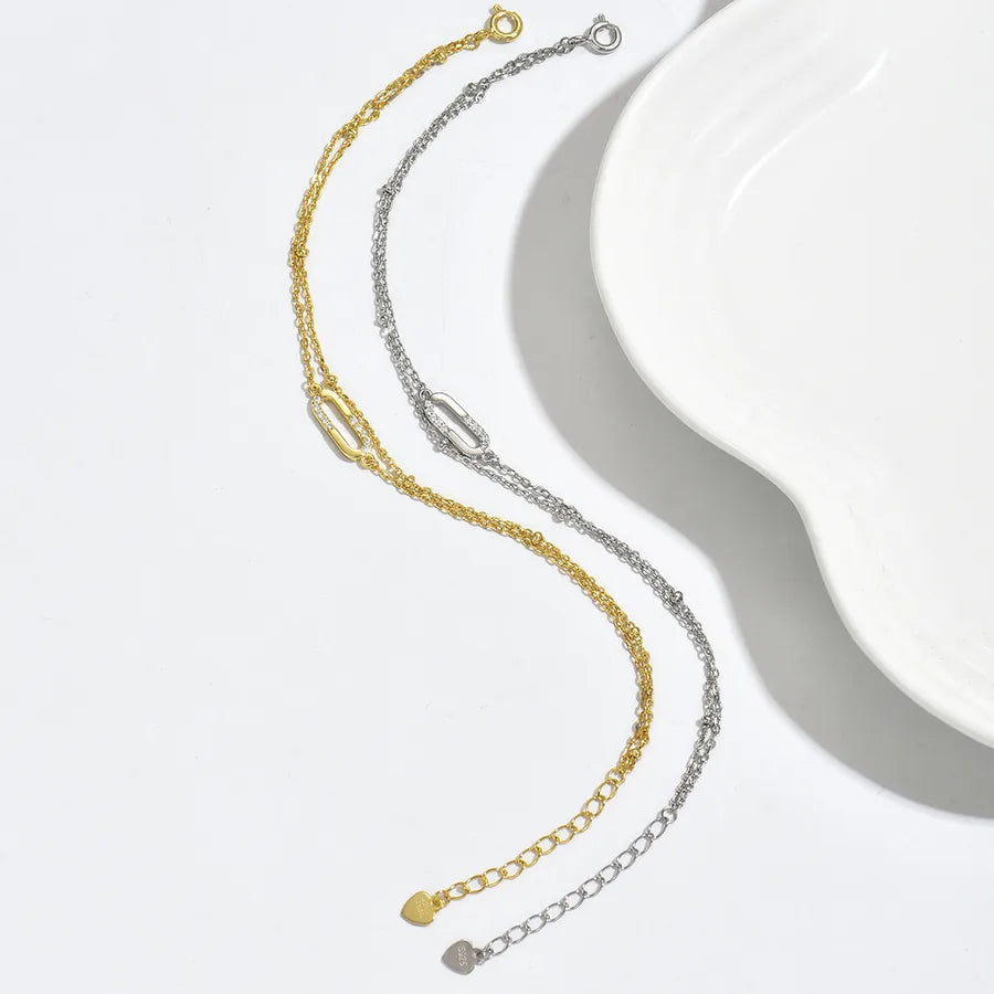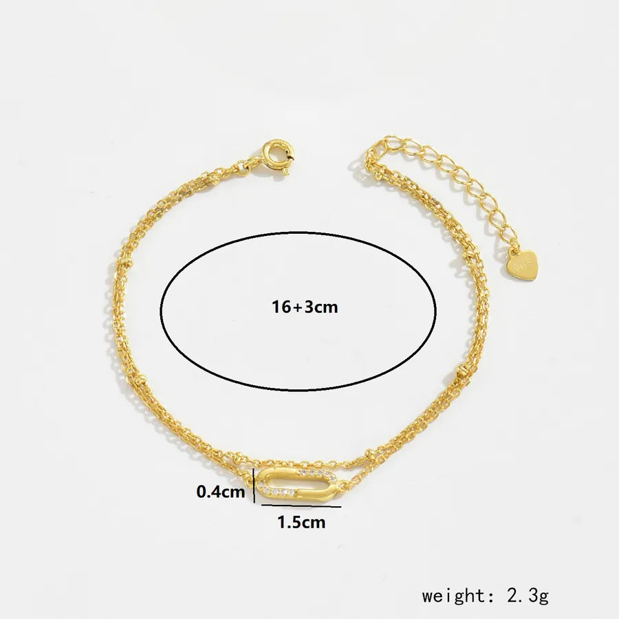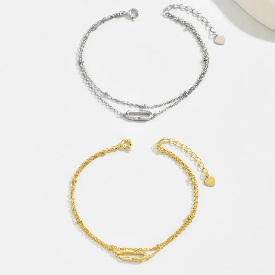 1 Minimalist S925 Sterling Silver Zircon Inlaid Geometric Double Layer Design Chain 18K Gold Plated Bracelet for Women