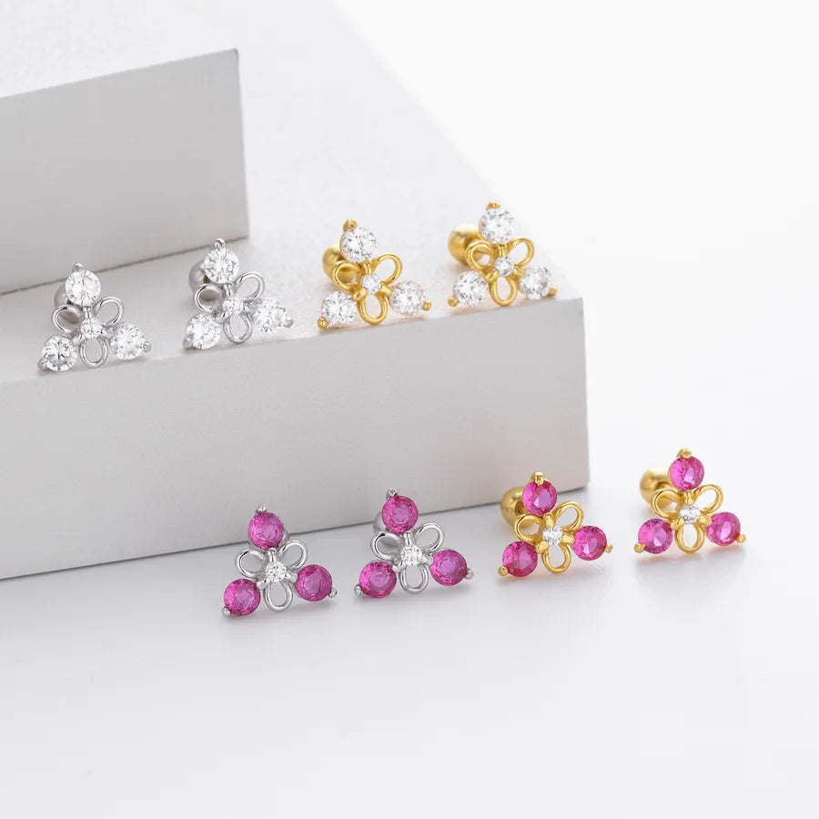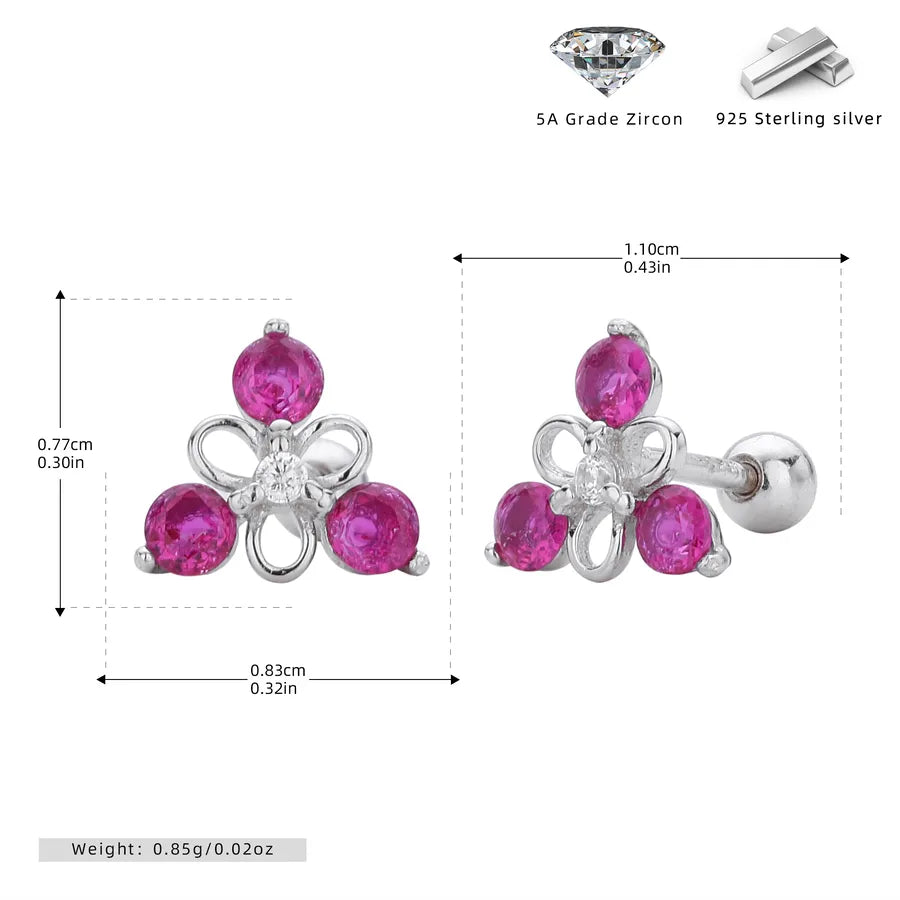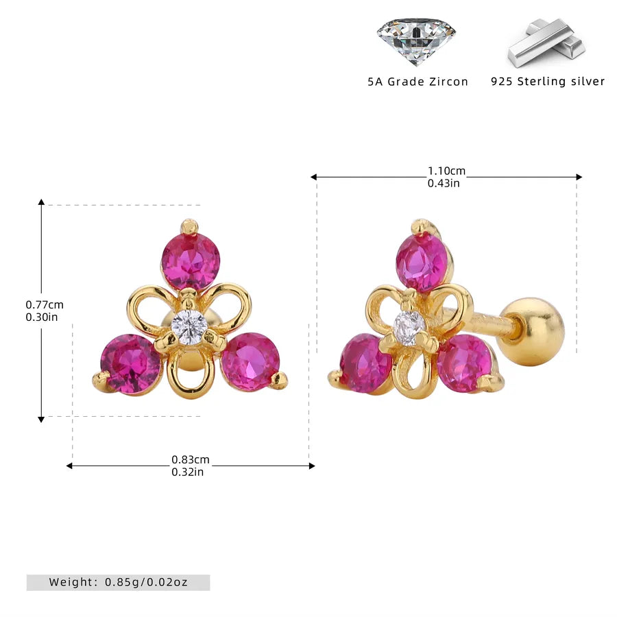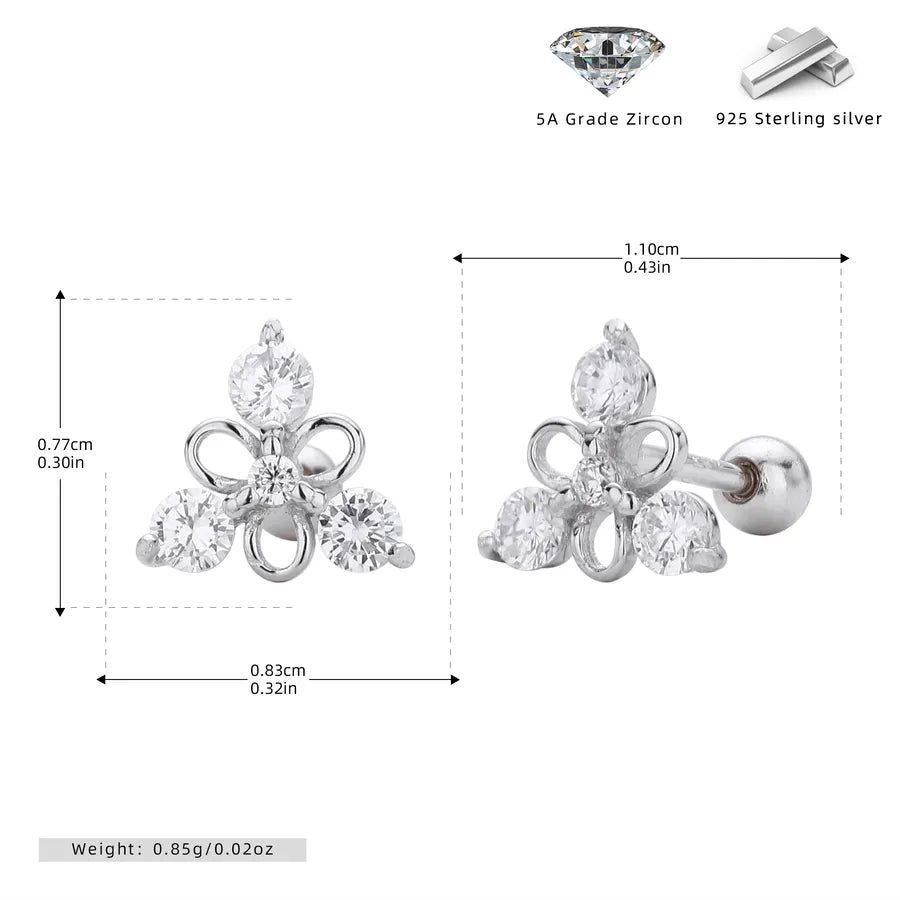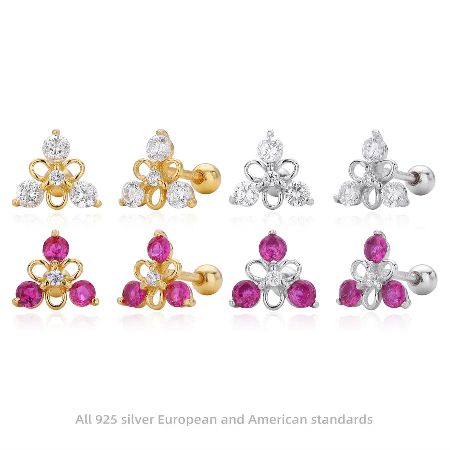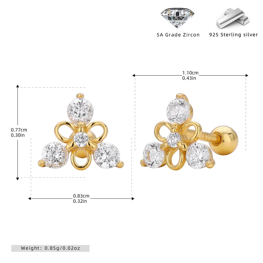 18K Gold Plated Rhodium Plated S925 Sterling Silver Ear Bone Stud Nose Stud Zircon Triangle Earrings