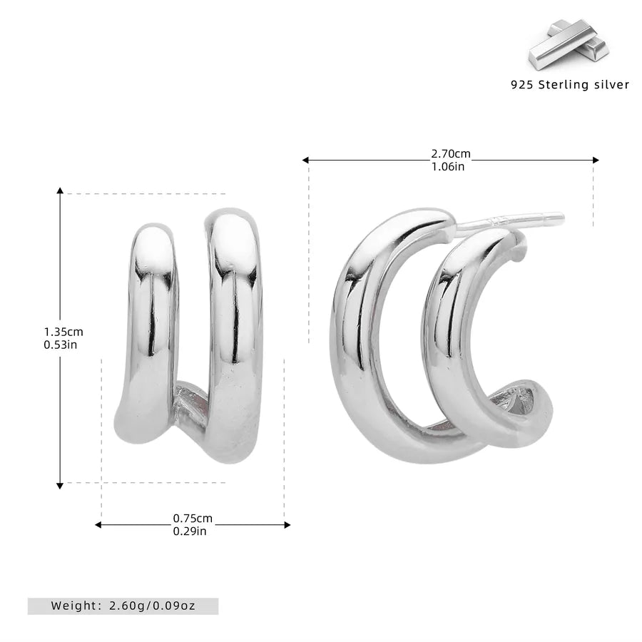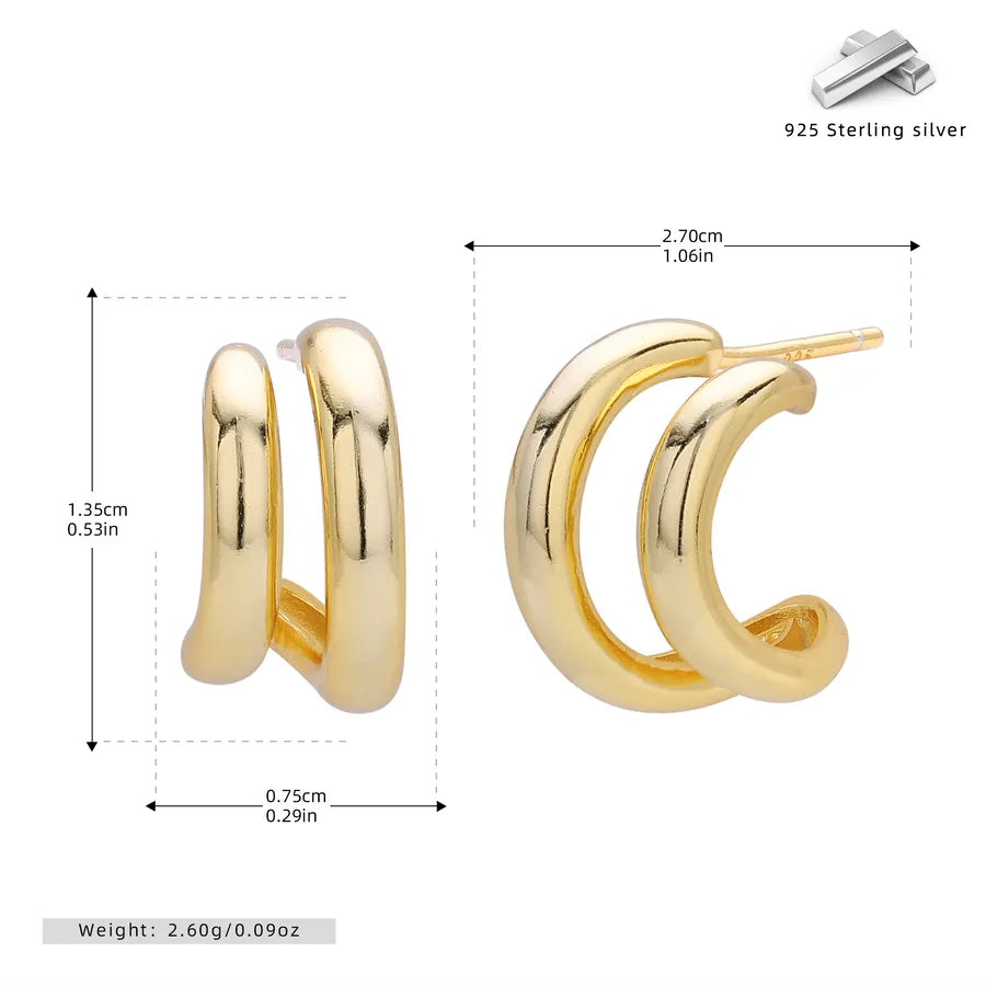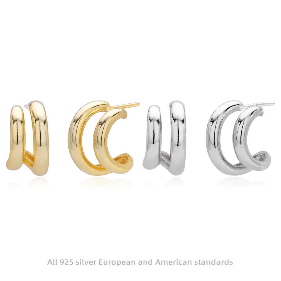 18K Gold Plated Rhodium Plated S925 Sterling Silver Earrings C-Shaped Studs