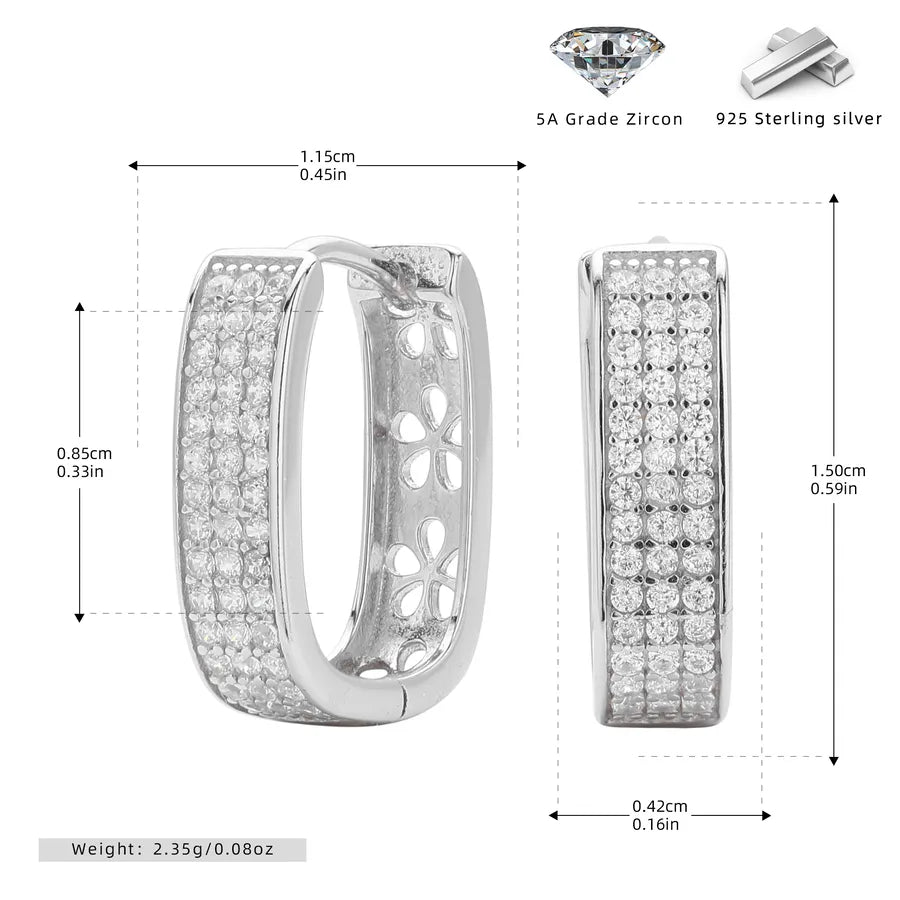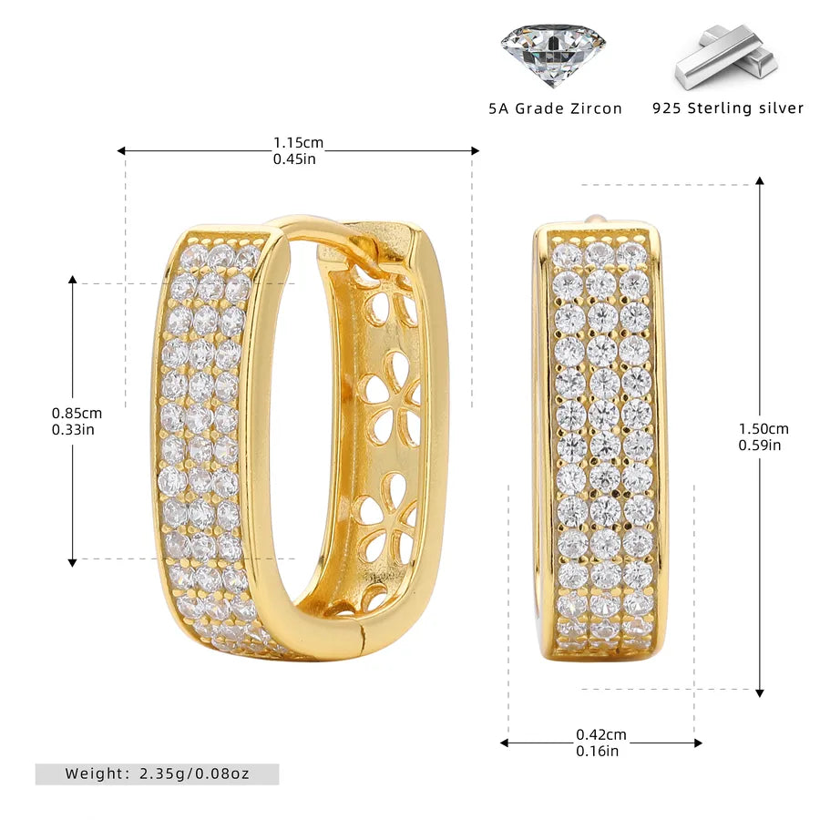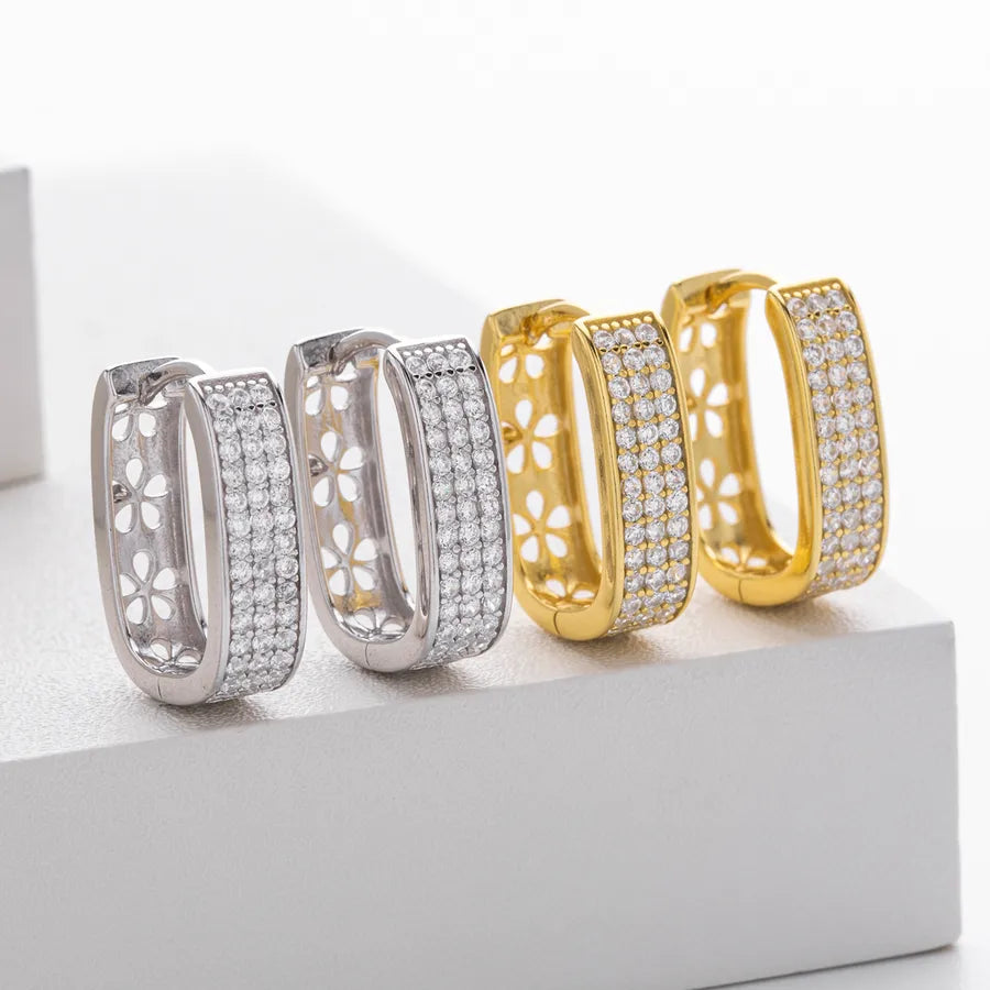 18K Gold Plated Rhodium Plated S925 Sterling Silver Earrings with Cubic Zirconia Square Earrings