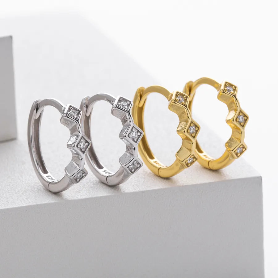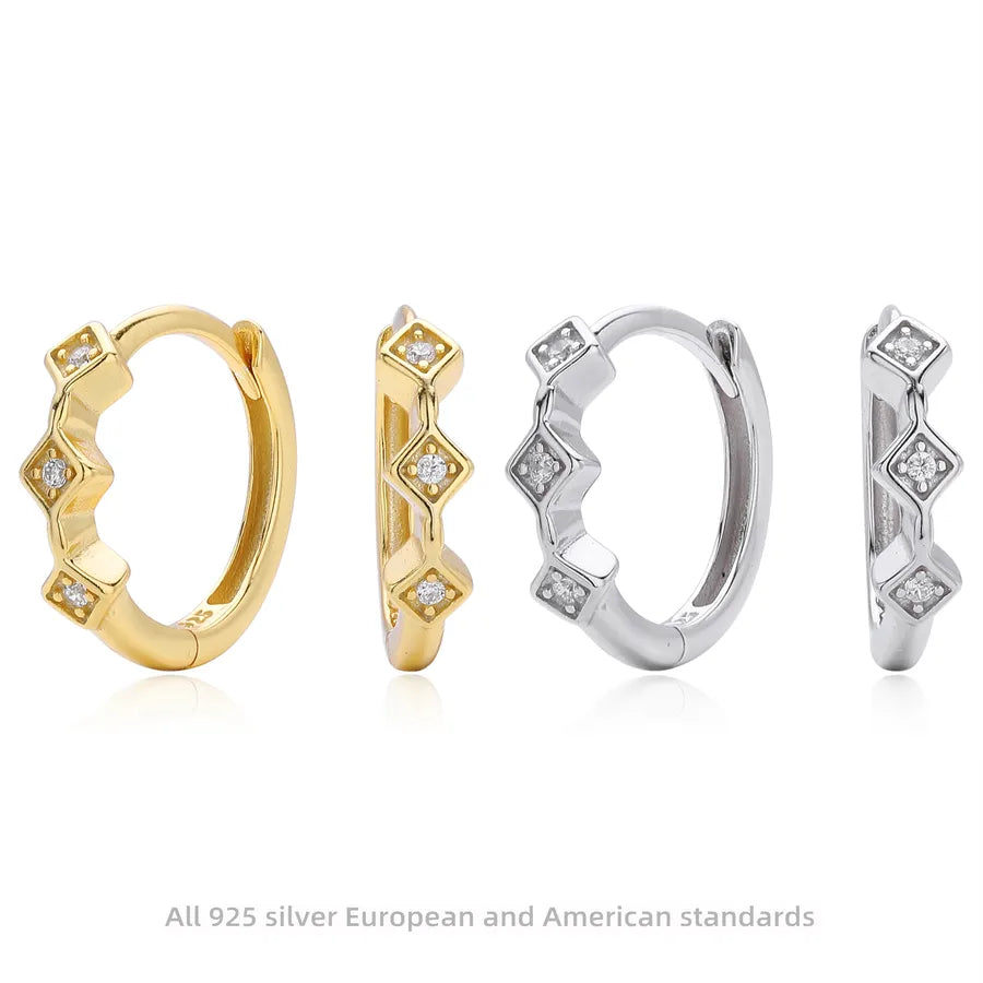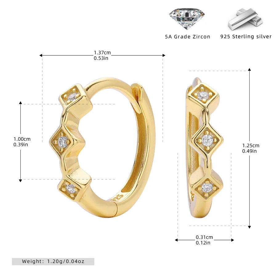 18K Gold Plated Rhodium Plated S925 Sterling Silver Earrings with Zirconia Rhombus Earrings