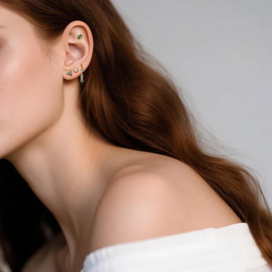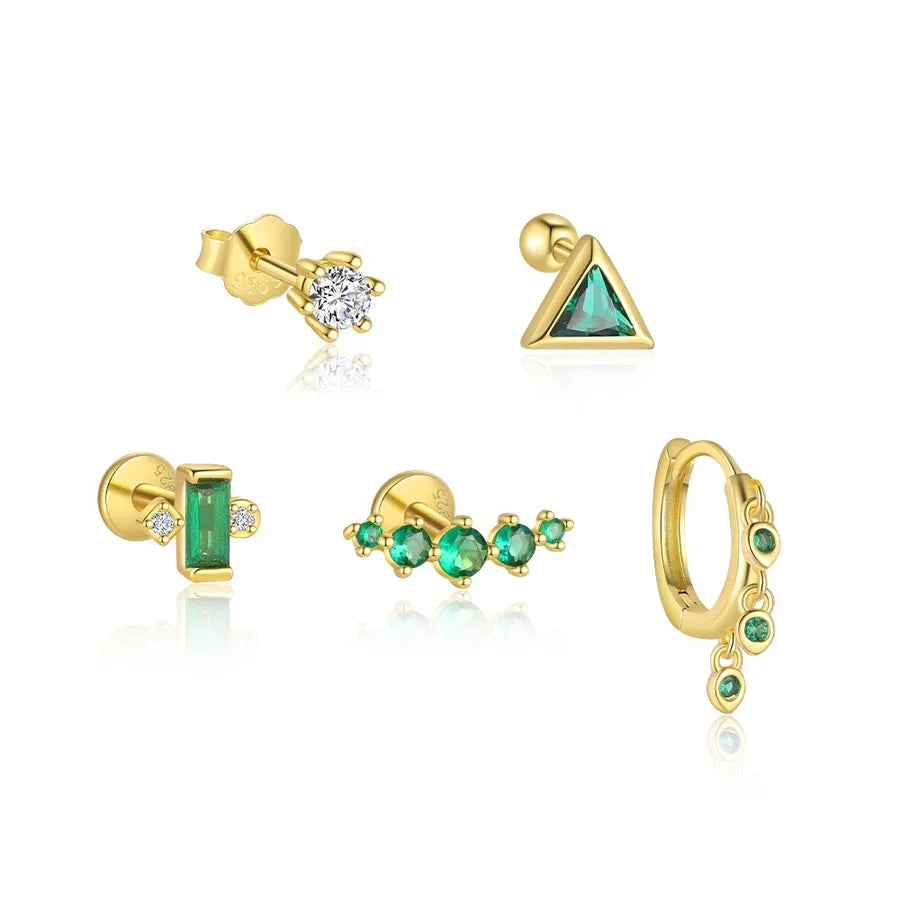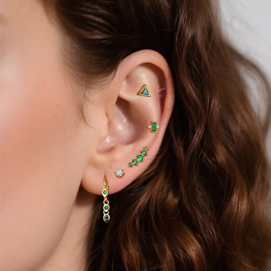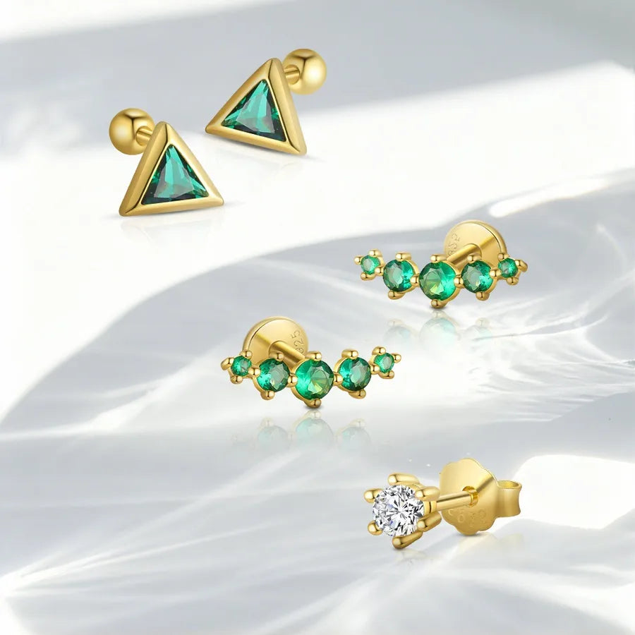 Fashionable S925 Sterling Silver Nano Geometric Women's Earrings Luxury Ear Bone Studs Circular And Line Engraved With Zirconia