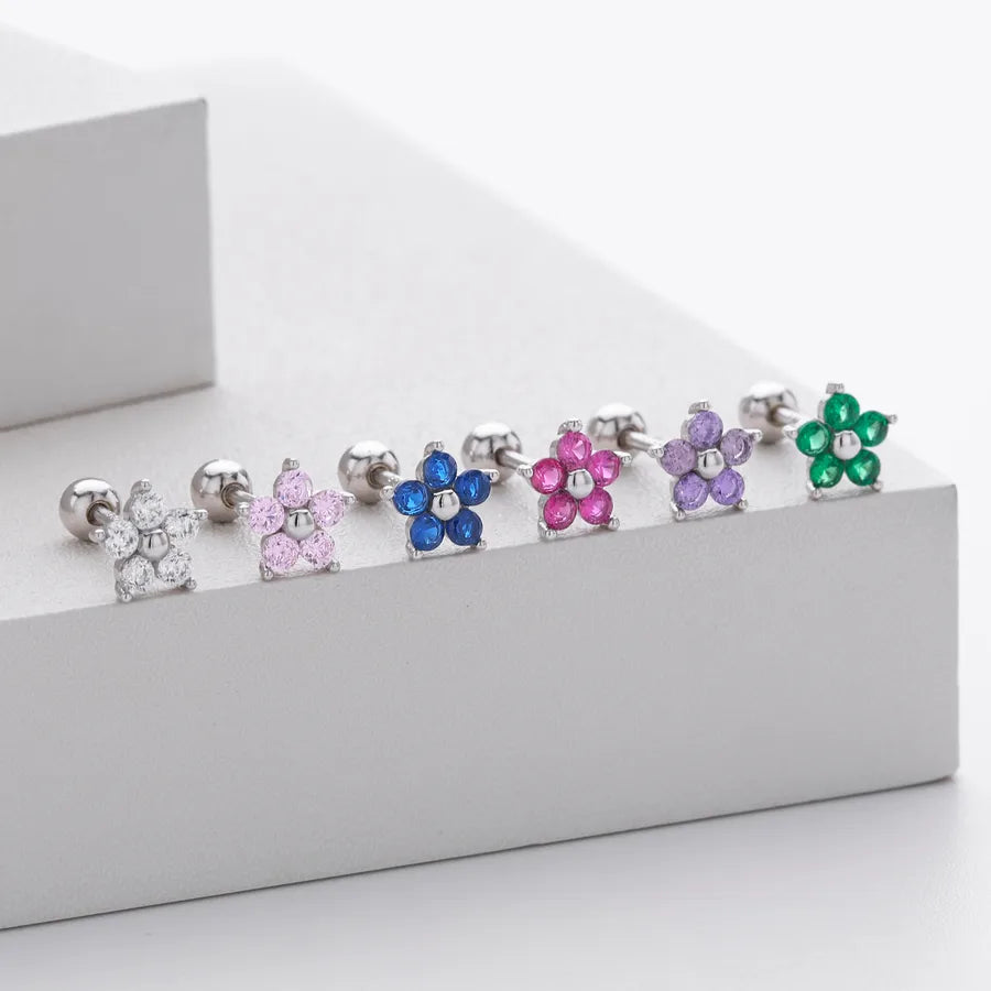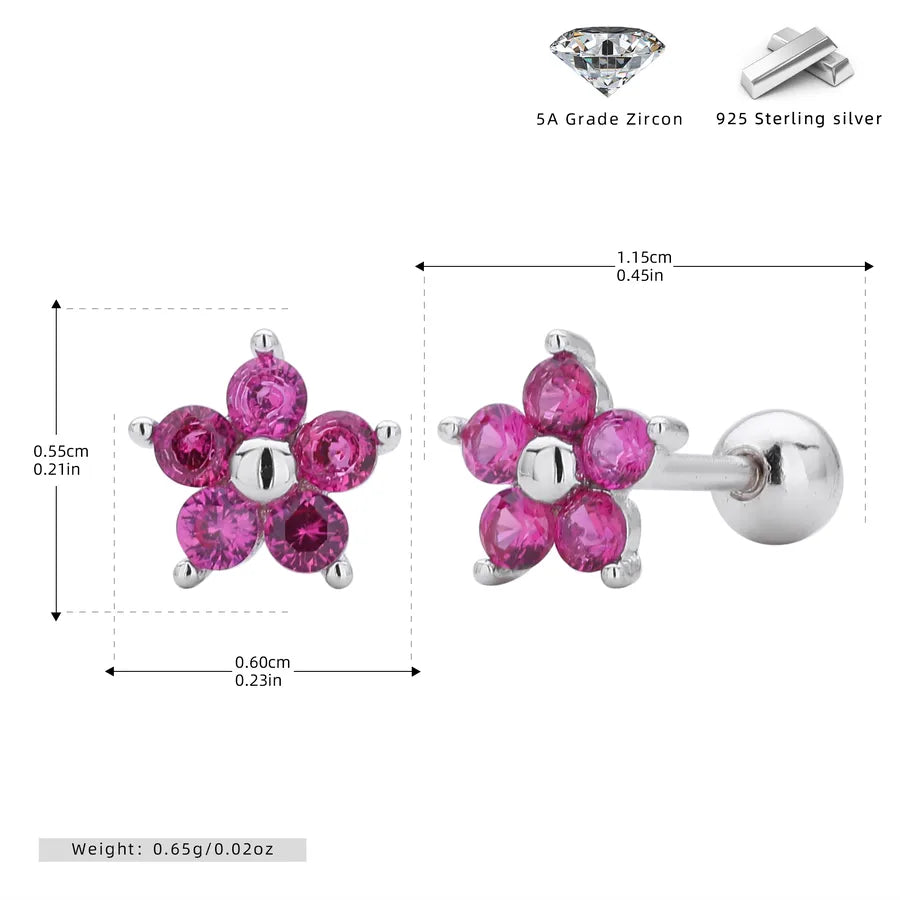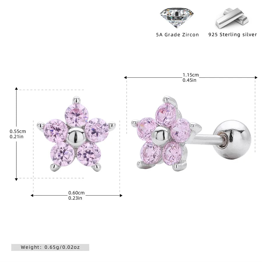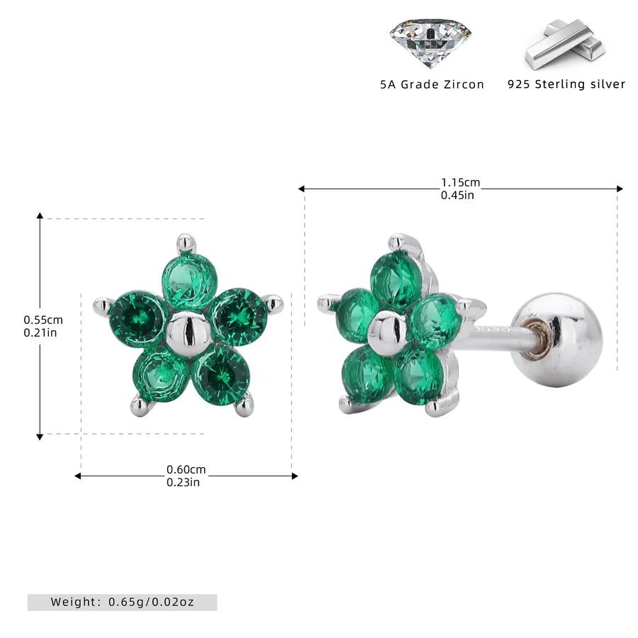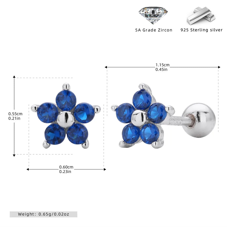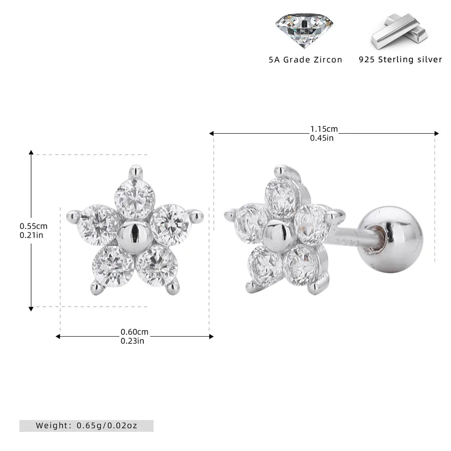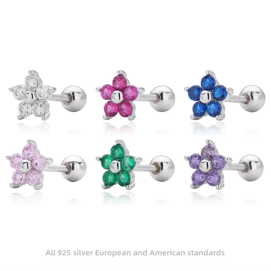 New S925 Sterling Silver Earrings Five-Pointed Star Inlaid Zircon Threaded Stud Earrings 18K Gold Plated