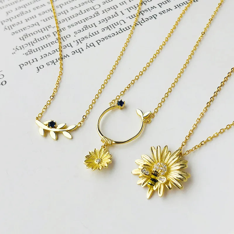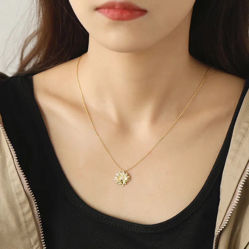 Original Design S925 Sterling Silver Silver Daisy Necklace Women's Collarbone Chain Forest Style Direct Supply