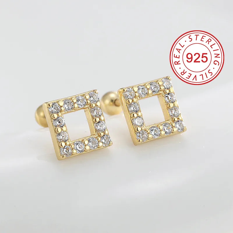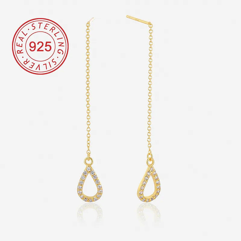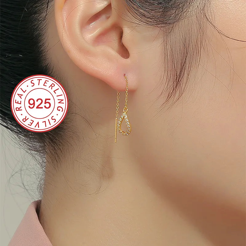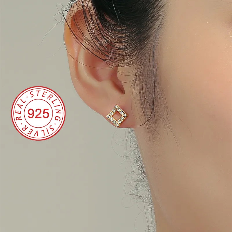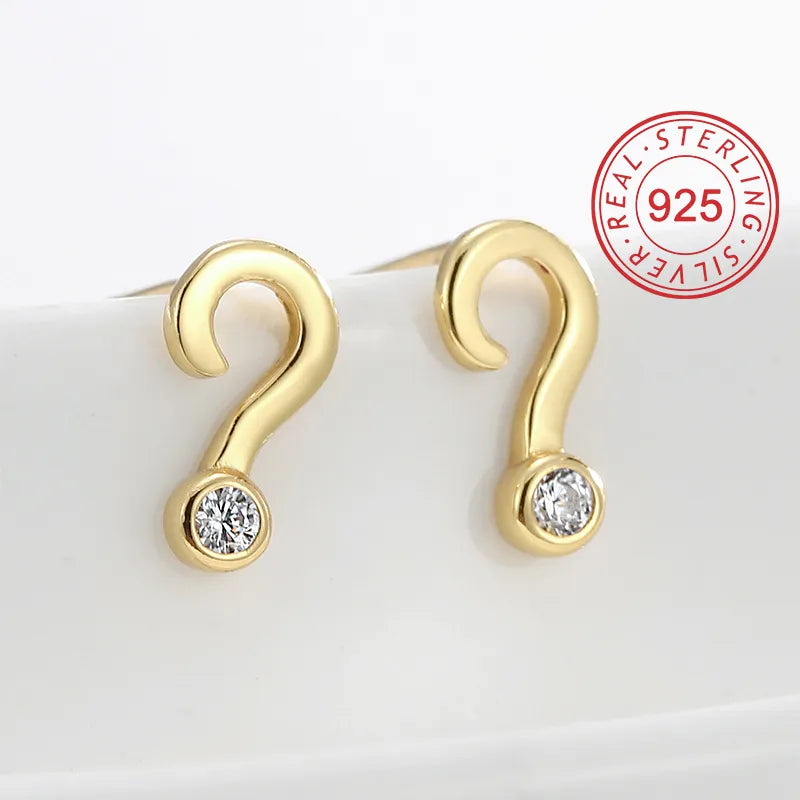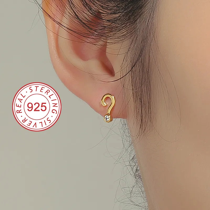S925 Silver Plated 14K Gold Hollow Water Drop, Square, Question Mark Shape Zircon Fashion Earrings for Women Exclusive Multiple Options Available