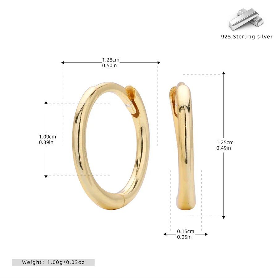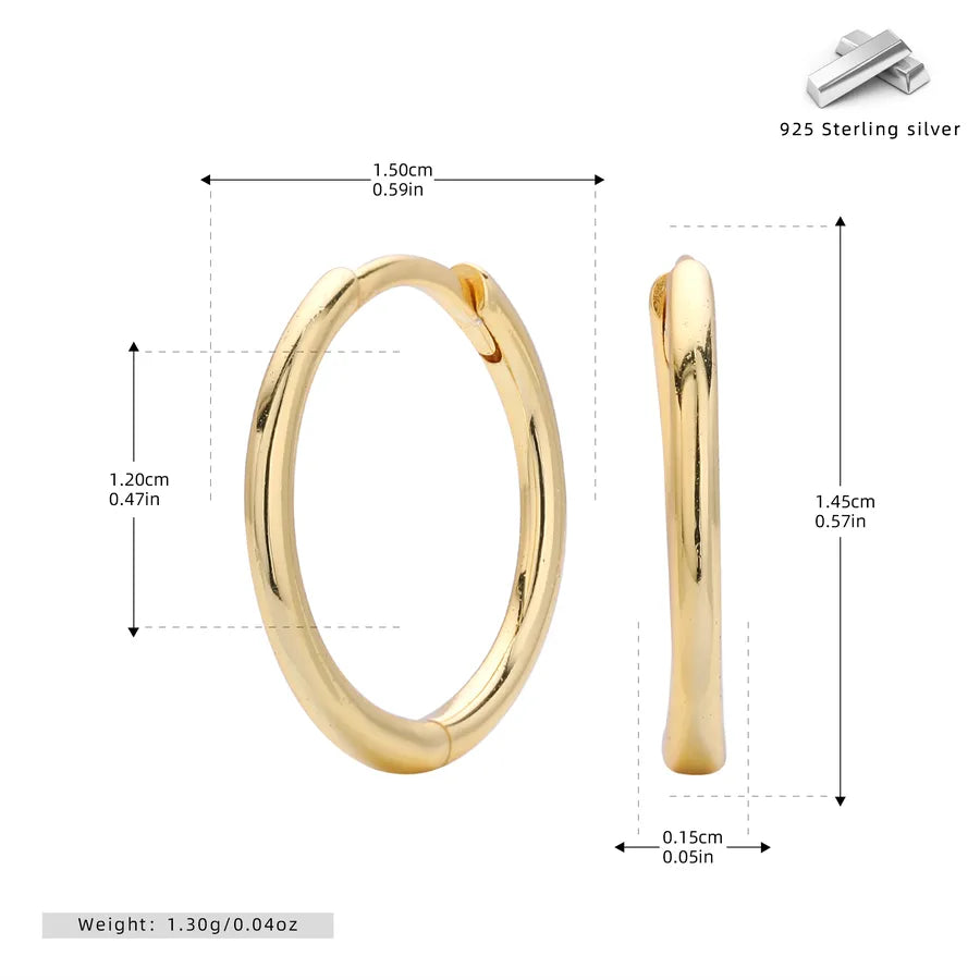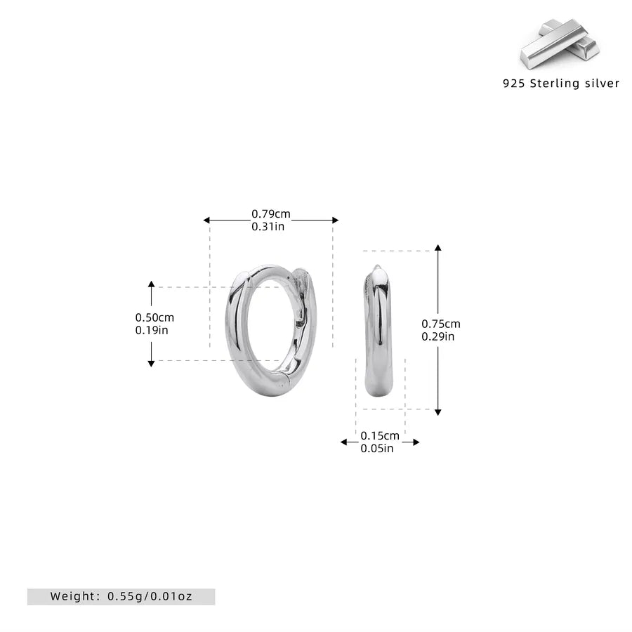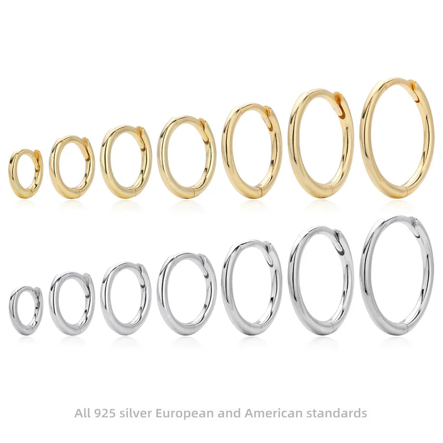 S925 Sterling Silver Ear Cuff Simple 18K Gold Plated Rhodium Plated Circle Three-Dimensional Hoop Earrings