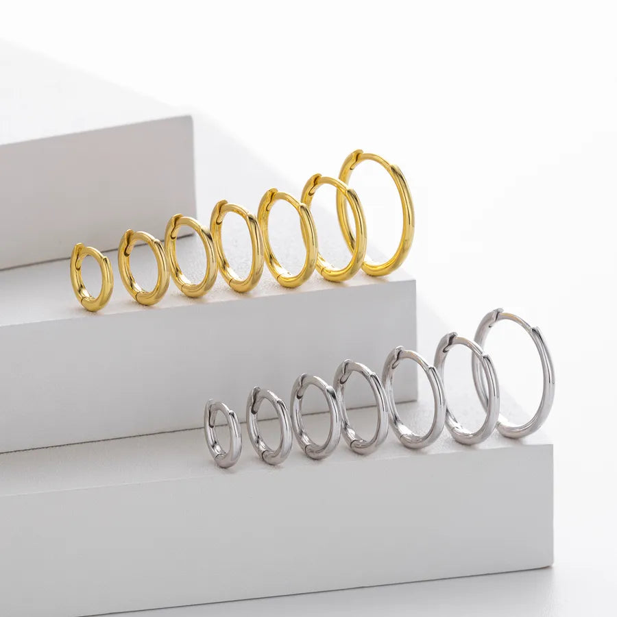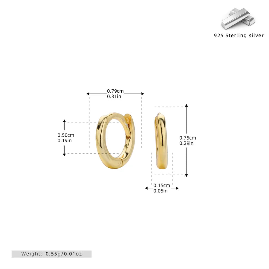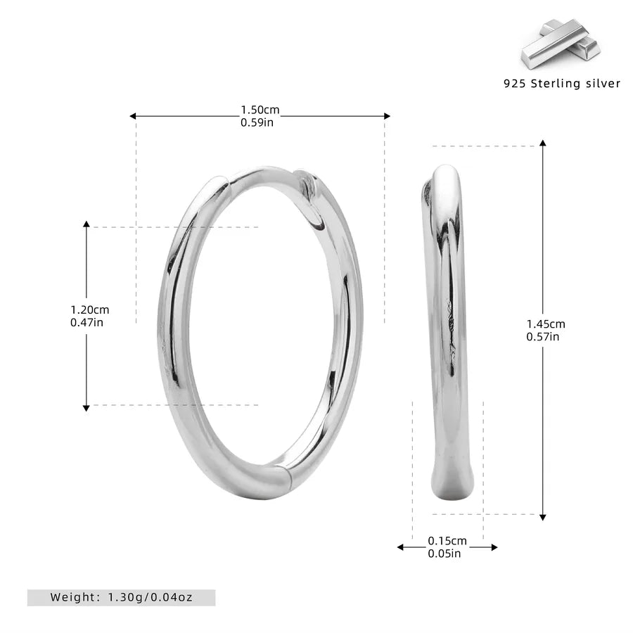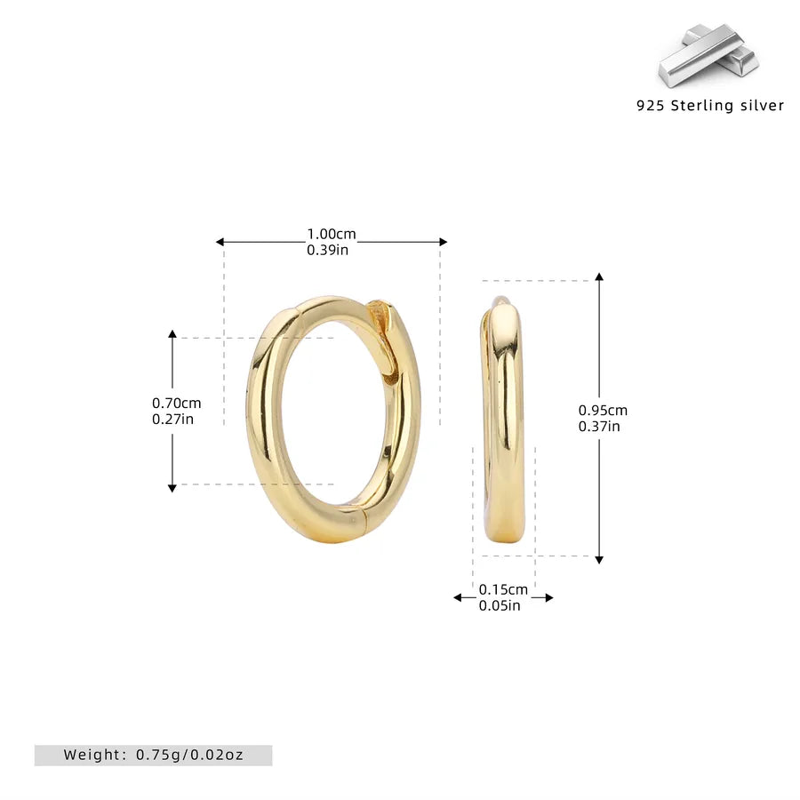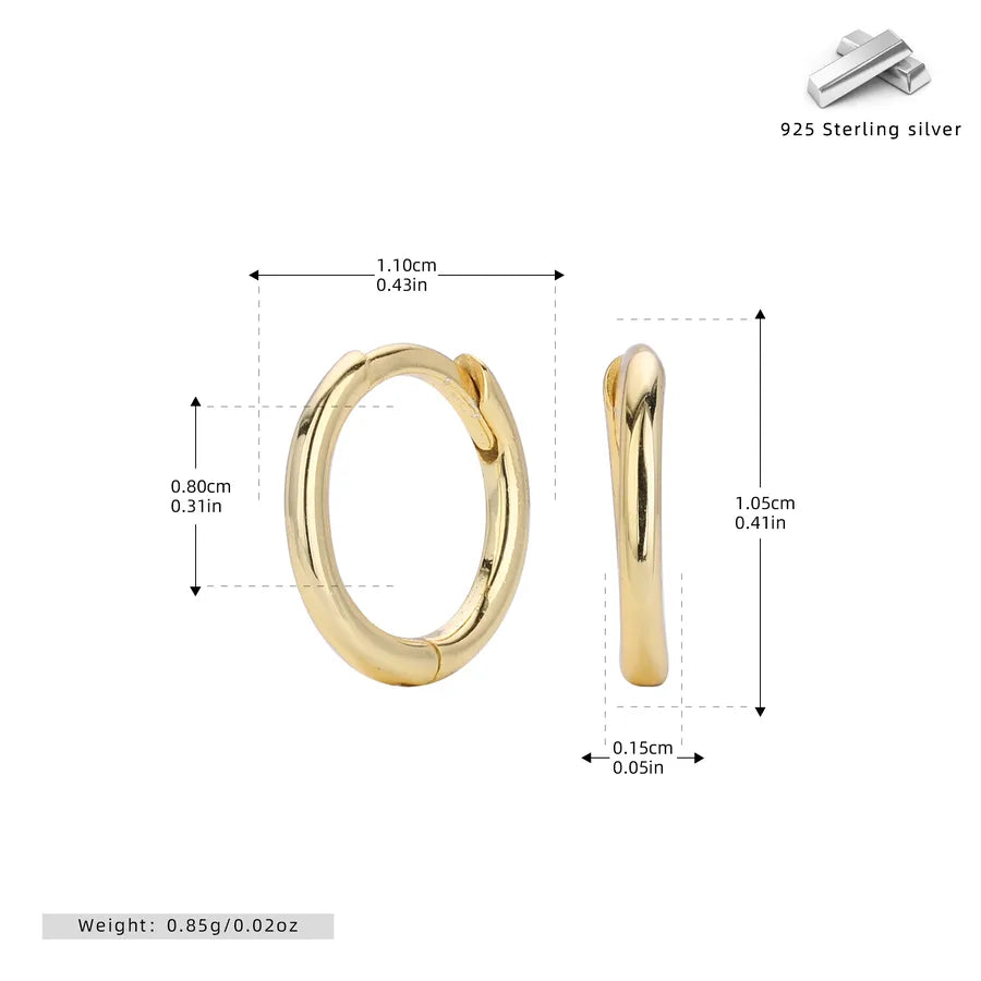 S925 Sterling Silver Ear Cuff Simple 18K Gold Plated Rhodium Plated Circle Three-Dimensional Hoop Earrings