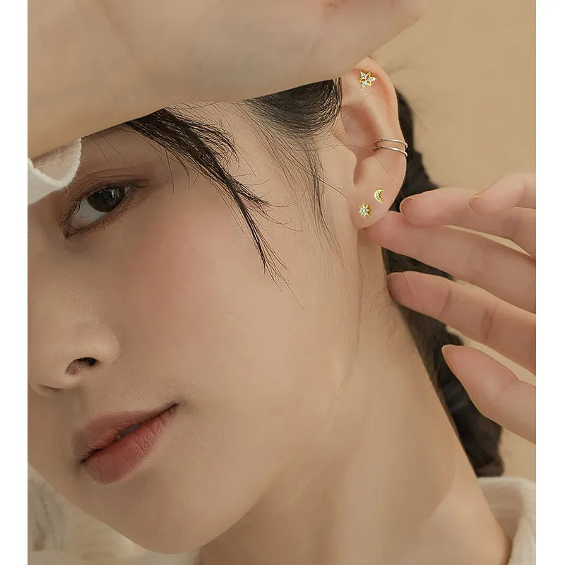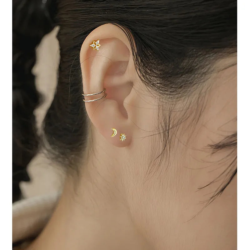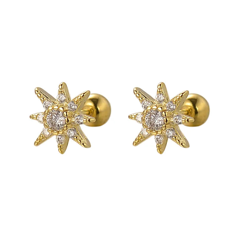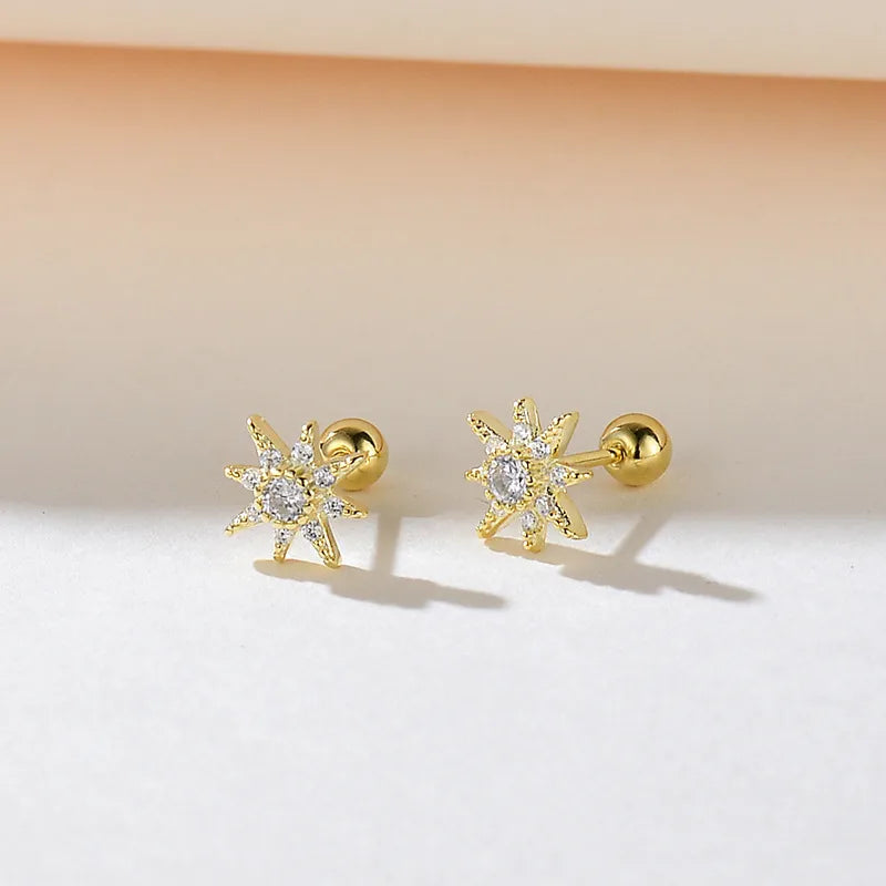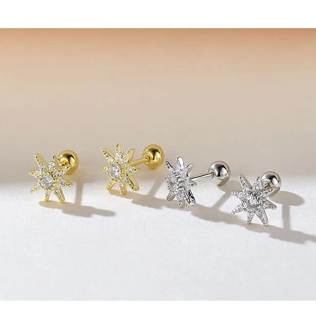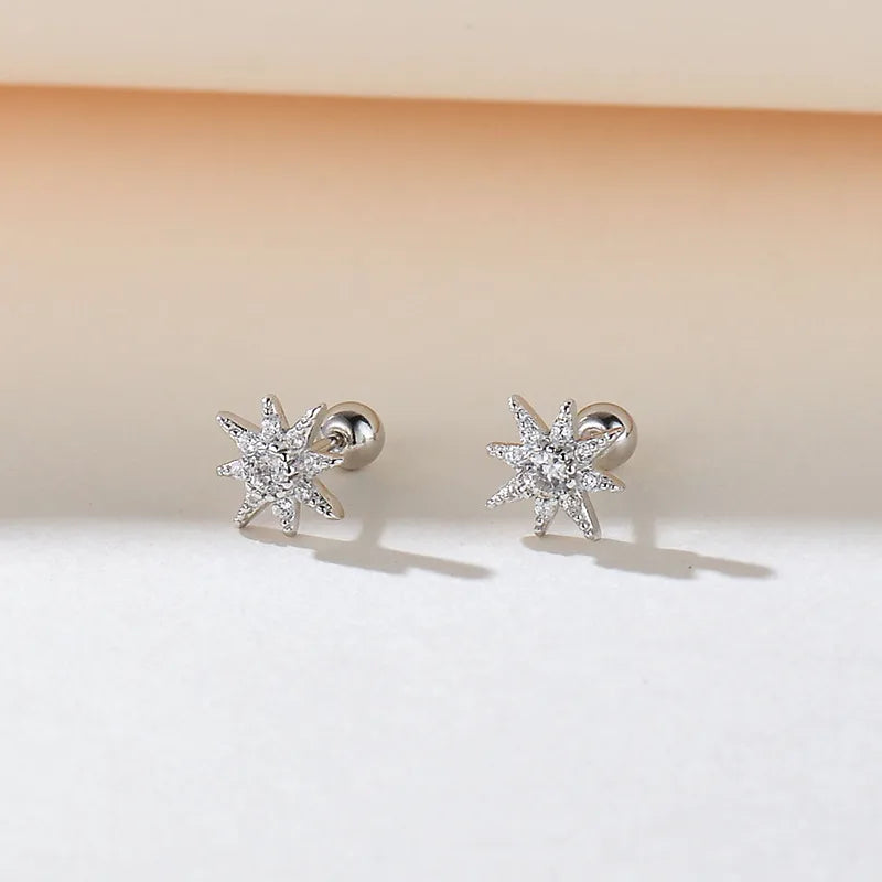 S925 Sterling Silver Flash Diamond Snowflake Christmas Style Women's Earrings Eight-pointed Star Bohemian Floral Print Sweet Style