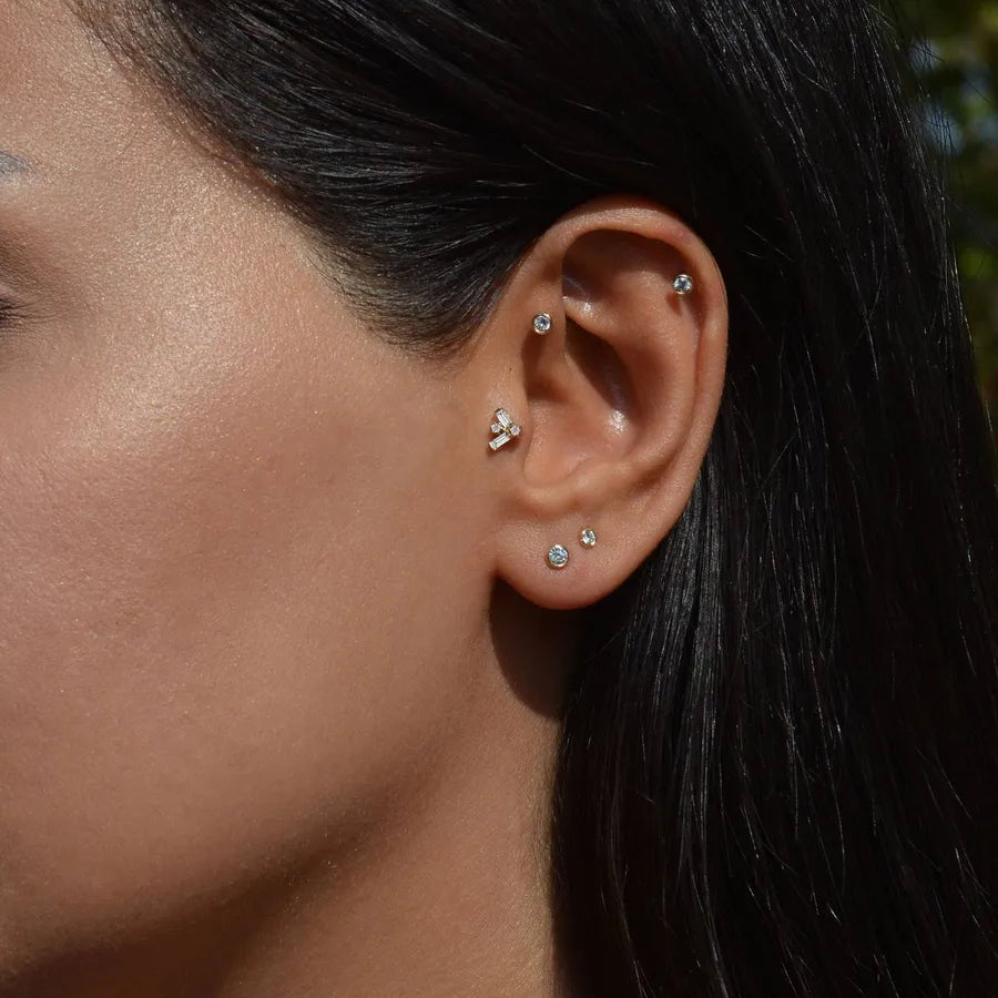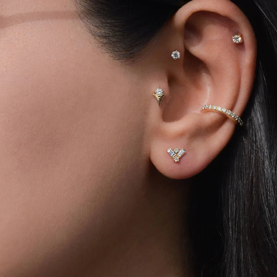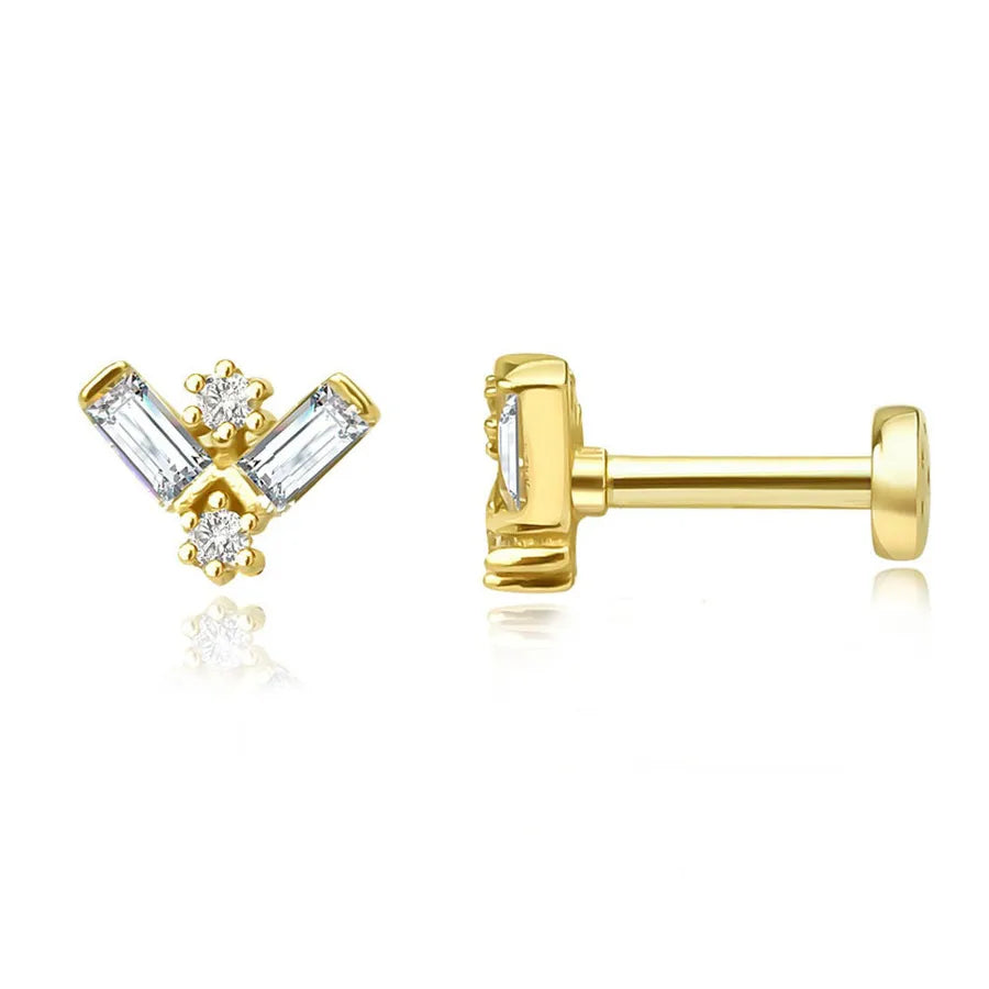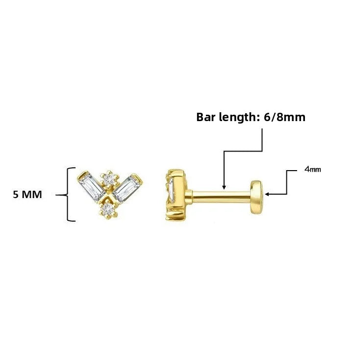 S925 Sterling Silver Geometric Paved Diamond Piercing Earrings Flat Bottom Thread Sweet Style Unisex Geometric Pattern Hoops