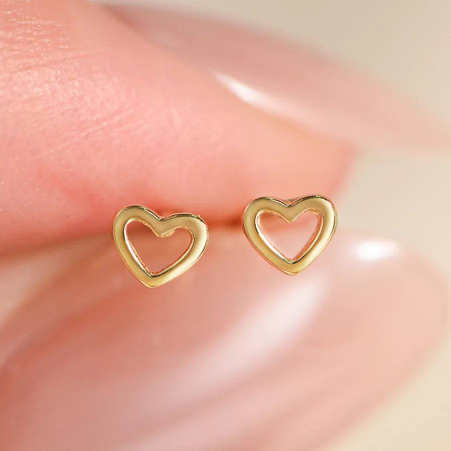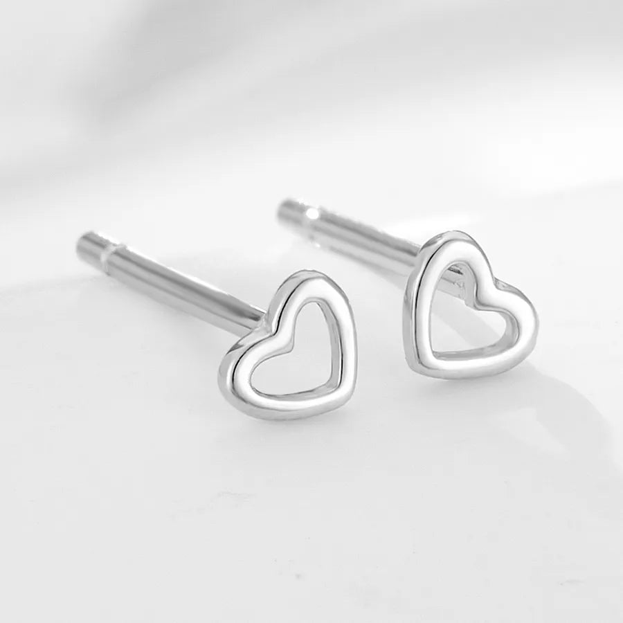 S925 Sterling Silver Heart-Shaped Small Earrings Ear Bone Studs Simple Mini Hollow Small Soft Bone Studs Small Ear Soft Bone Earrings