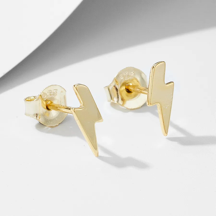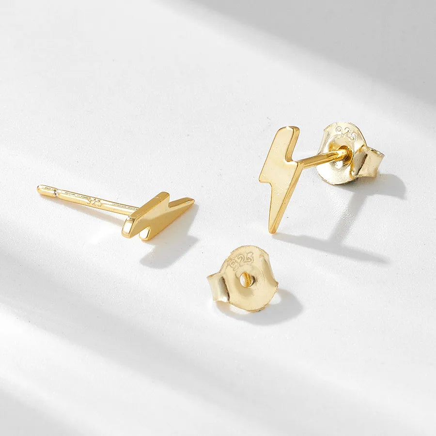 S925 Sterling Silver Mini Lightning Stud Earrings for Women New Version Ins Light Luxury Simple Small Exquisite Ear Piercing Silver Earrings Jewelry