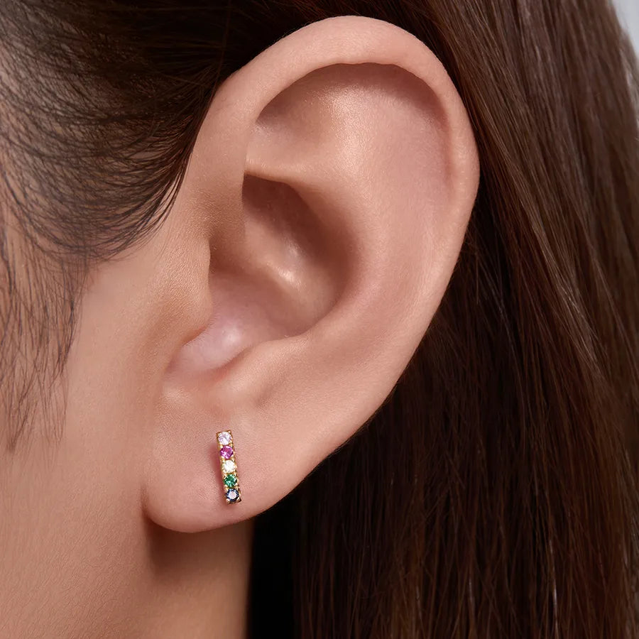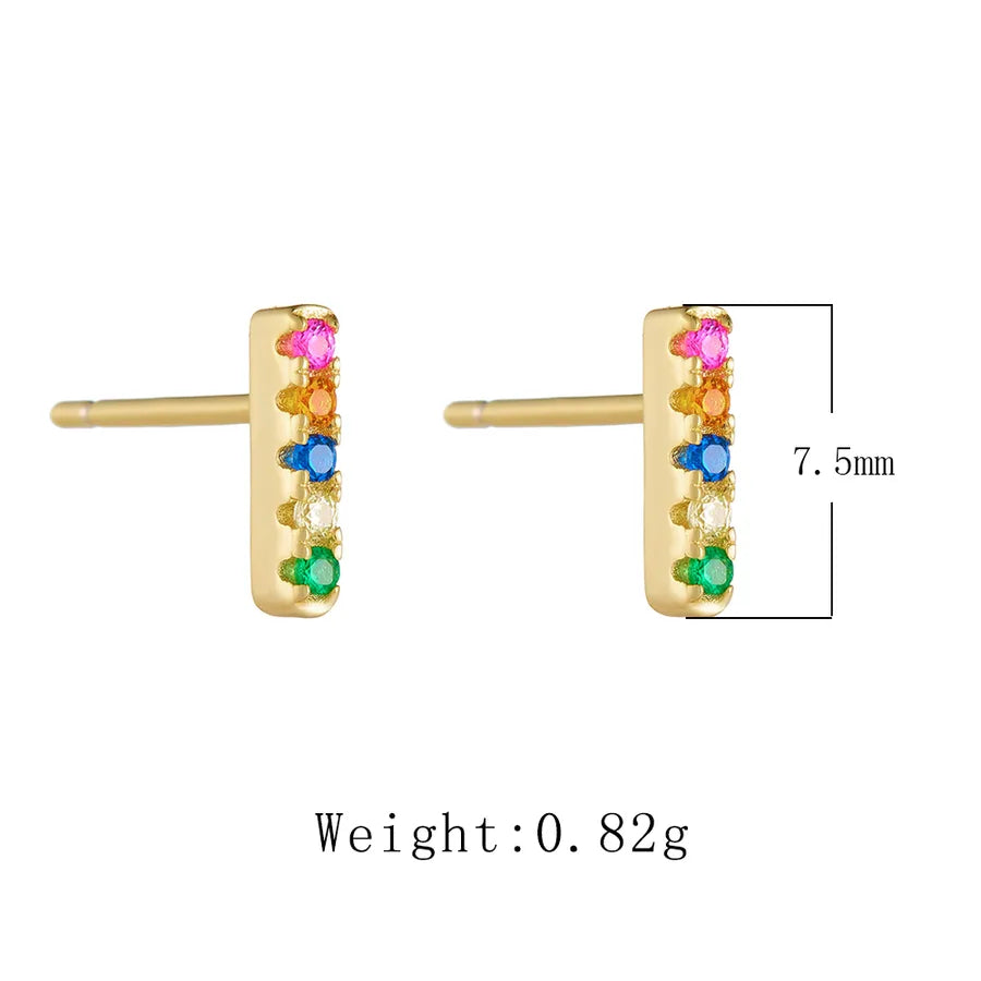 S925 Sterling Silver One-Line Micro-Inlaid Colorful Zircon Earrings Style Personality Simple Versatile Square Bar Earrings Small Accessories