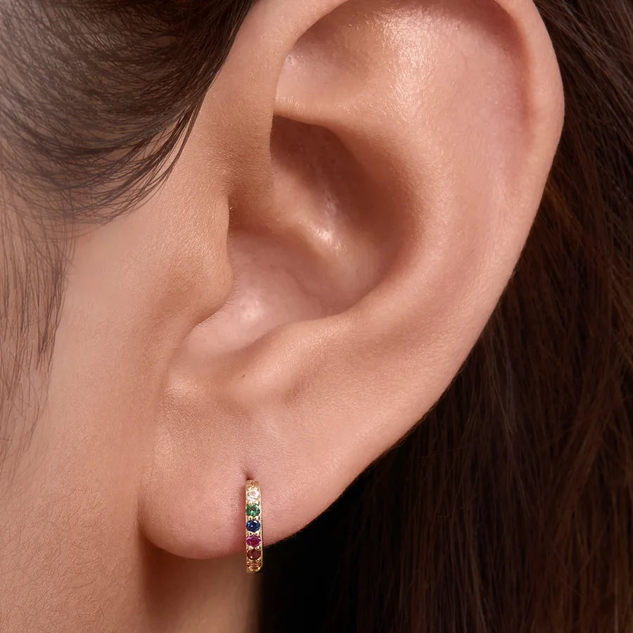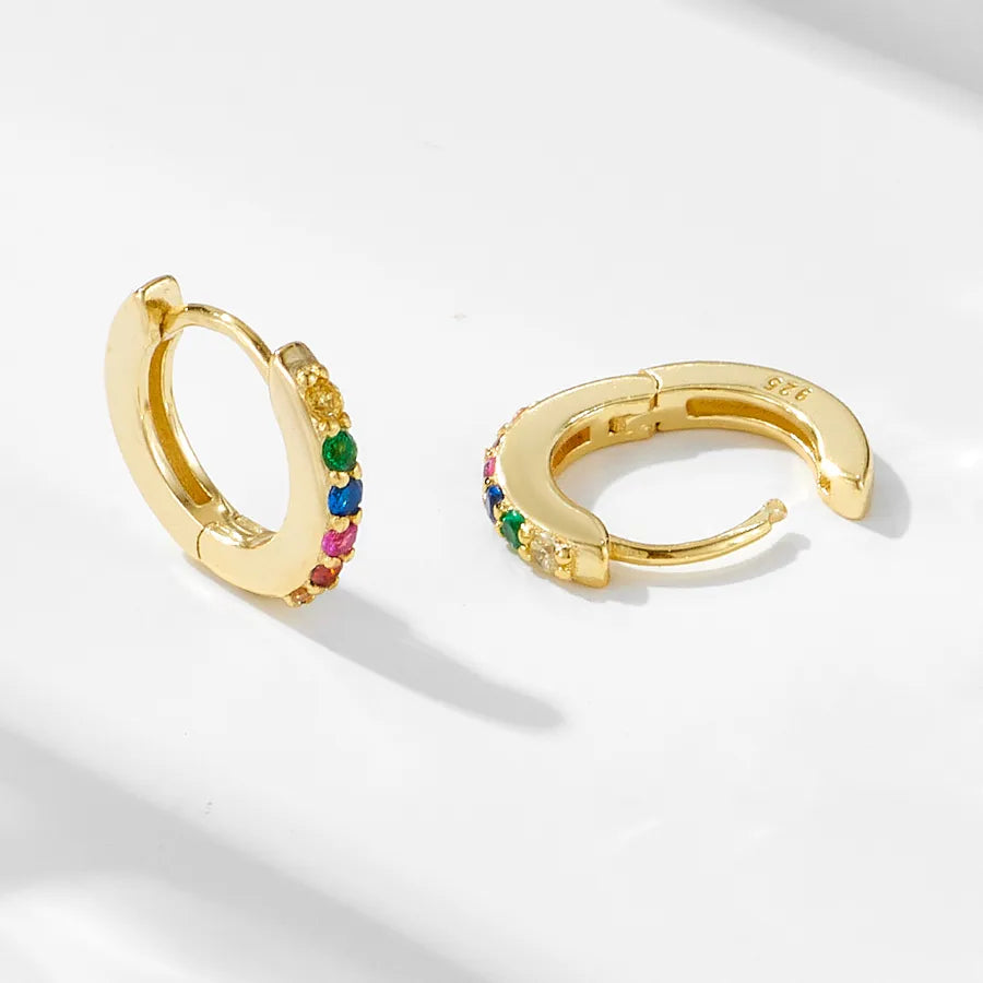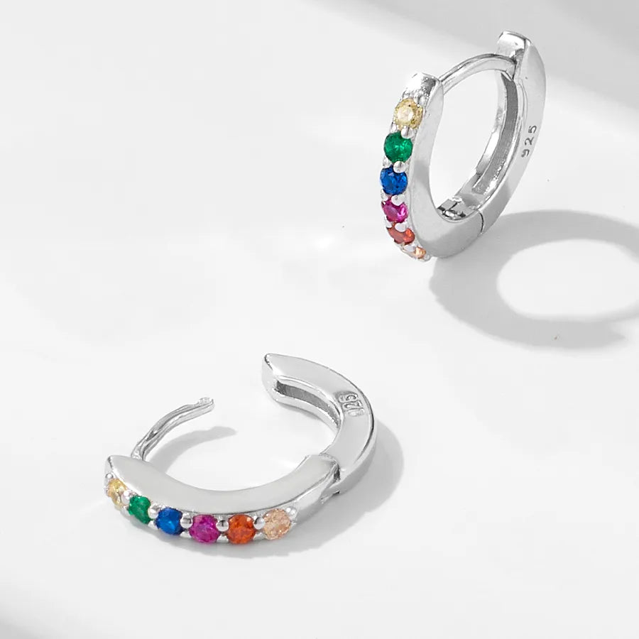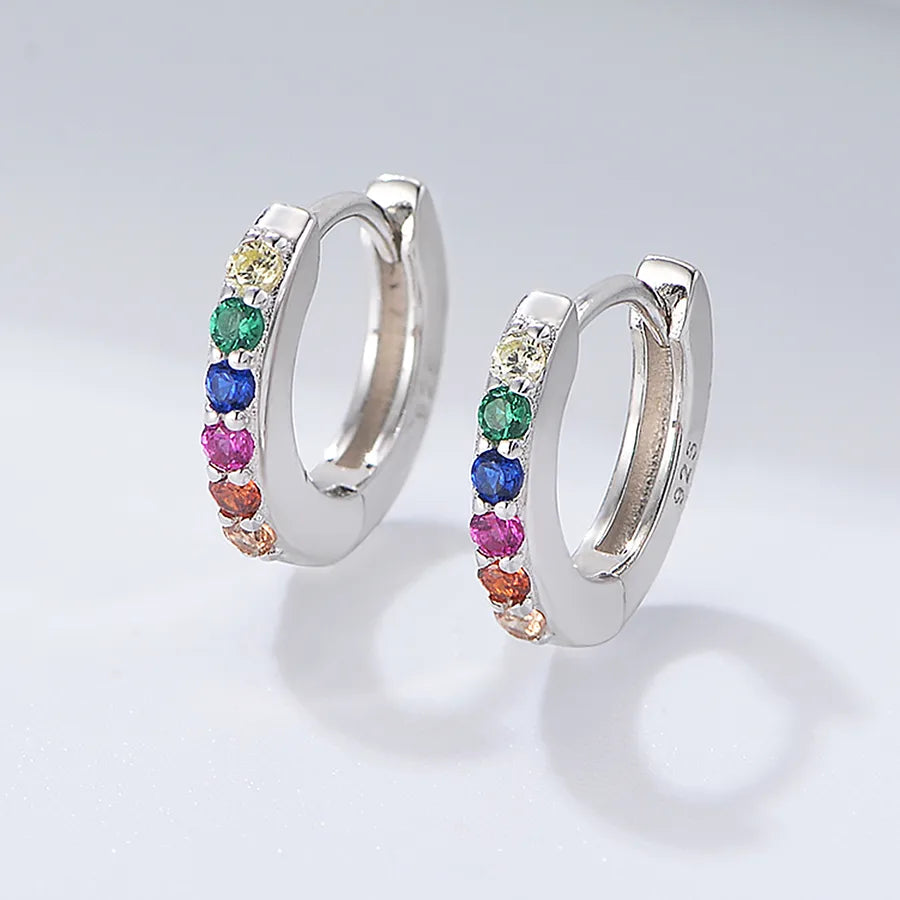 S925 Sterling Silver Round Micro-Inlaid Colorful Zircon Earrings for Women, Ins Style Niche Light Luxury Small Hoop Earrings