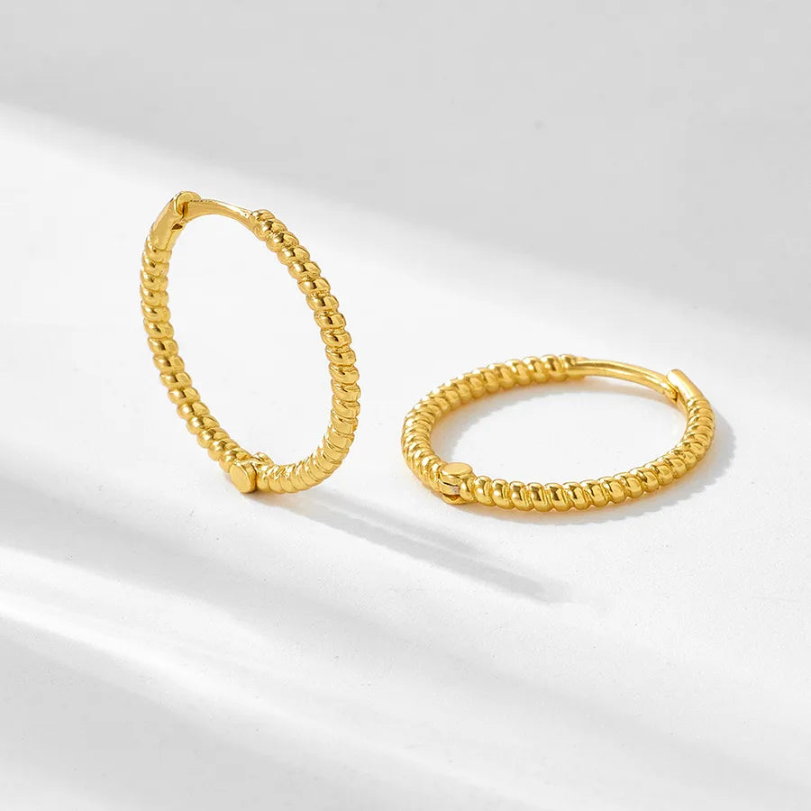 S925 Sterling Silver Solid Twist Rope Earrings New and New Style Personality Simple K Gold Plated Light Luxury Ins Style Women's Earrings