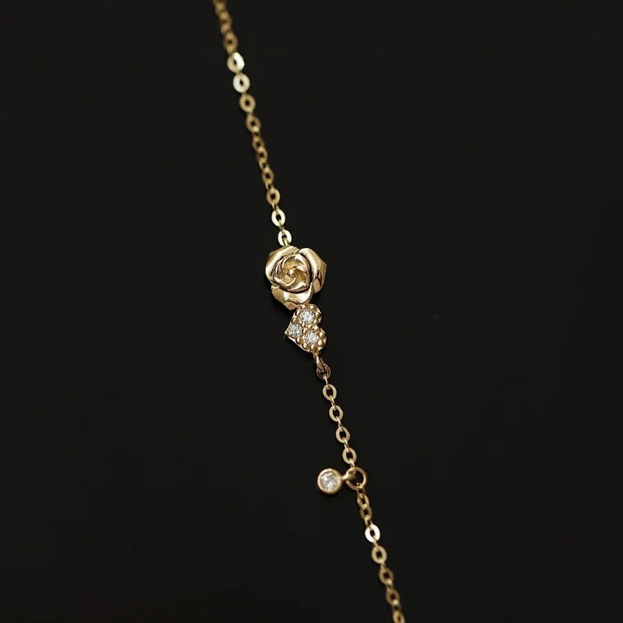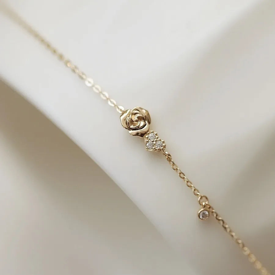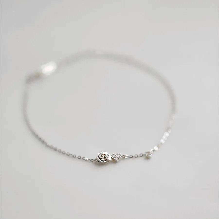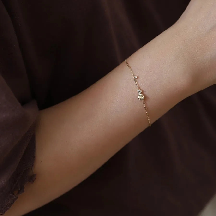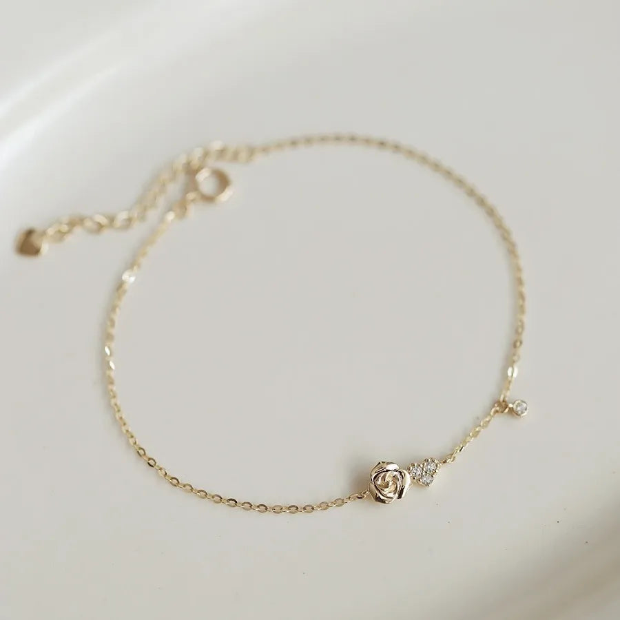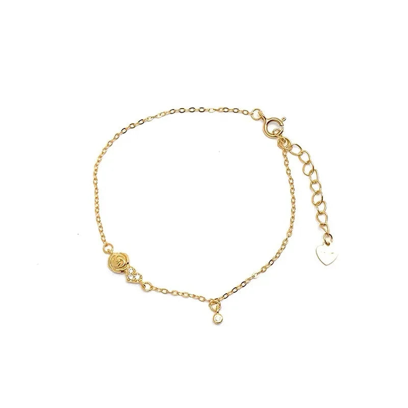 S925 Sterling Silver Zirconia Princess Rose Fine Gold Bracelet Bohemian Floral Print Sweet Style Women's Hand Jewelry