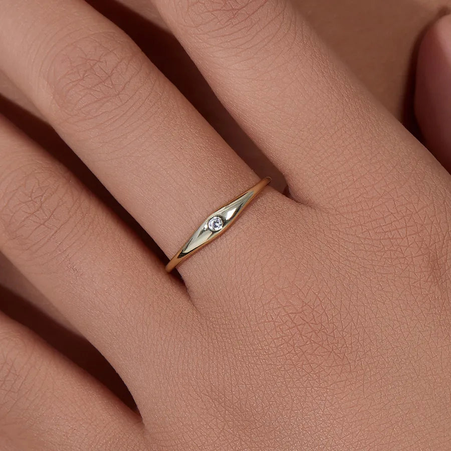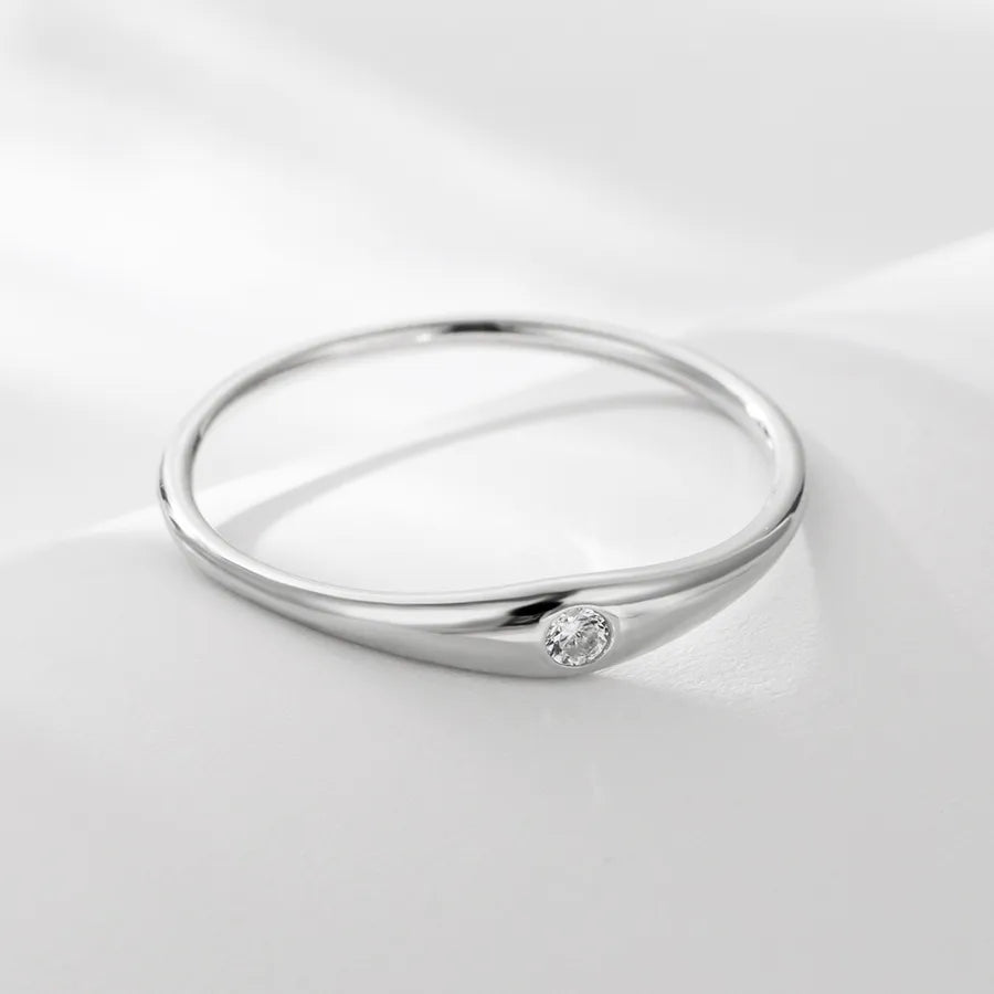 Simple Fashion in Finger Ring Jewelry S925 Sterling Silver Glossy Simple Bracelet Single Rhinestone Ring Women's Light Luxury High-Grade Jewelry