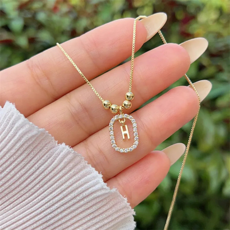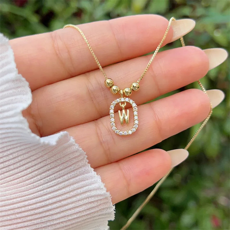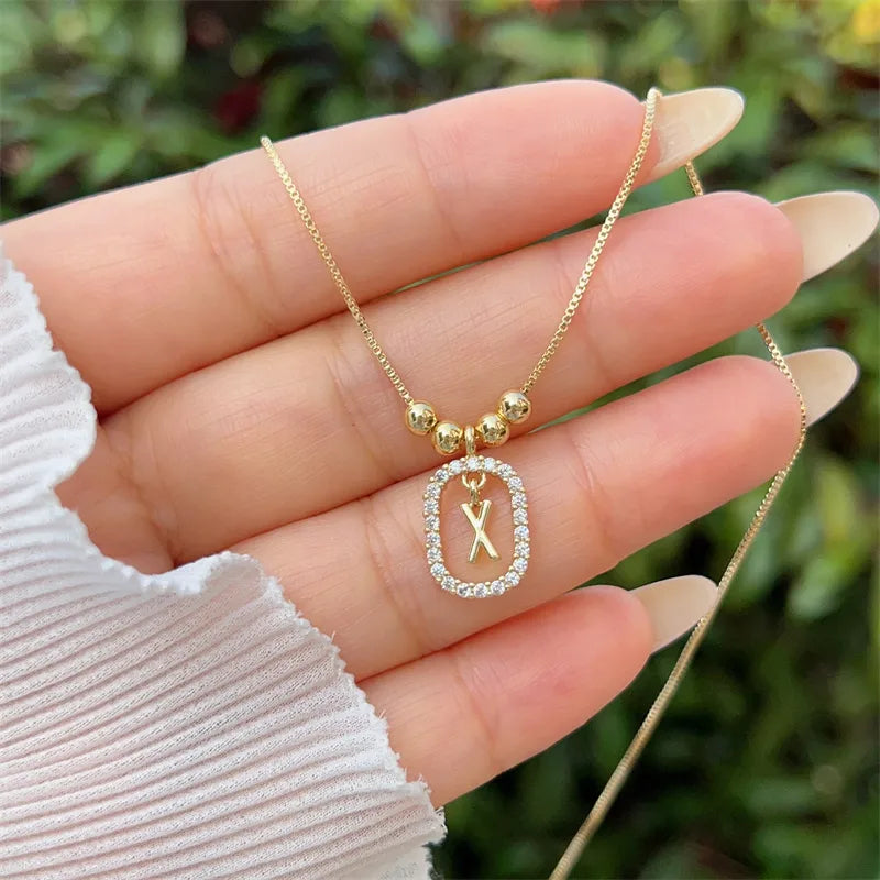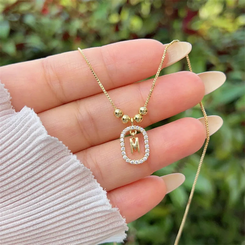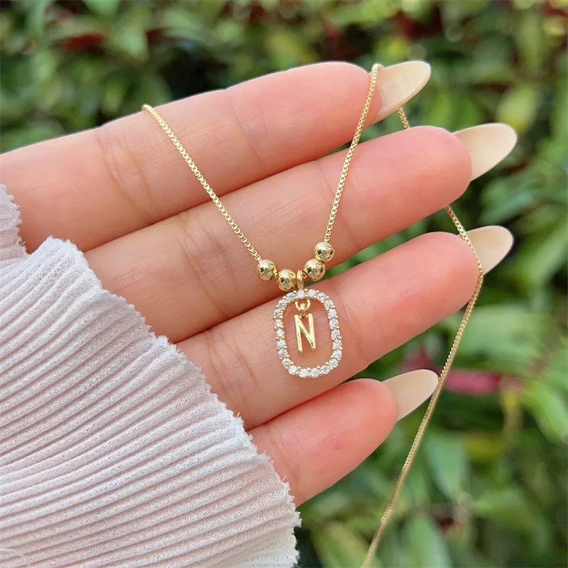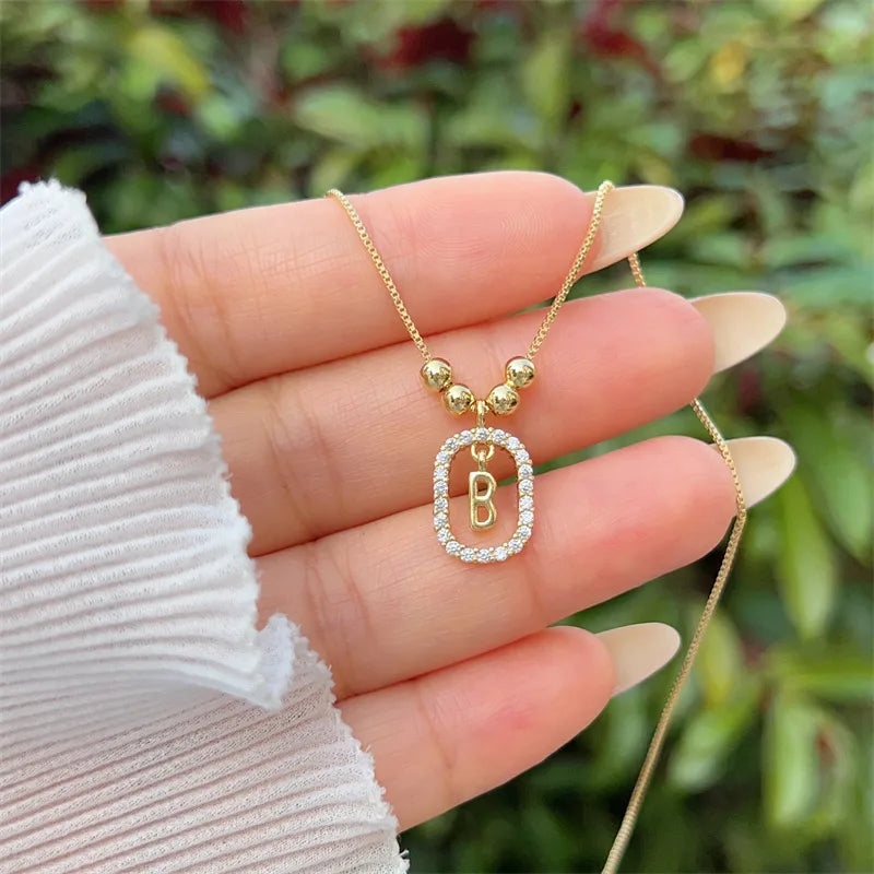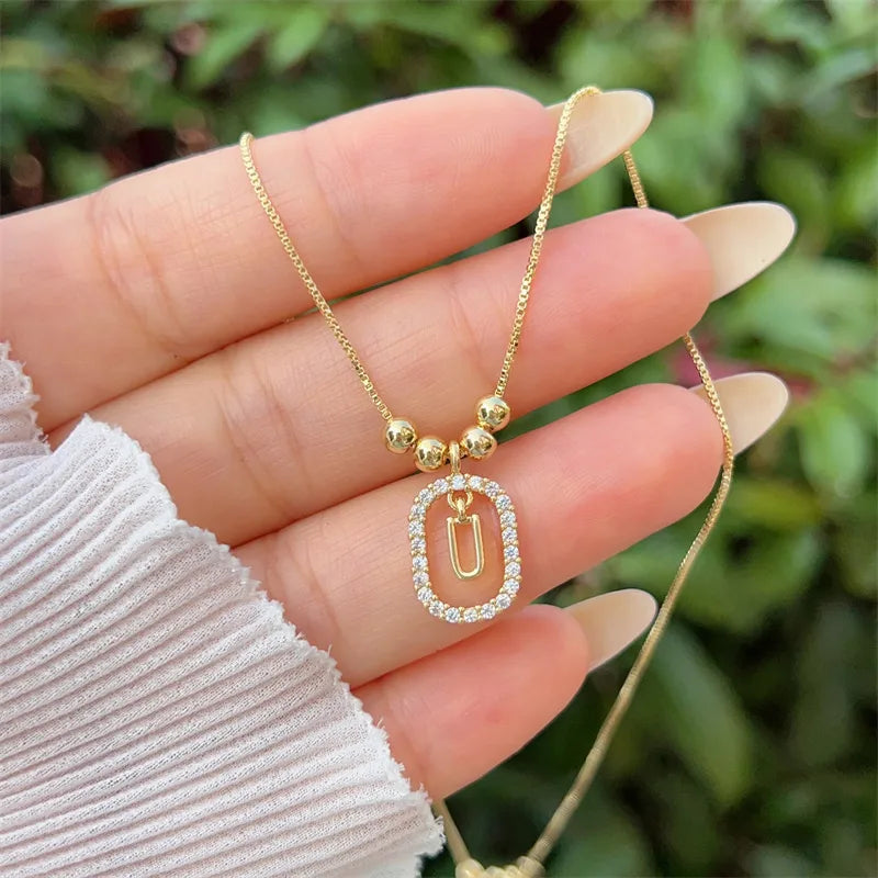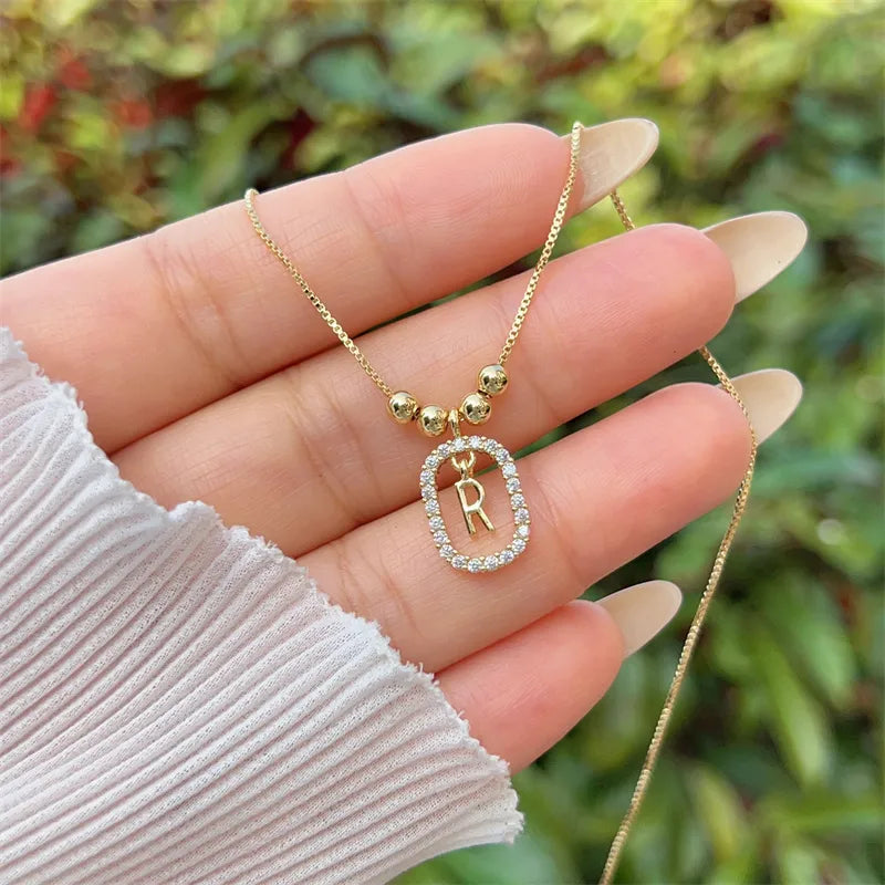 18K Gold Plated Copper Zircon Necklace Pendant 26 Letter Combination Gift Suitable for Daily Wear and Sweater Chain Couple Names