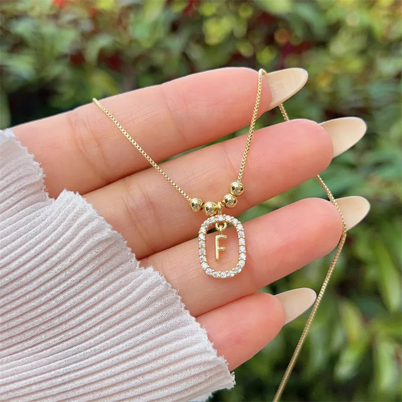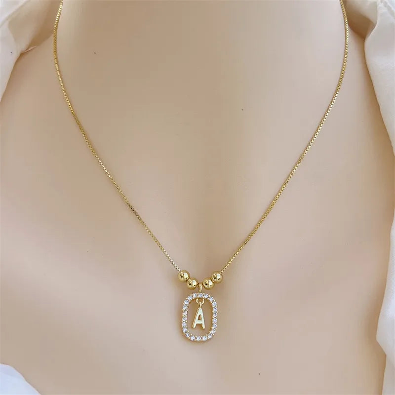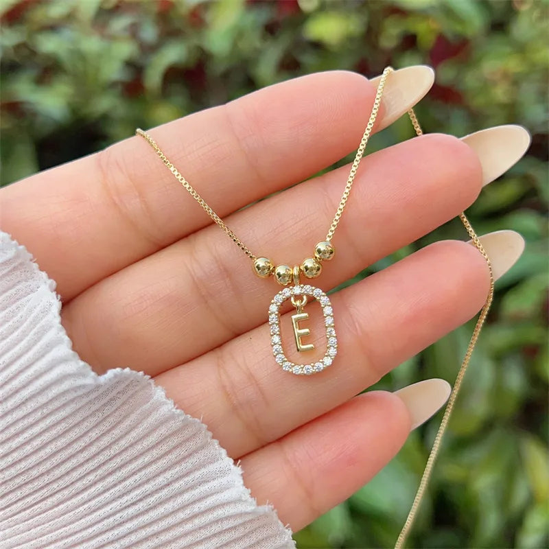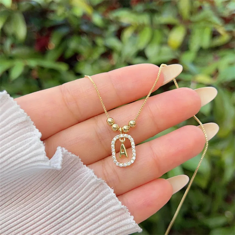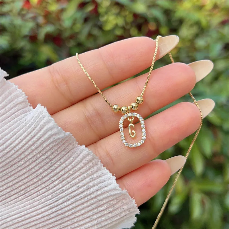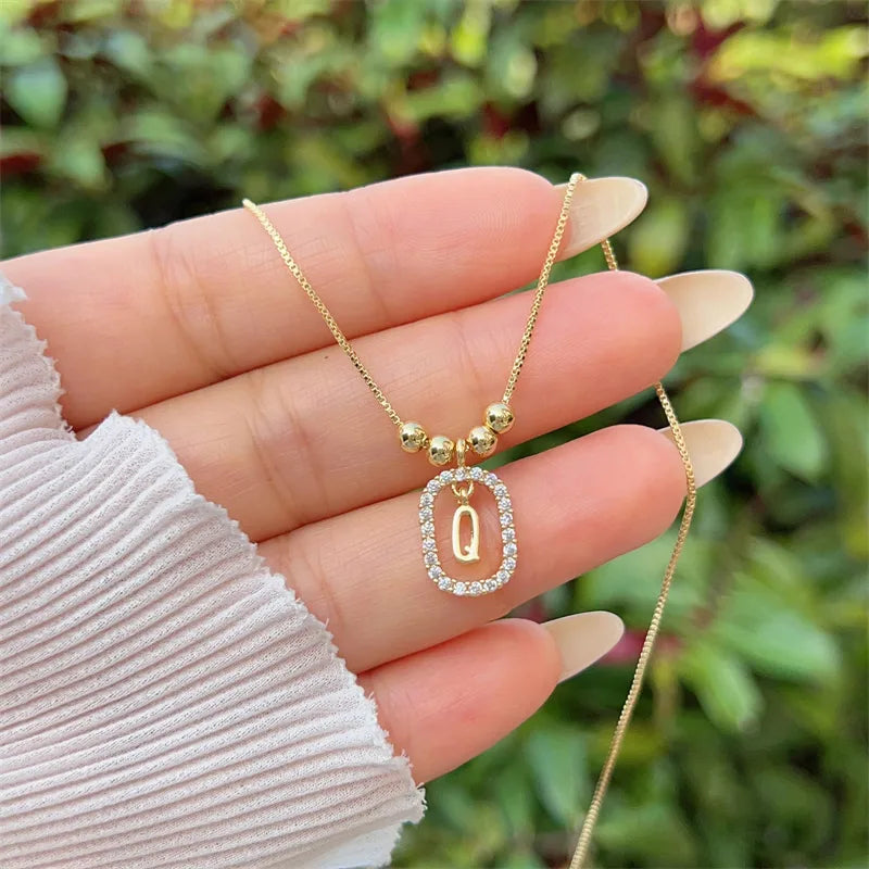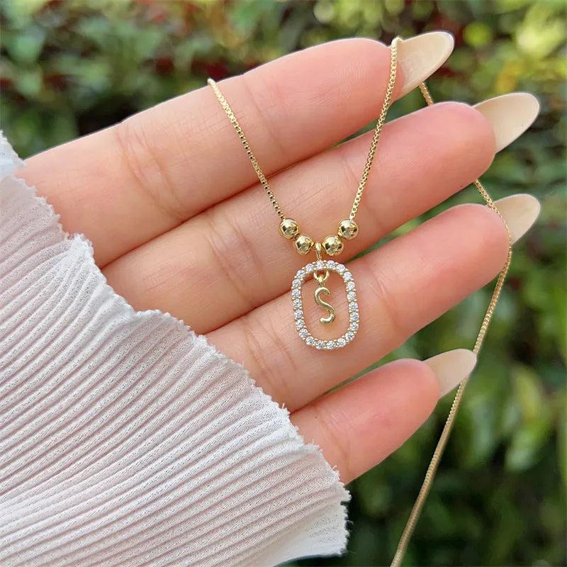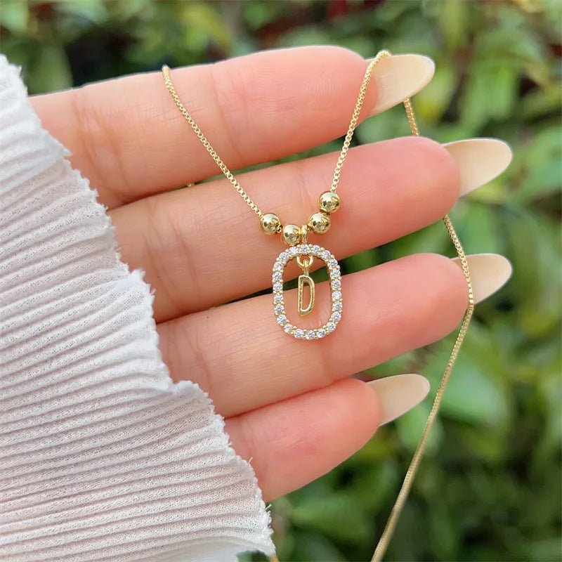 18K Gold Plated Copper Zircon Necklace Pendant 26 Letter Combination Gift Suitable for Daily Wear and Sweater Chain Couple Names