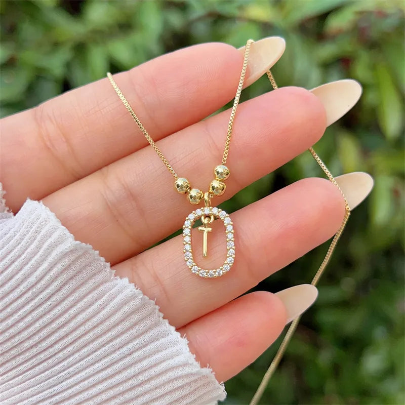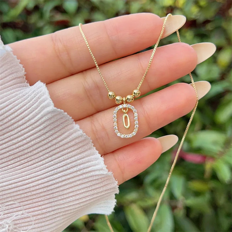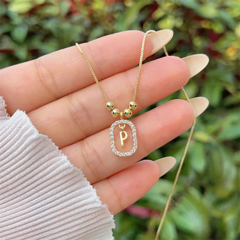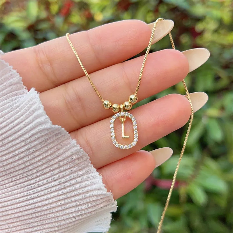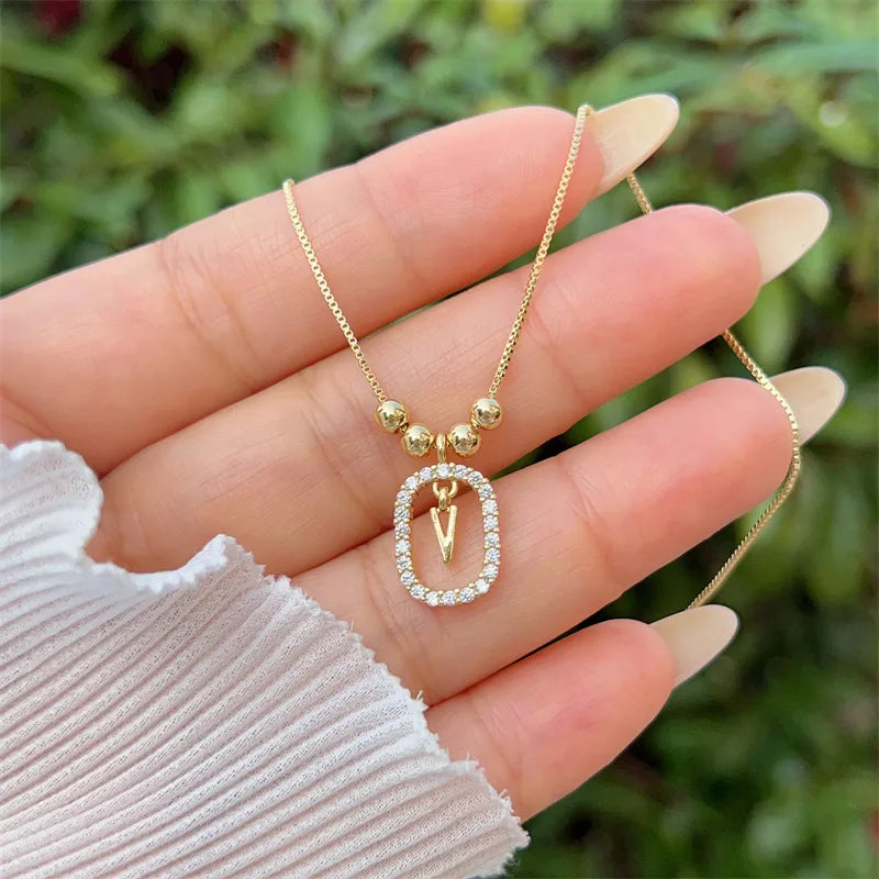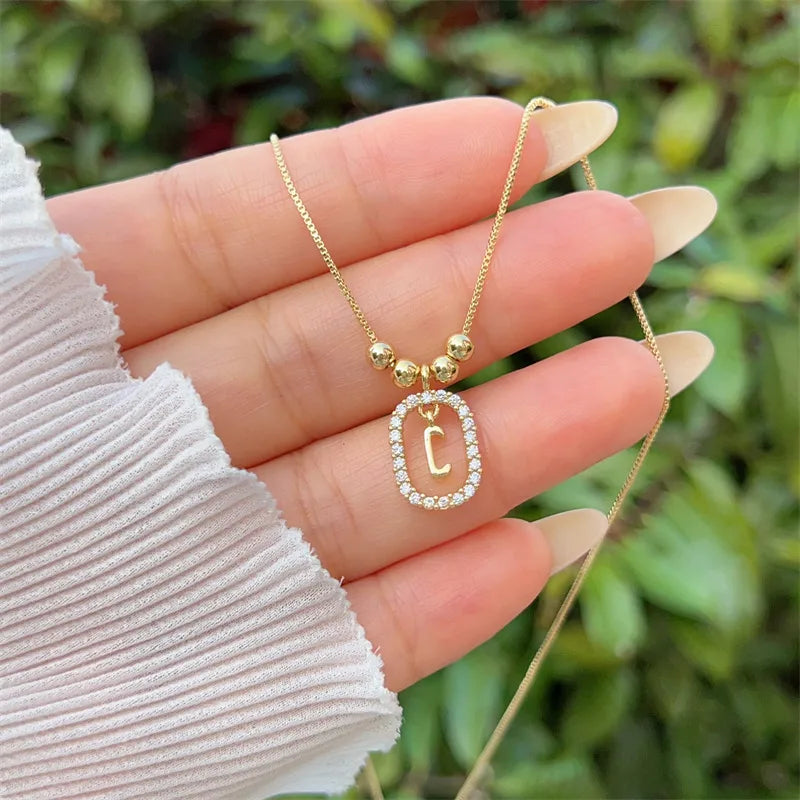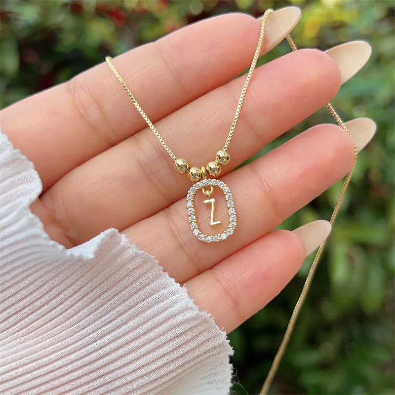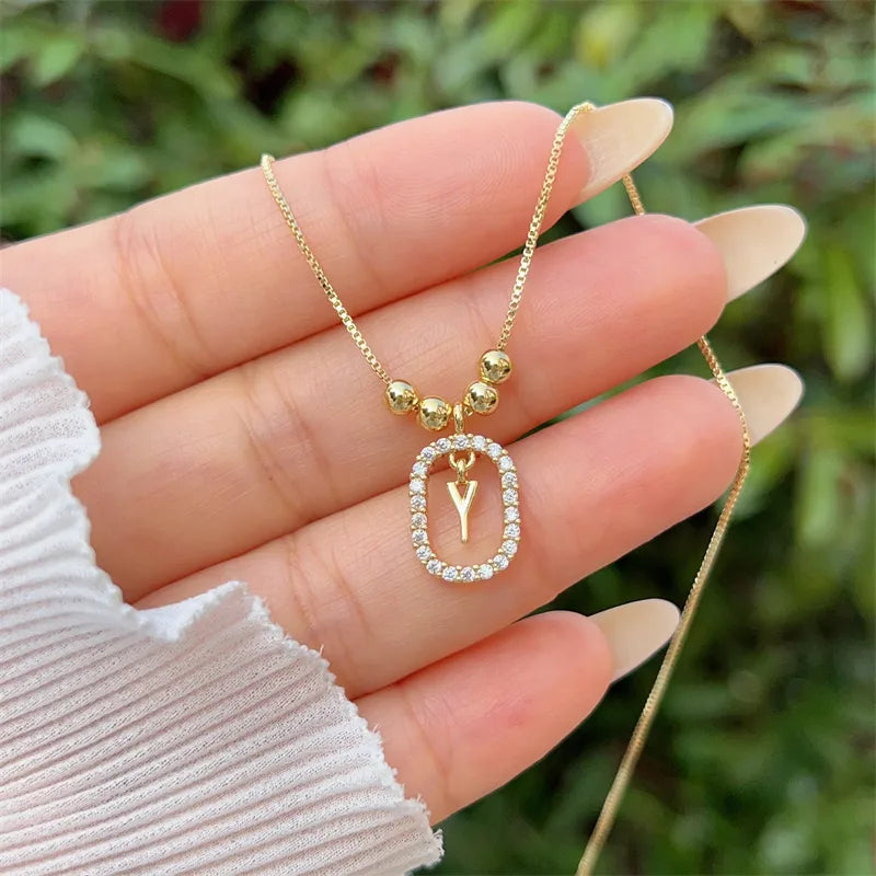 18K Gold Plated Copper Zircon Necklace Pendant 26 Letter Combination Gift Suitable for Daily Wear and Sweater Chain Couple Names