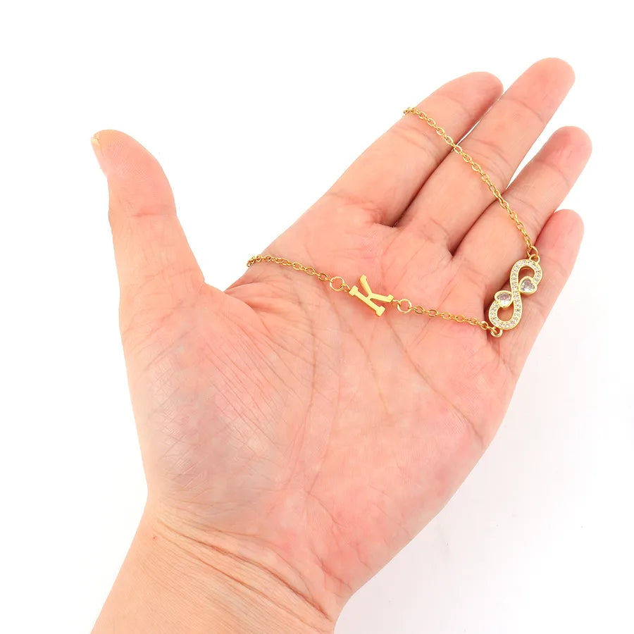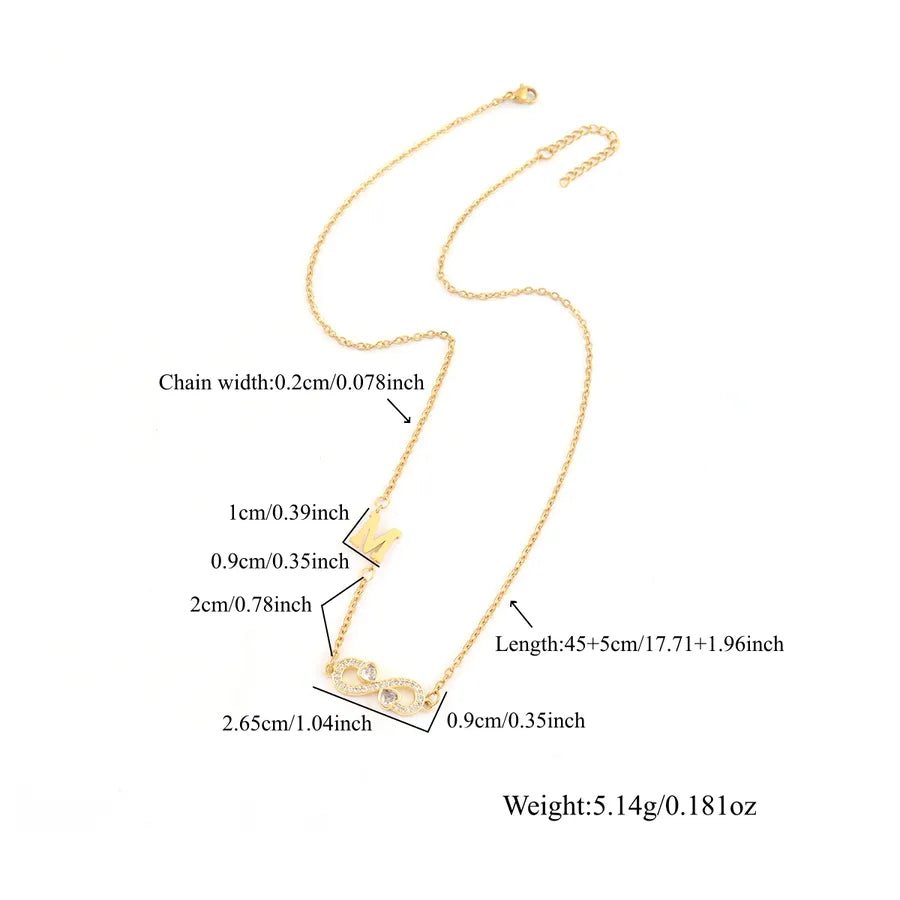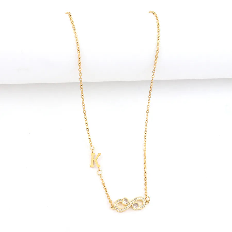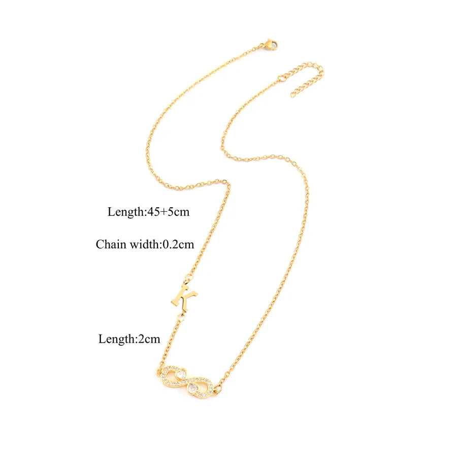 Sweet Fashion Micro Pave Zircon Vacuum Electroplated 18K Real Gold Infinity/8 Letter Initial Pendant Gold 201 Stainless Steel Chain Women's Necklace