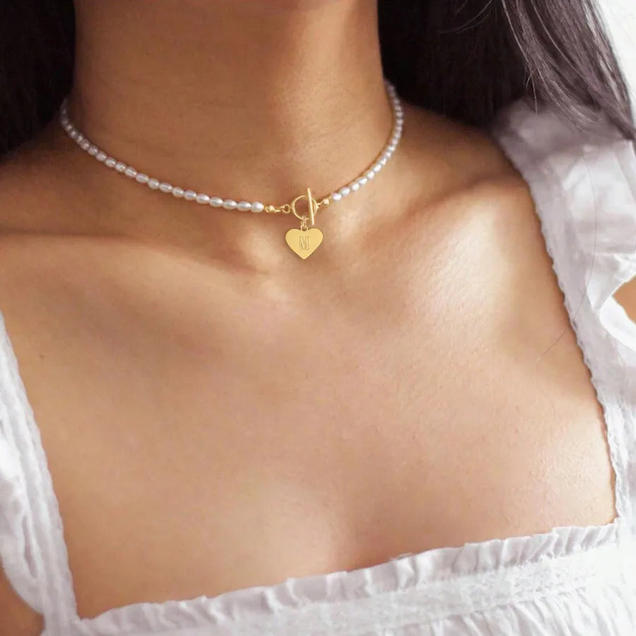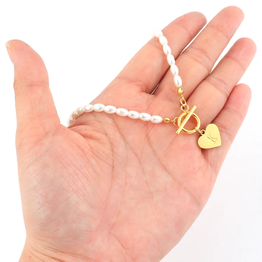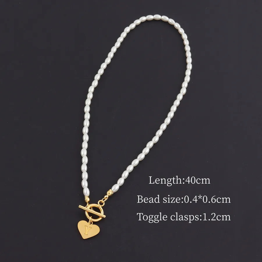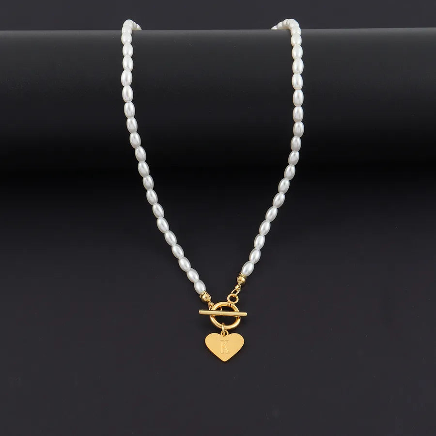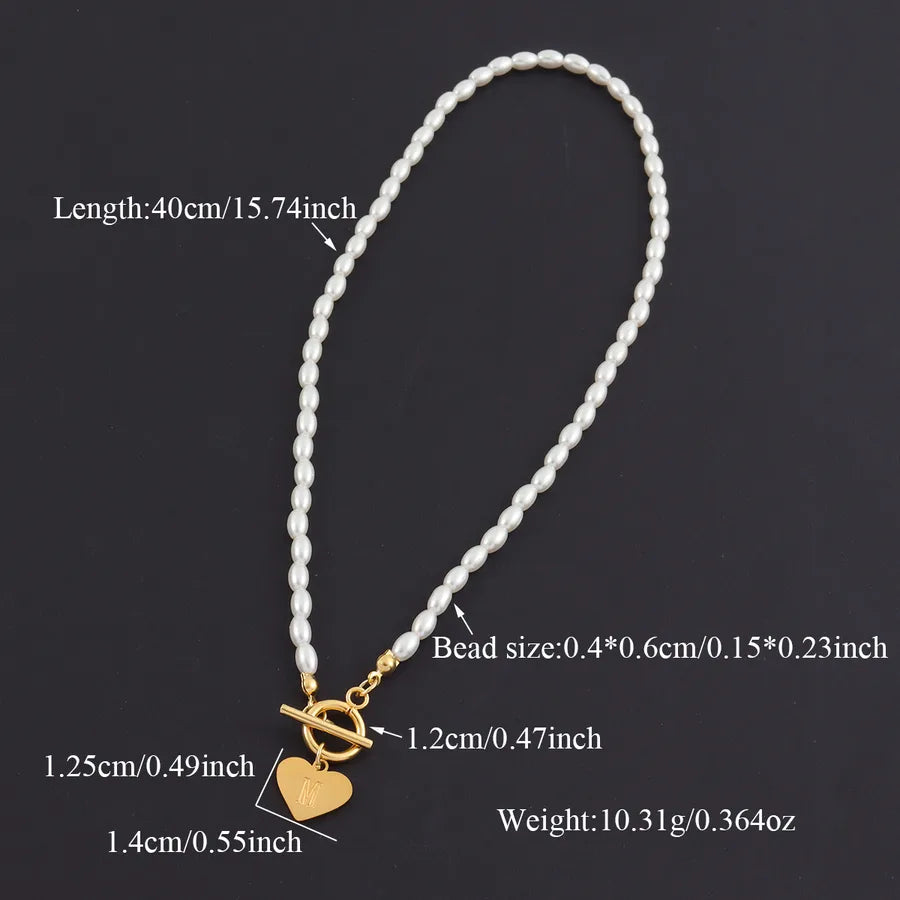 Vacuum Electroplating (In Furnace) Plated 18K Real Gold Fashion Elegant Letter/Letter Pattern Heart Initial Pendant OT Buckle Artificial Rice Beads Beaded Necklace for Women