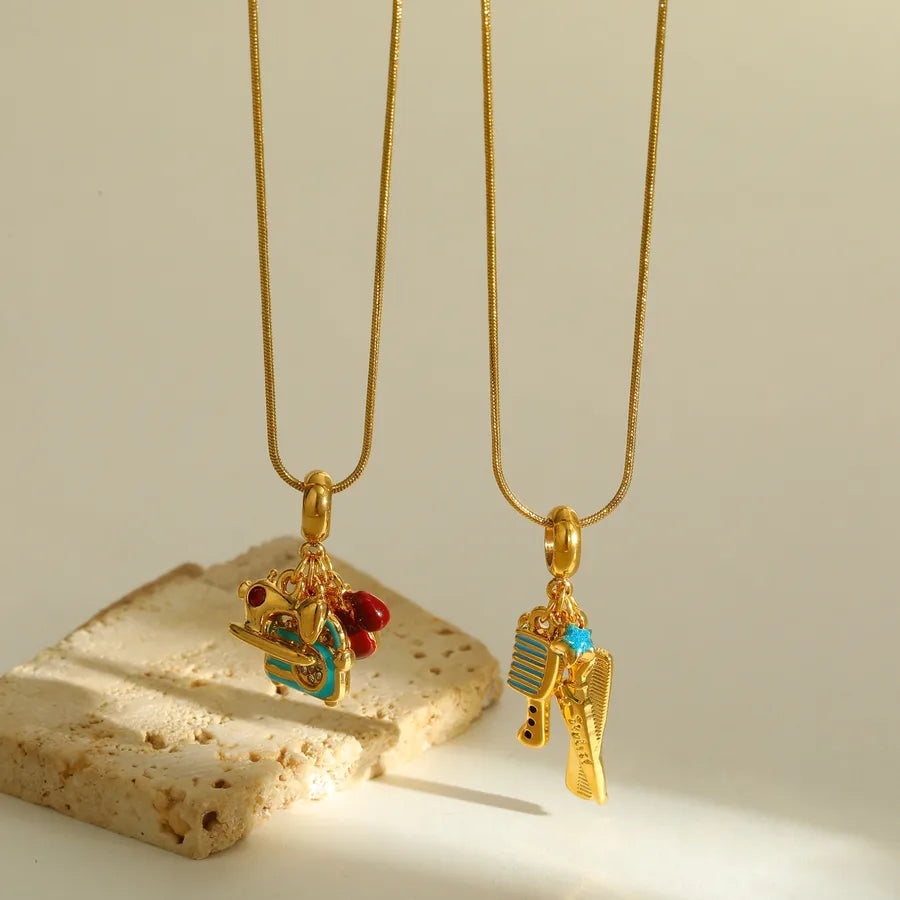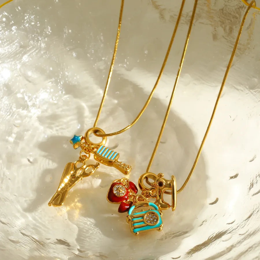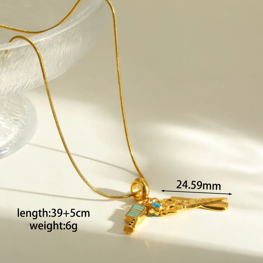 18K Gold Plated 201 Stainless Steel Vacuum Electroplating (In Furnace) Zircon Scissors Comb Oil Drop Electroplating Simple Style Snake Chain Pendant Necklace Multi Pendant Necklace for Women