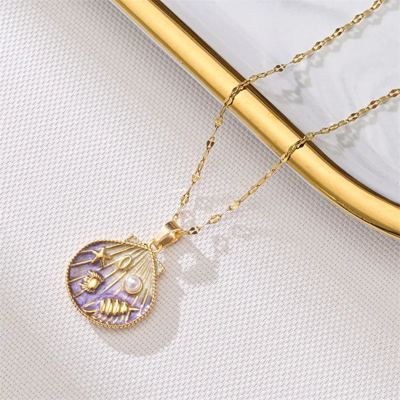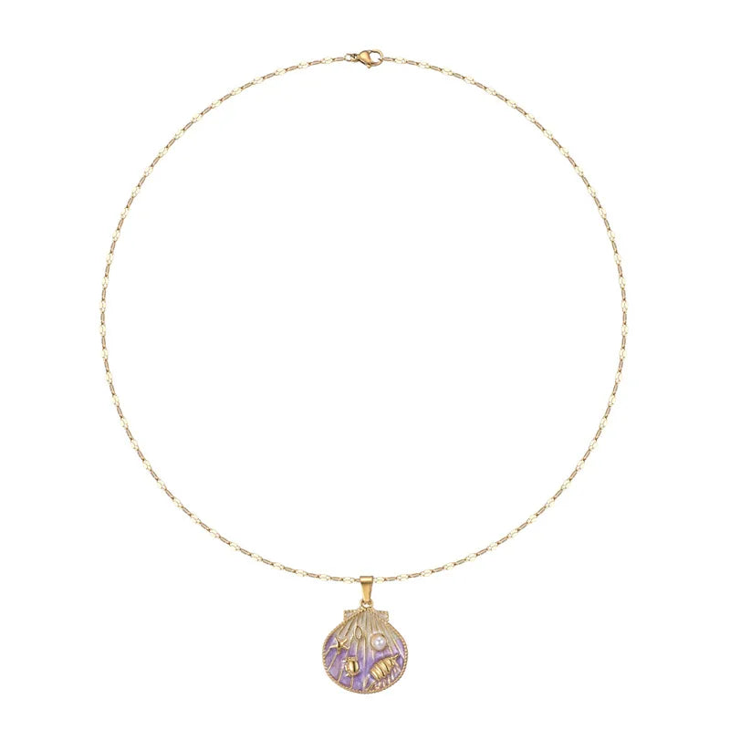 Purple Gradient Oil Drop Shell Pendant Necklace