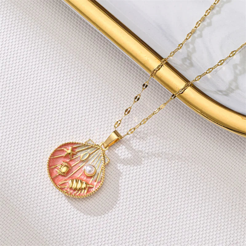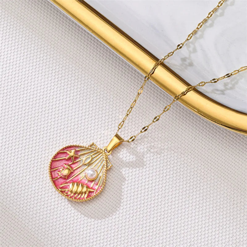 Pink Gradient Oil Drop Shell Pendant Necklace
