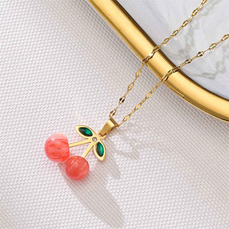 Cherry Color Cherry Pendant Necklace