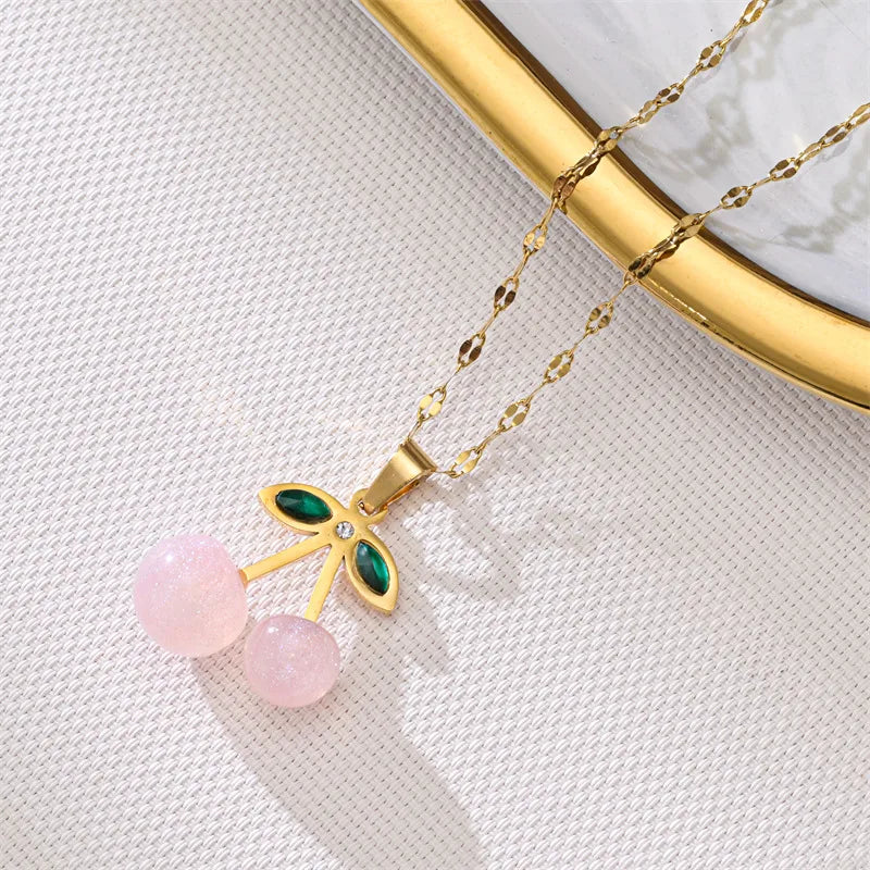 Pink Cherry Pendant Necklace