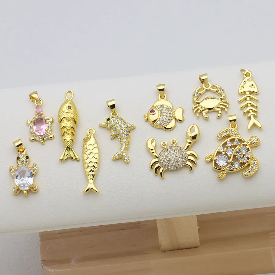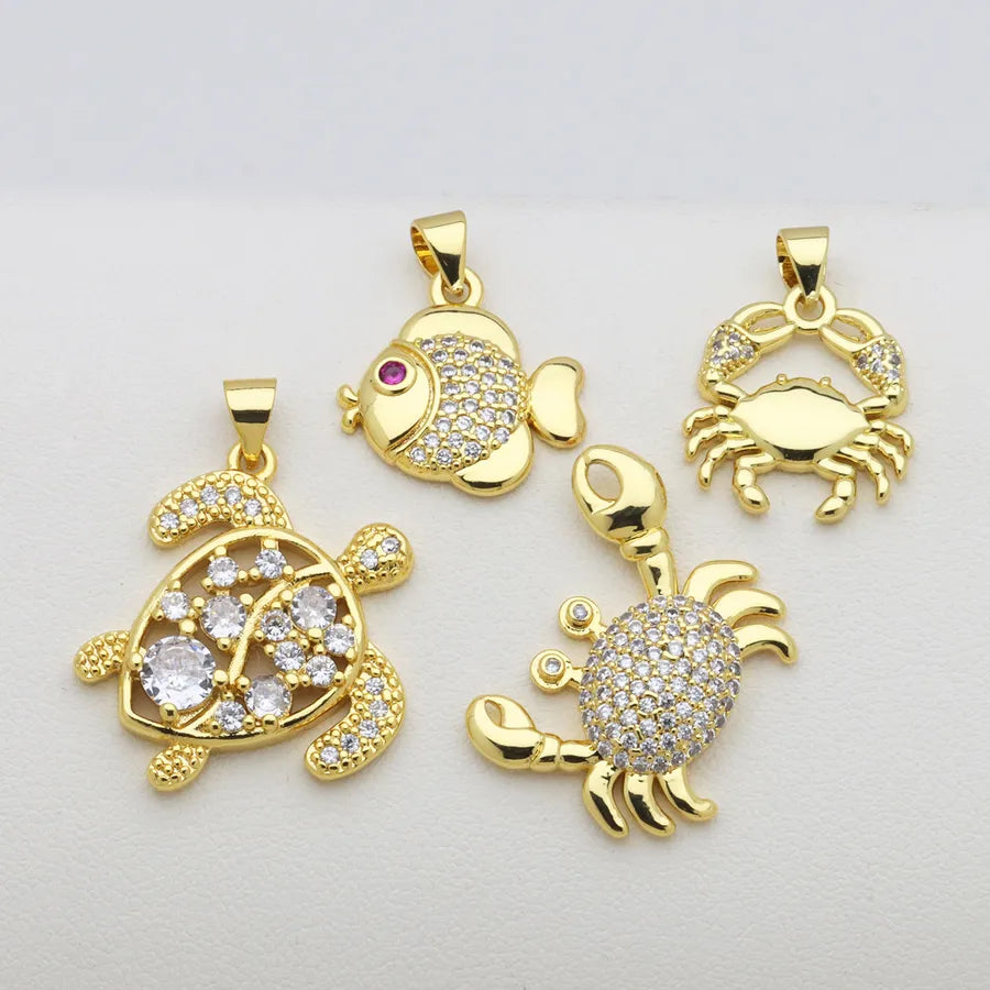 New Ocean Elements Turtle Dolphin Fish Crab 18K Color Retention Electroplated Zircon Necklace Pendant Accessories