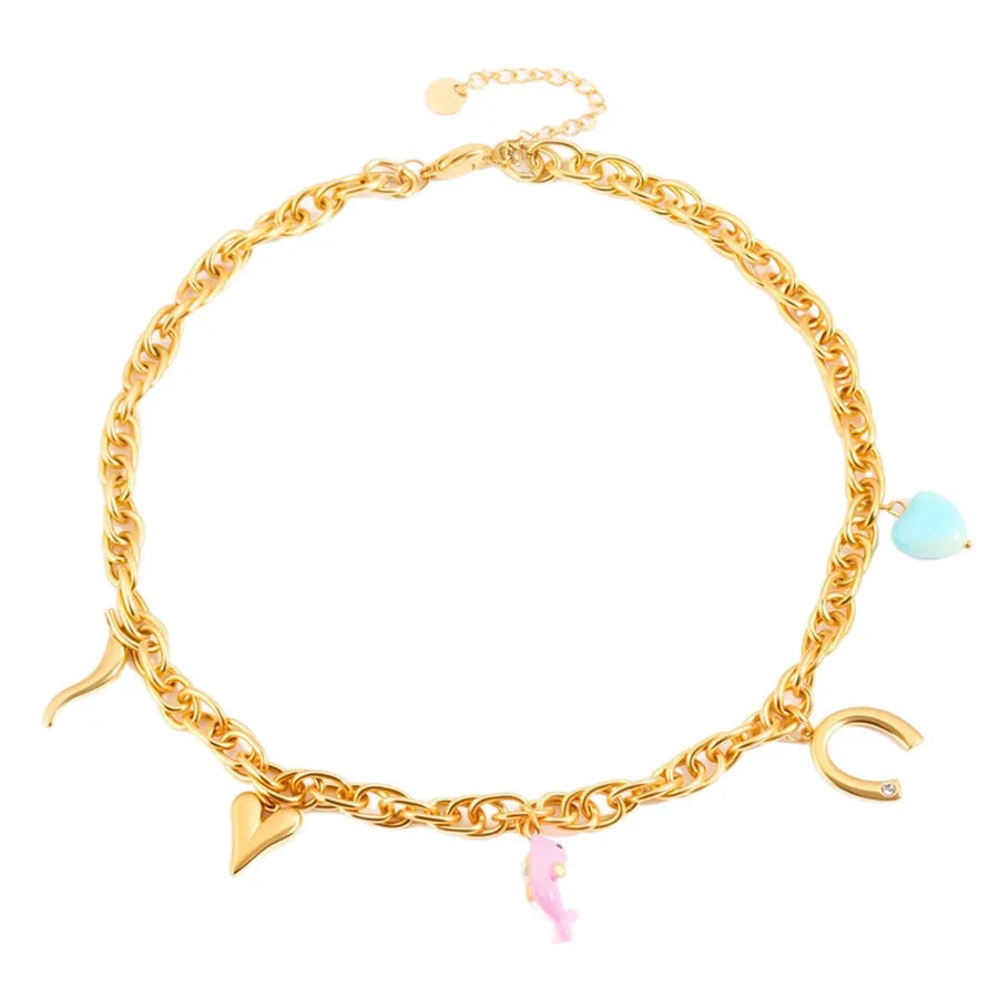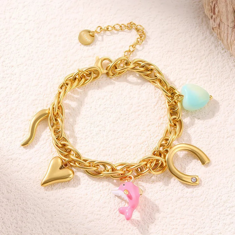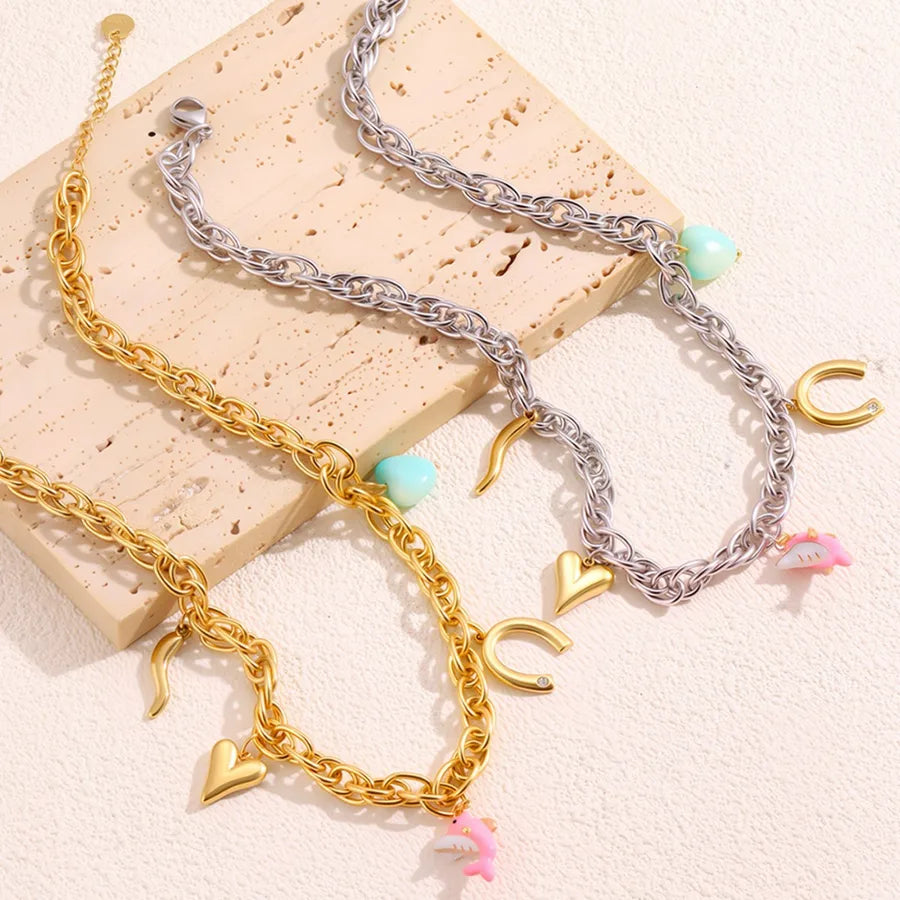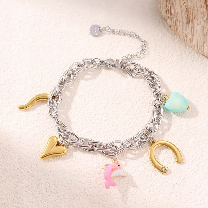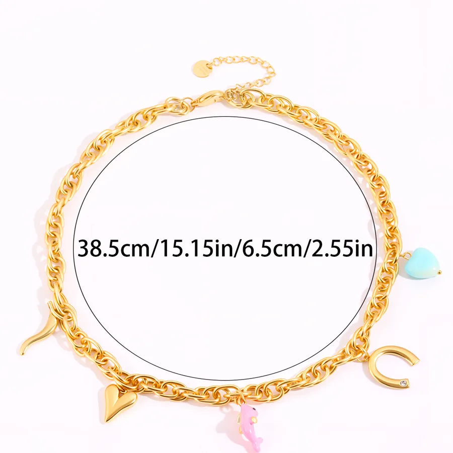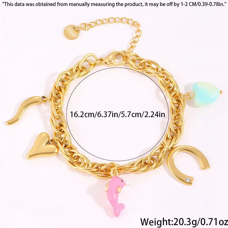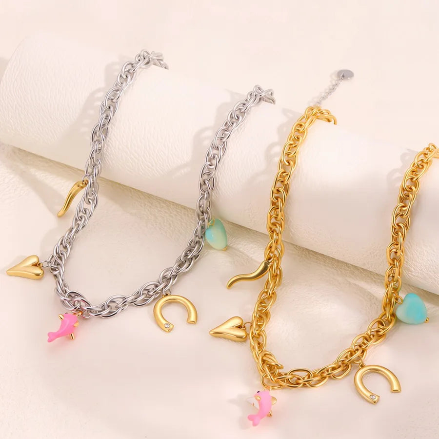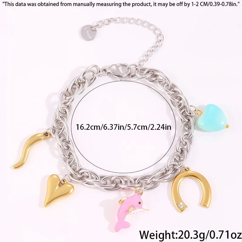 Ocean-themed Titanium Steel Necklace and Bracelet Set for Women, Colorful Dolphin Heart-shaped Jewelry, Lightweight