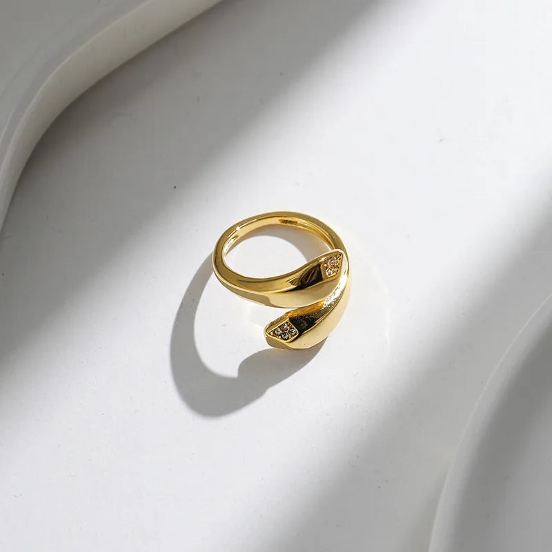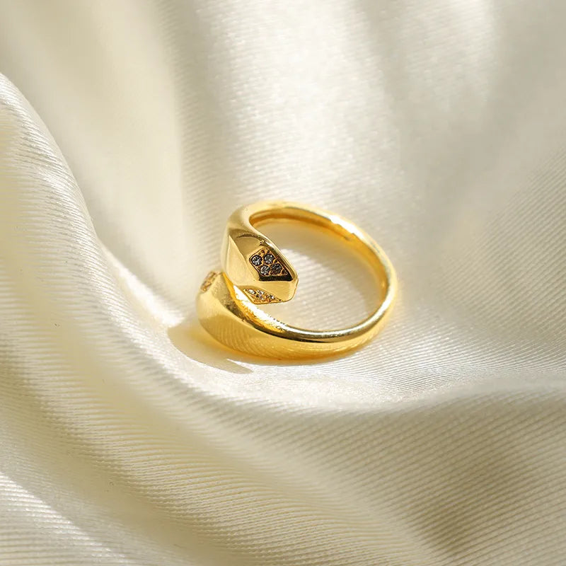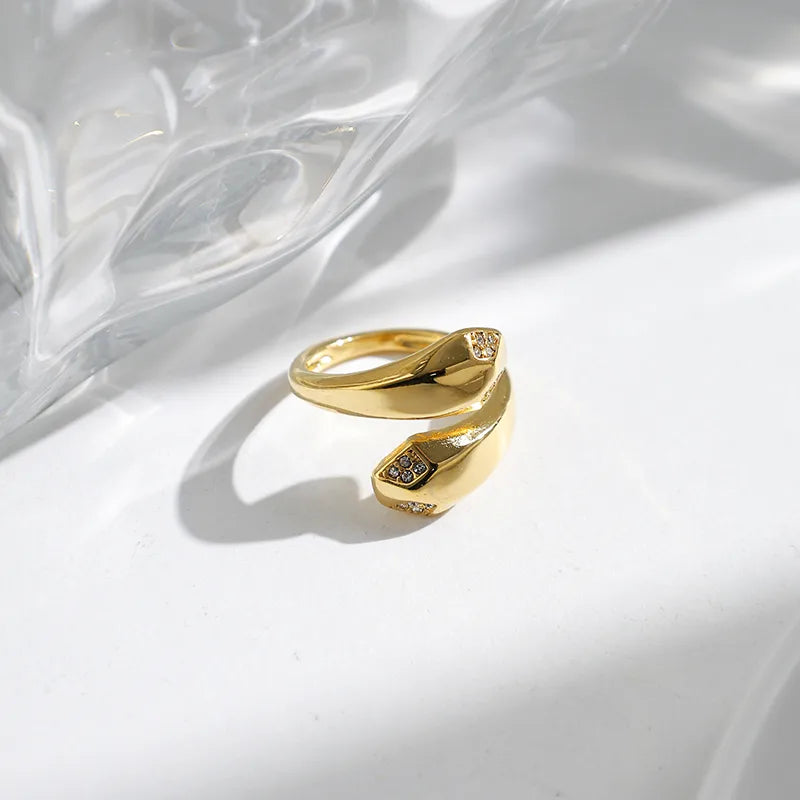 18K Gold Plated 304 Stainless Steel Vacuum Electroplating (In Furnace) Zircon Snake Ring Unisex