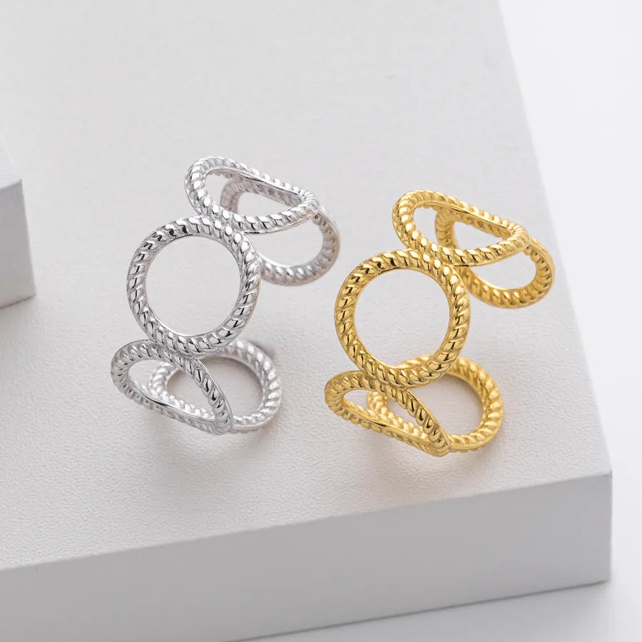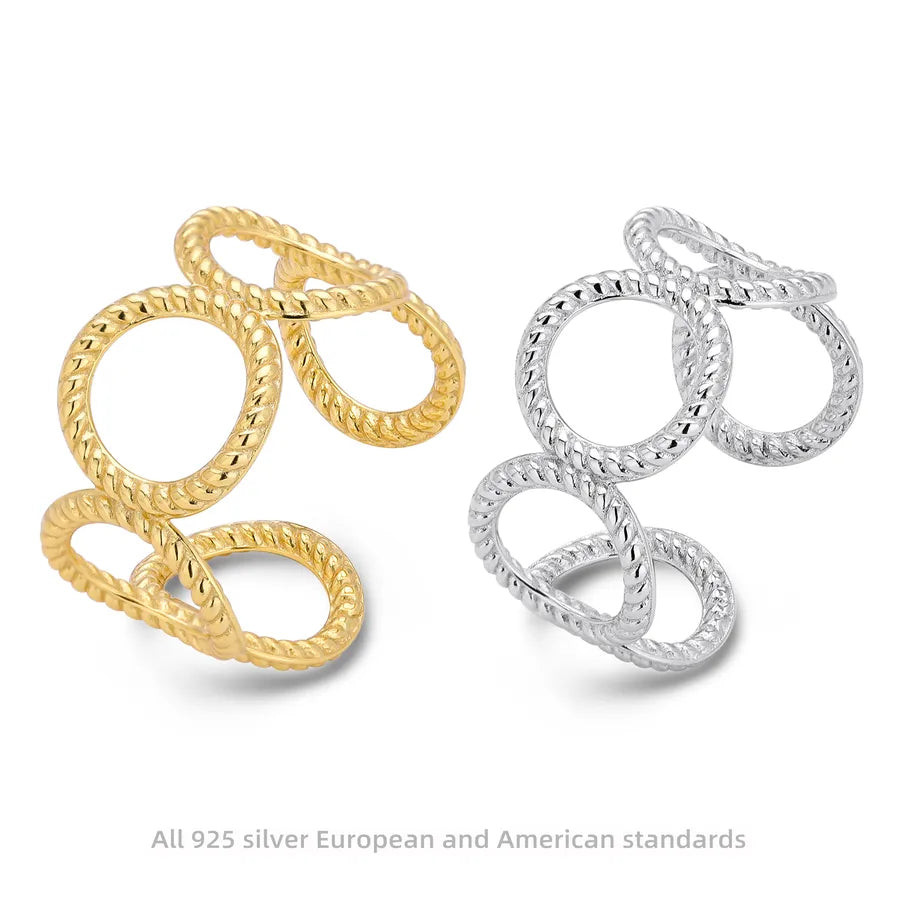 18K Gold Plated Rhodium Plated S925 Sterling Silver Ring Braided Circle Ring